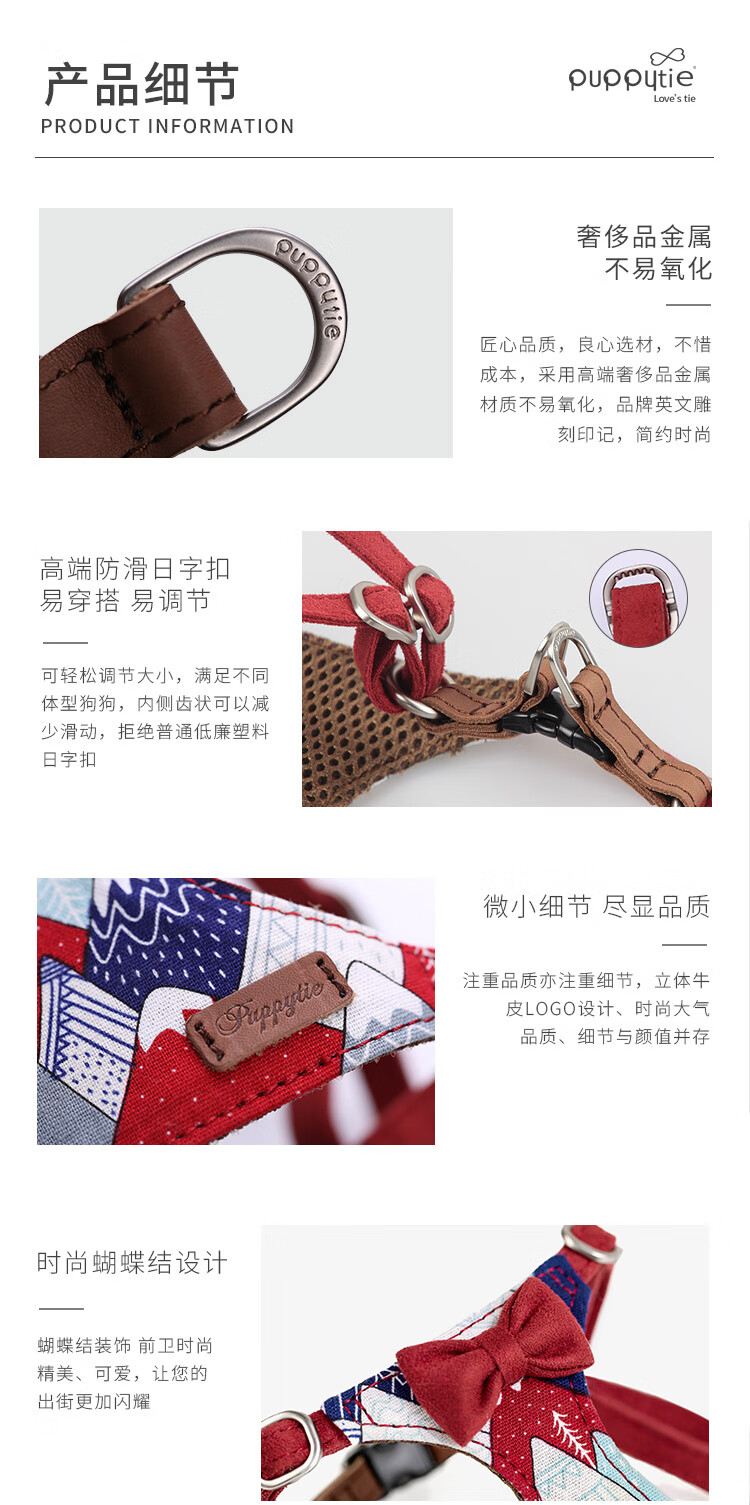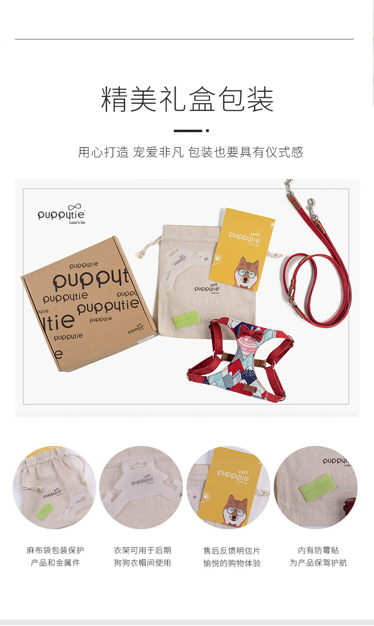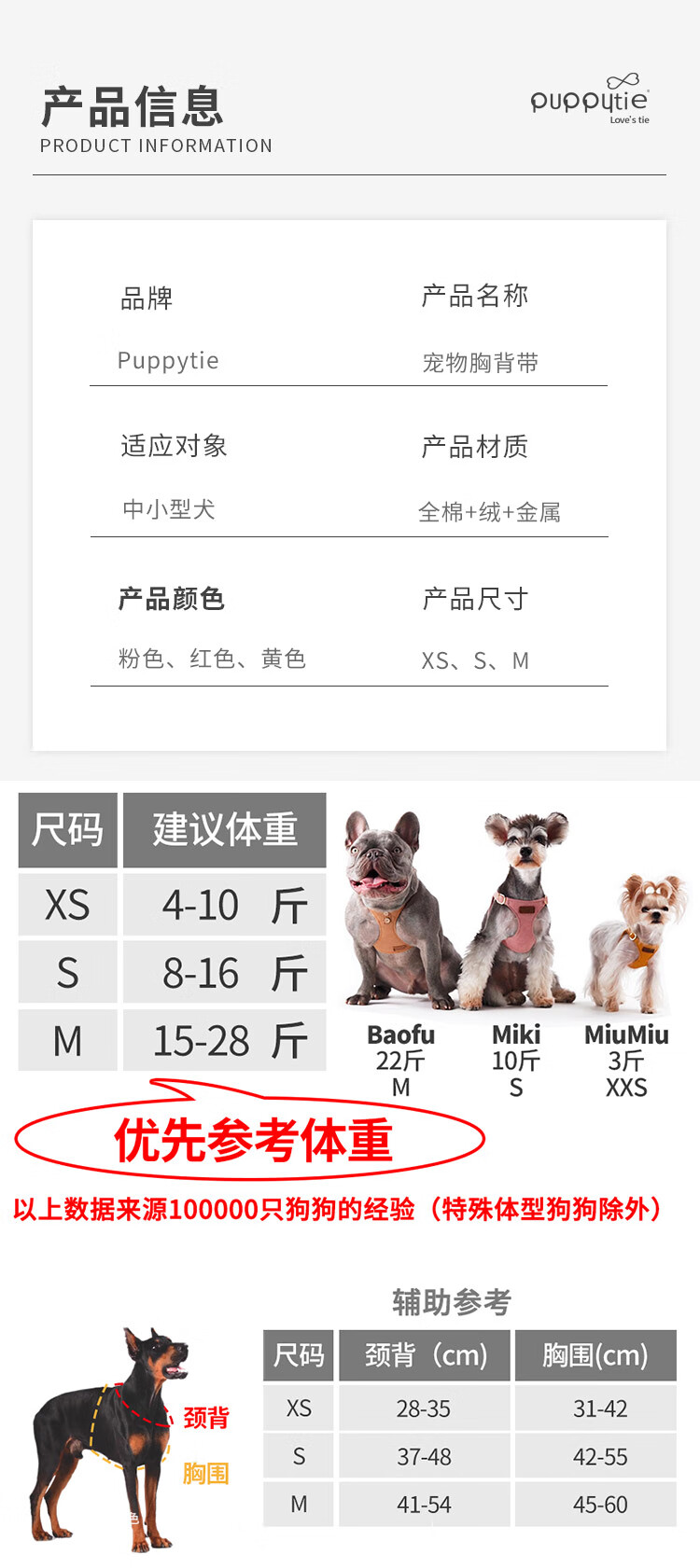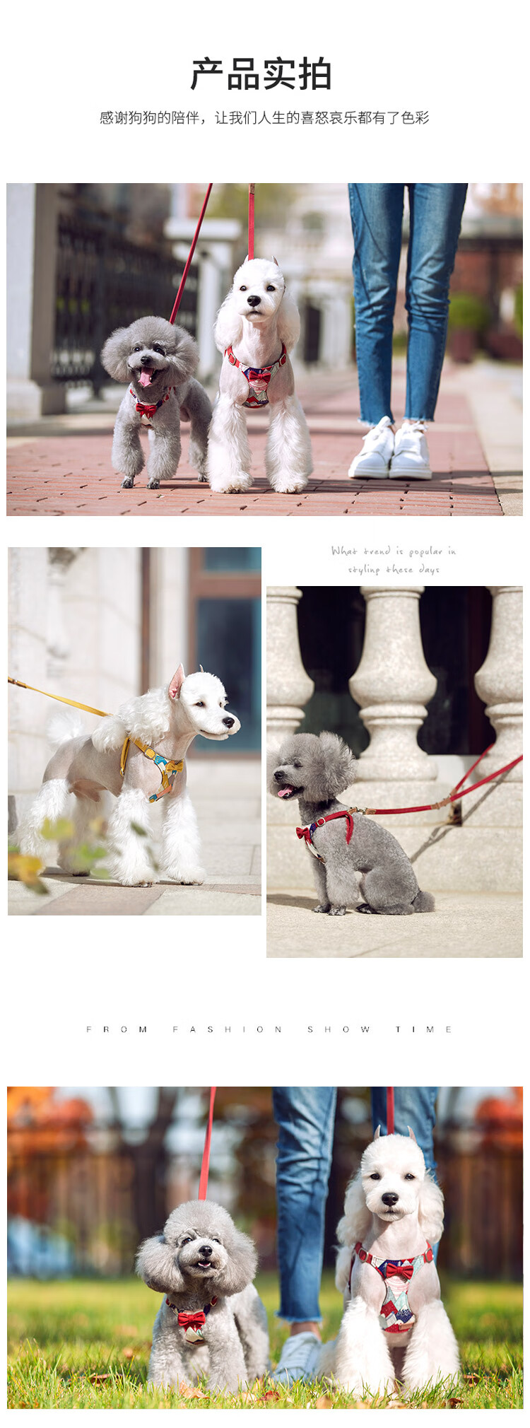 Puppytie pet supplies dog leash Teddy dog leash Corgi cute dog rope adjustable vest style red - chest harness + leash S-small recommended 8-16Jin Jin equals 0.5 kg