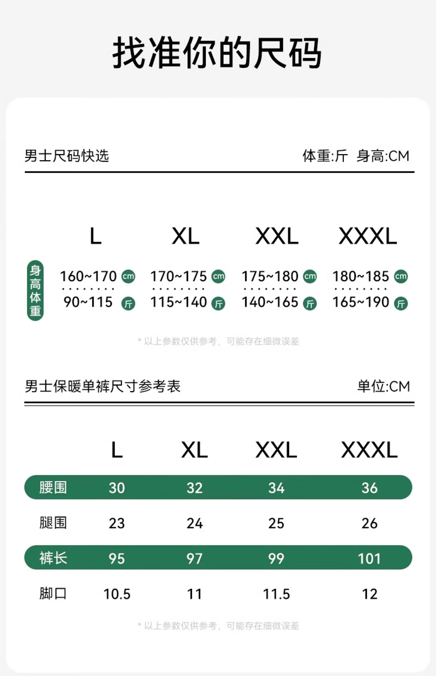 China (cm) 160-165/84-86 165-170 / 88-90 167-172 / 92-96 168-173 / 98-102 170-176 / 106-110