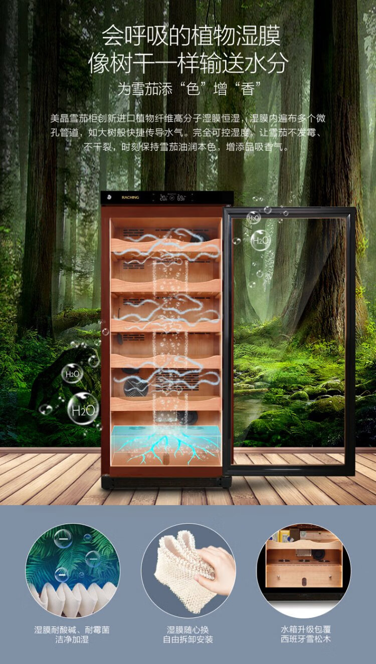 Meijing (raching) C230A compressor constant temperature and humidity household solid wood humidifier starry sky black Canadian cedar wood shelf wine cabinet cigar cabinet C230AXHSJK