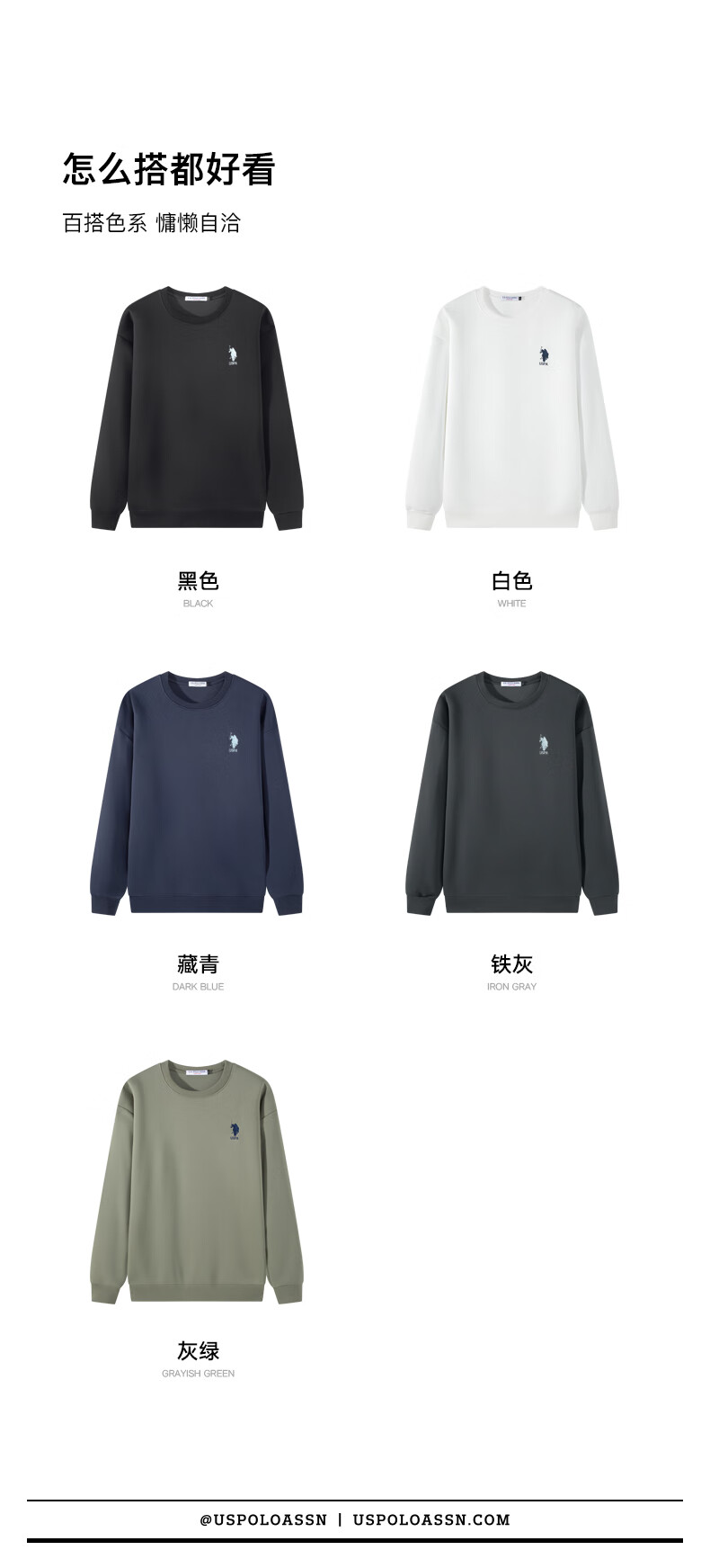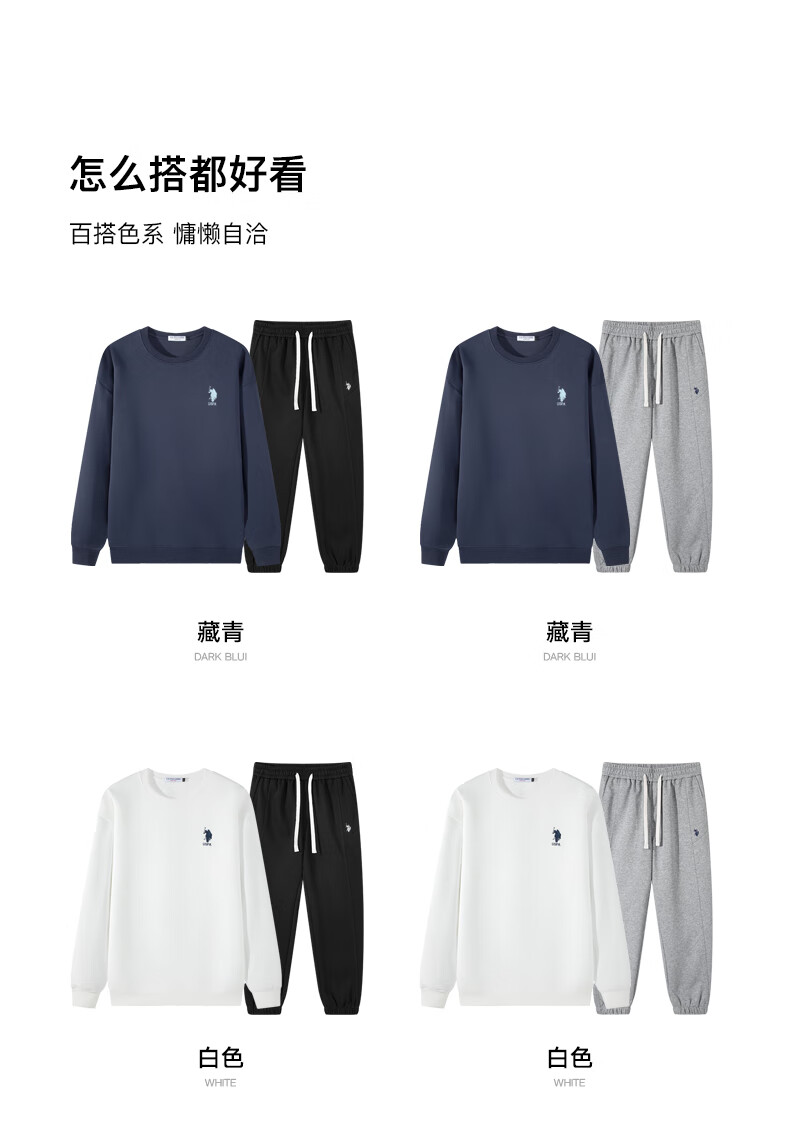 U.S. POLO ASSN. Sweater men's autumn and winter Paul men's high-end casual round neck bottoming shirt sports long-sleeved T-shirt for men white 2XL