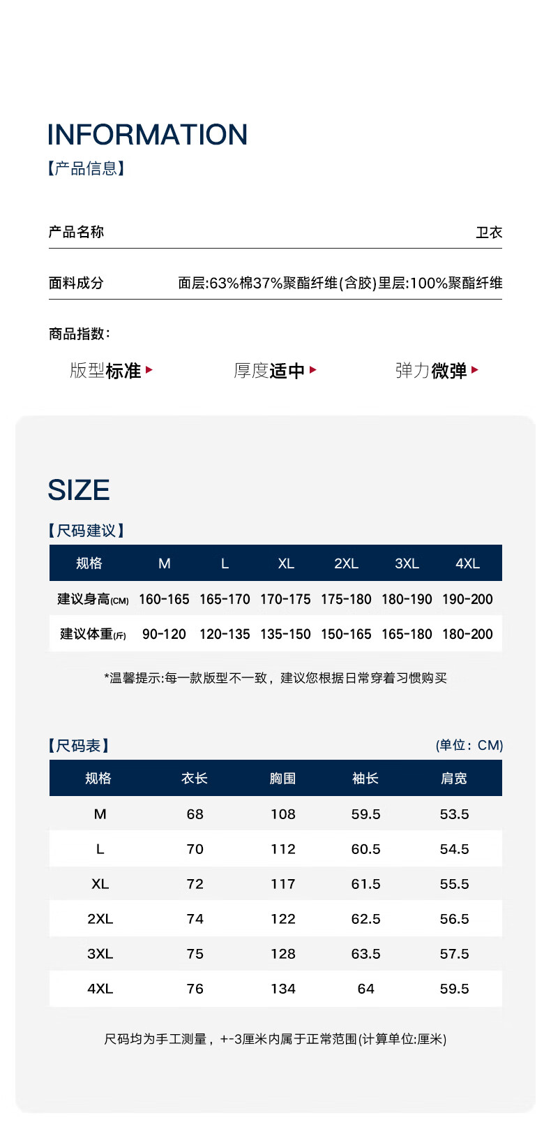 China (cm) 165 / 88-90 170 / 96-98 175 / 108-110 180 / 118-122 185 / 126-130