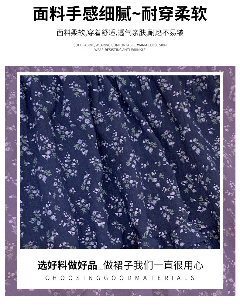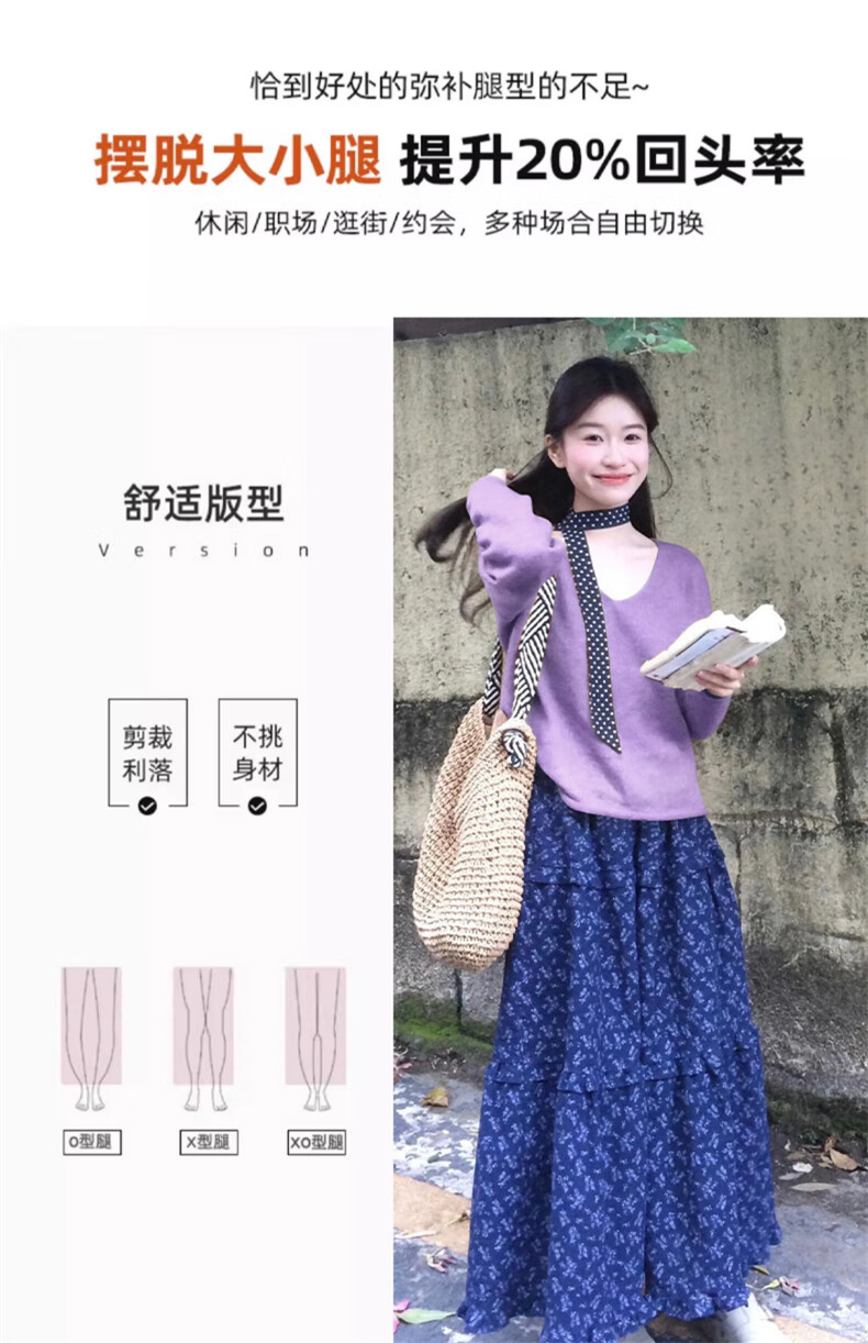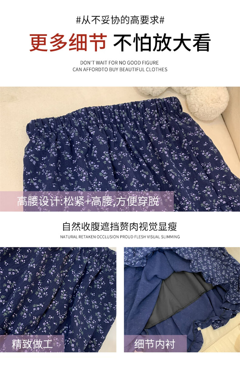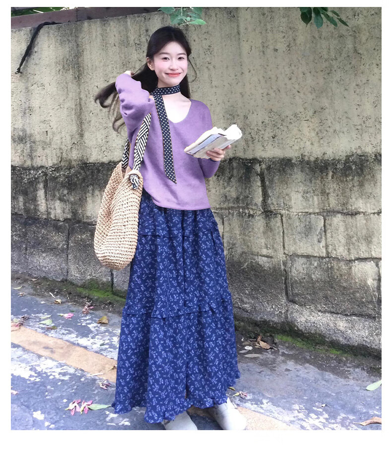 Langsha Navy Blue Floral Skirt Women's 2025 Autumn New Retro High Waist A-Line Skirt Casual Lazy Style Long Skirt