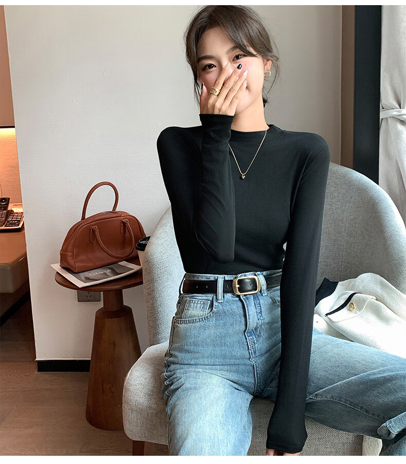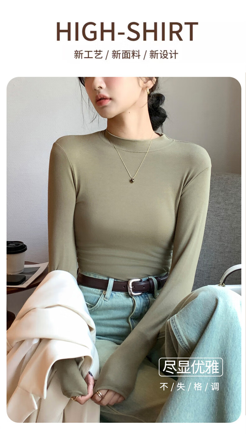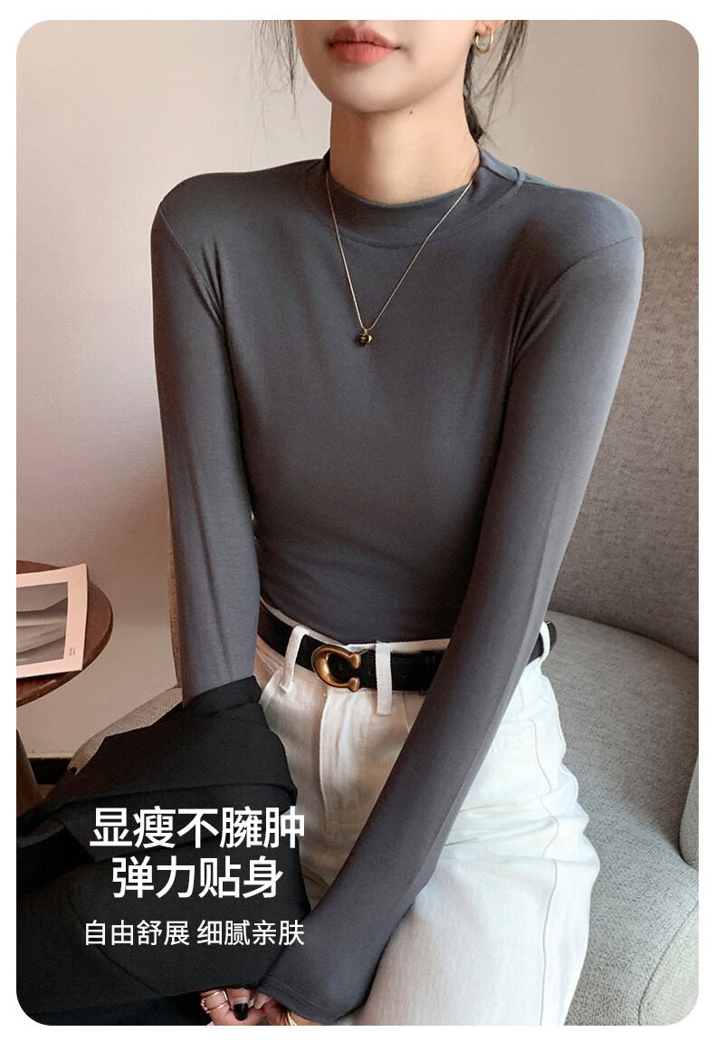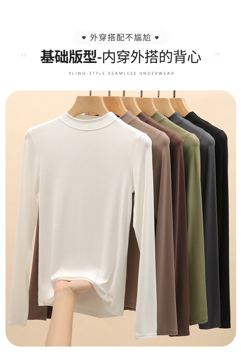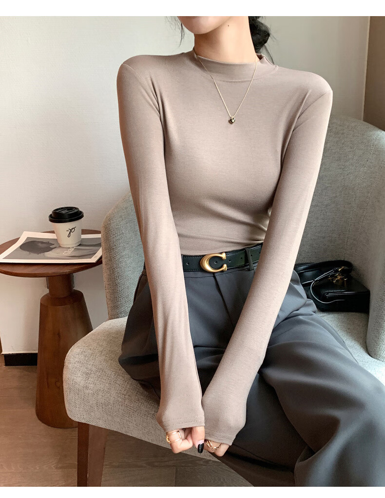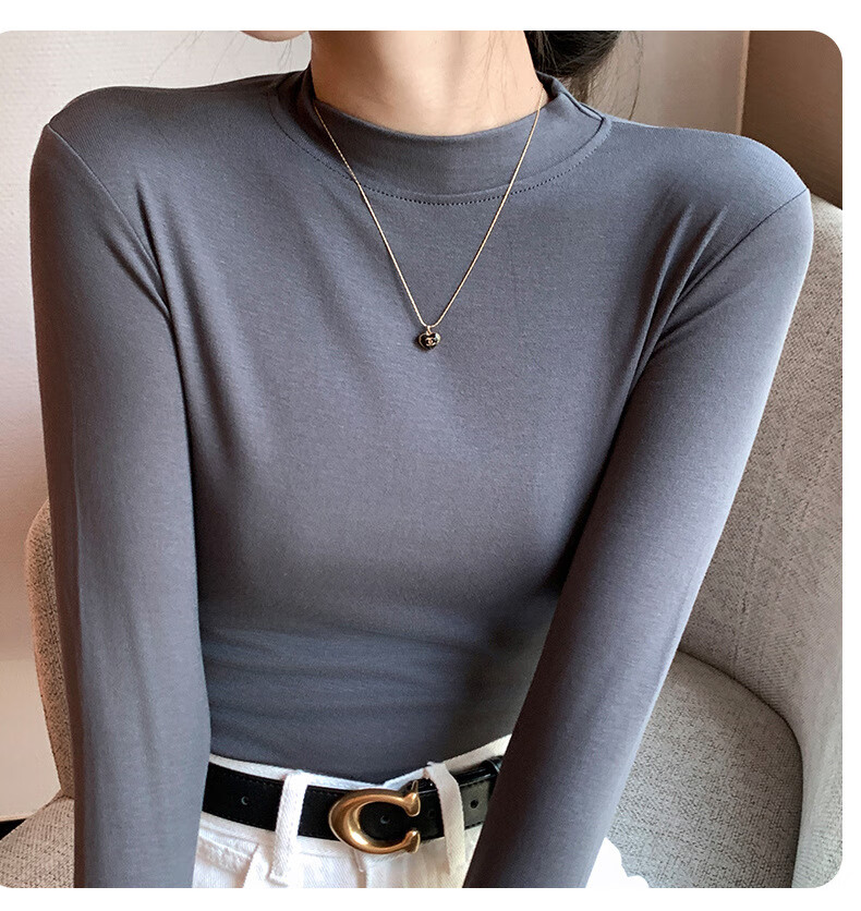 Langsha Modal small stand-up collar bottoming shirt for women 2025 spring and autumn new style can be worn outside the right shoulder long-sleeved top T-shirt