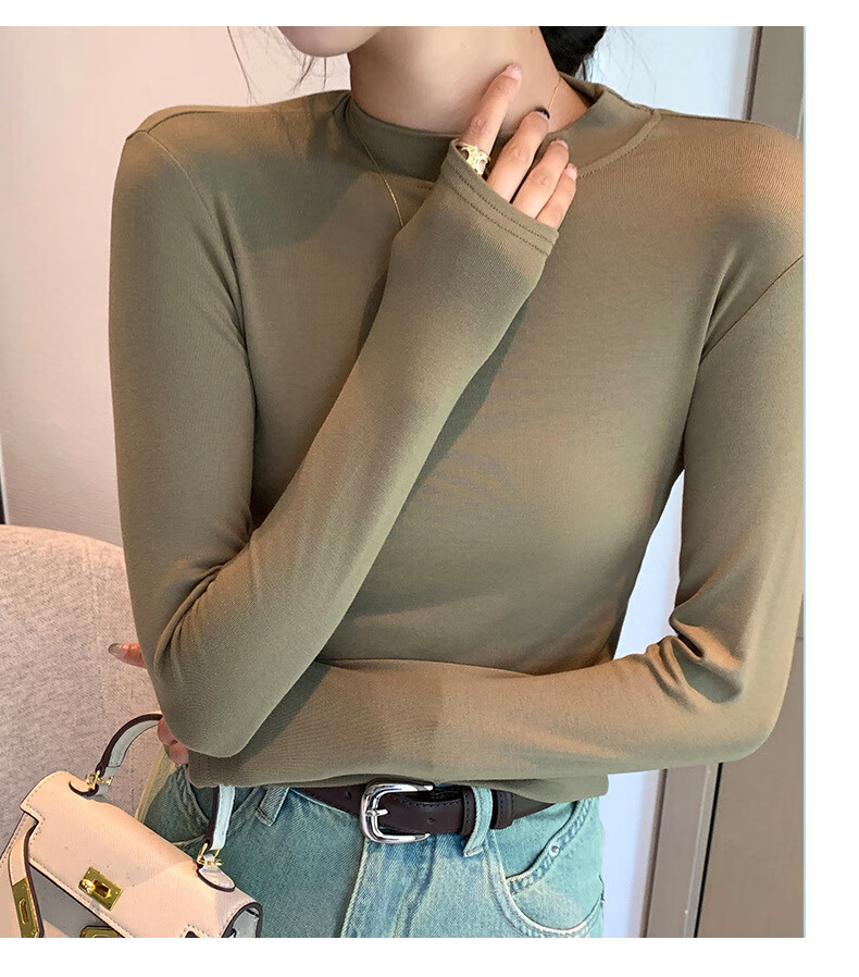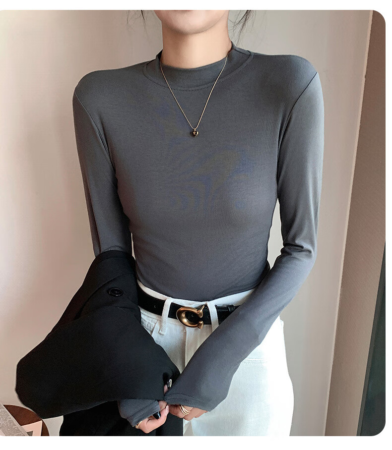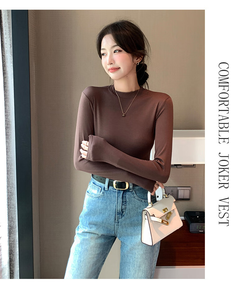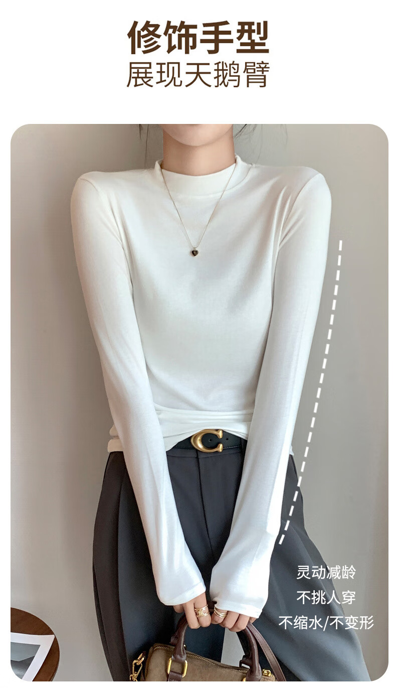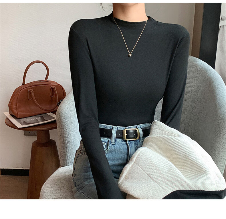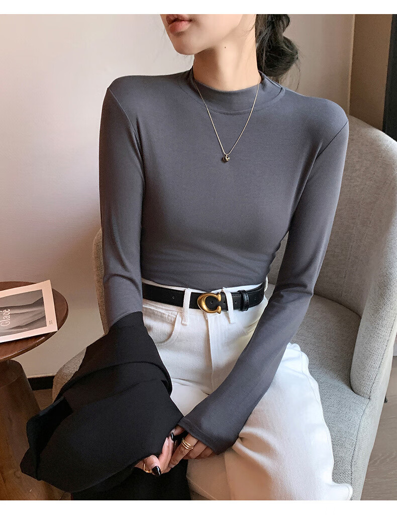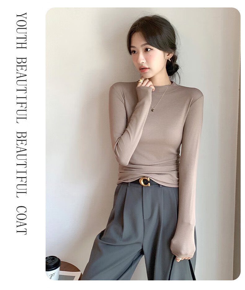 Langsha Modal small stand-up collar bottoming shirt for women 2025 spring and autumn new style can be worn outside the right shoulder long-sleeved top T-shirt