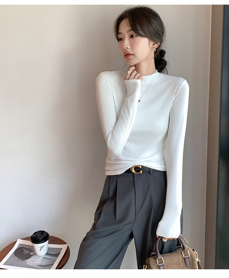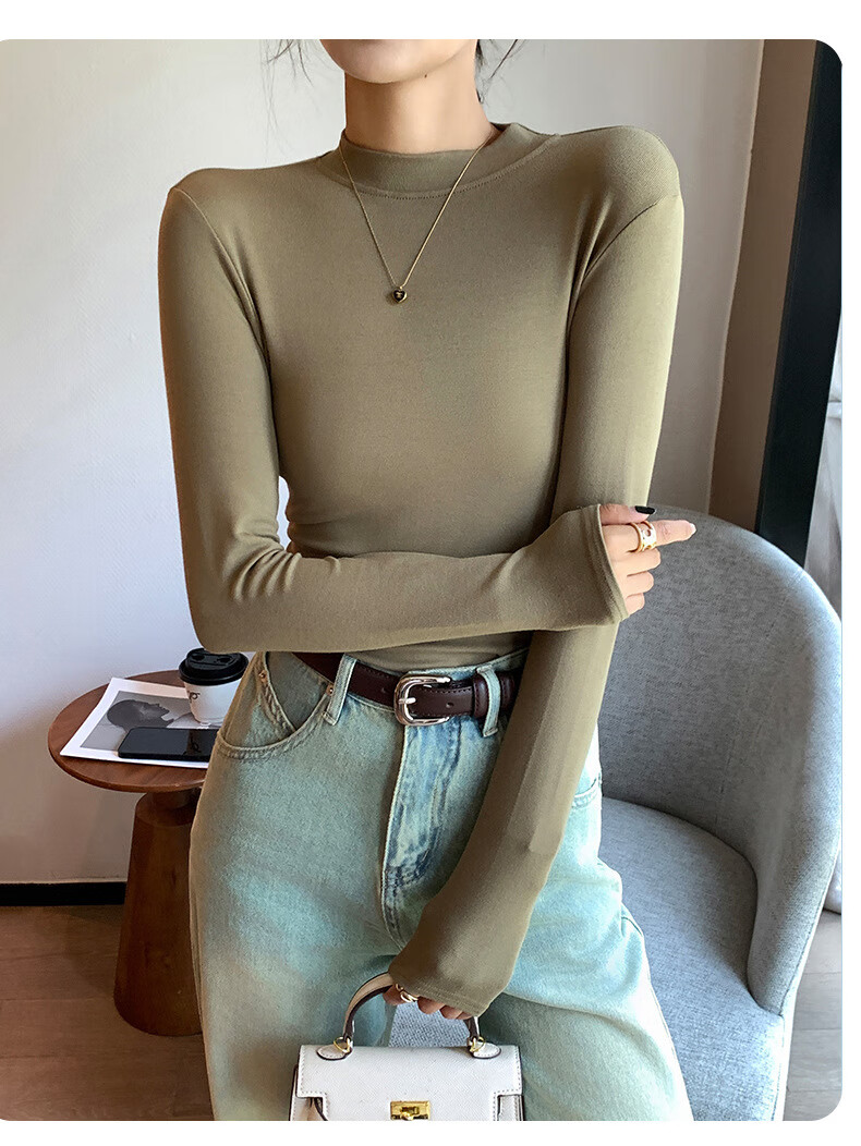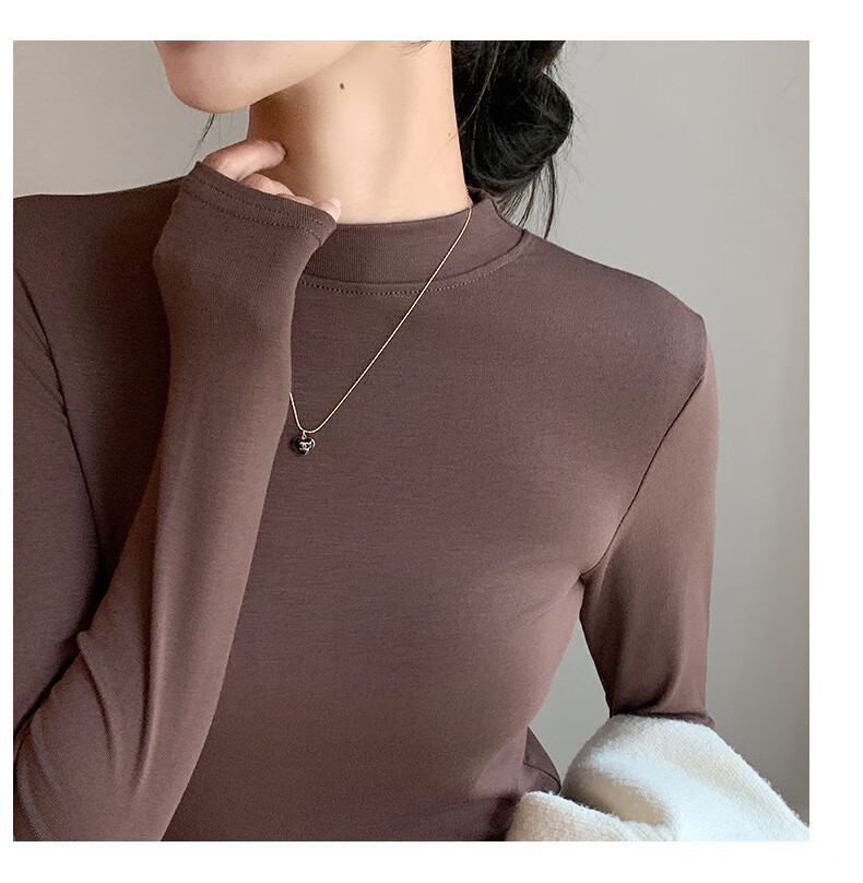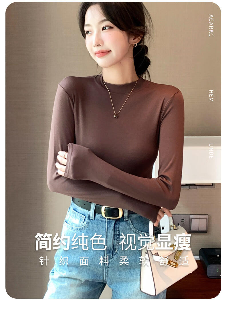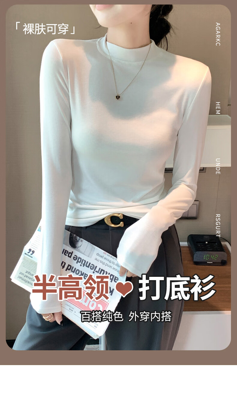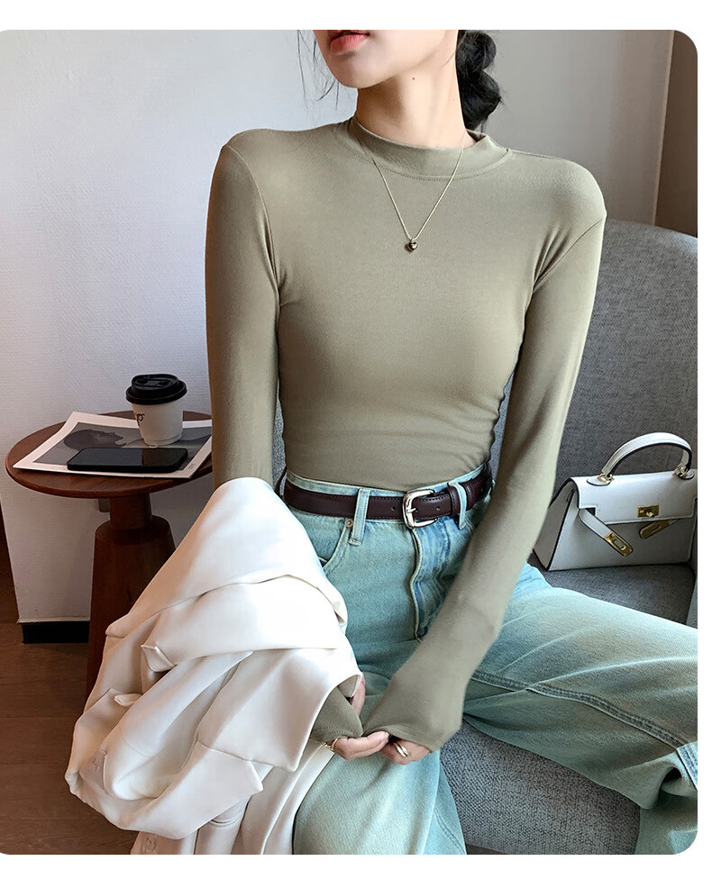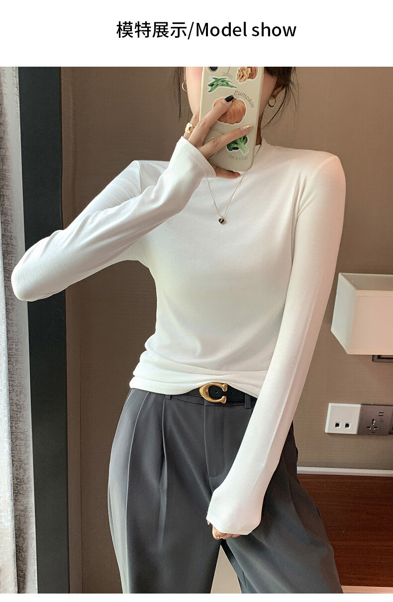Langsha Modal small stand-up collar bottoming shirt for women 2025 spring and autumn new style can be worn outside the right shoulder long-sleeved top T-shirt