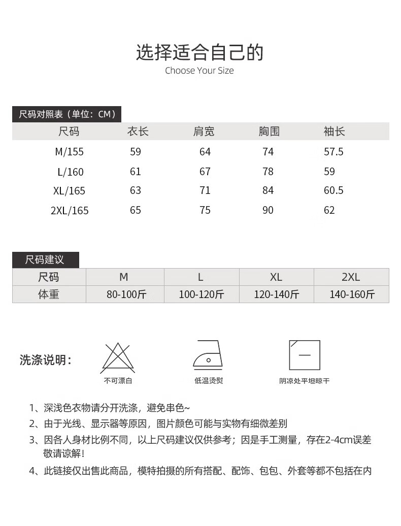 China (cm) 160-165/84-86 165-170 / 88-90 167-172 / 92-96 168-173 / 98-102 170-176 / 106-110