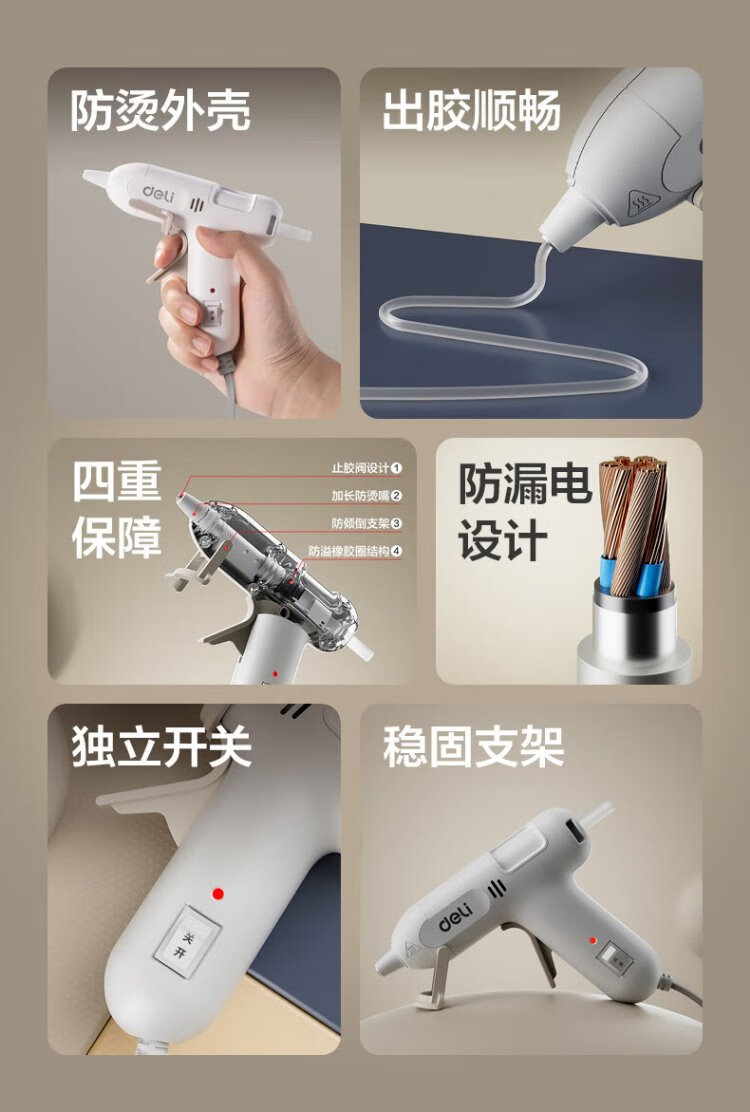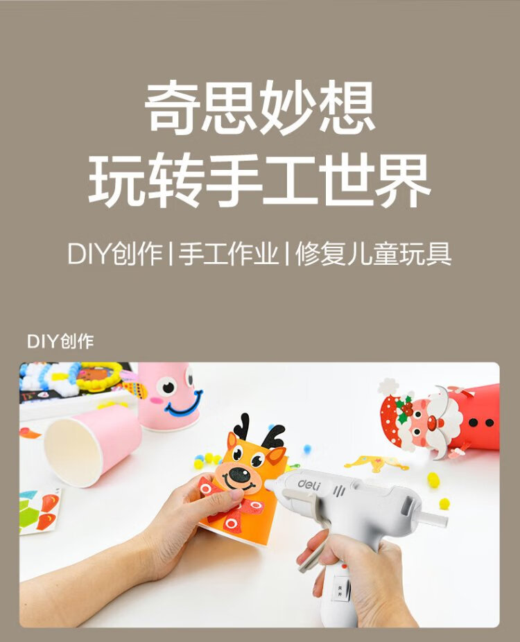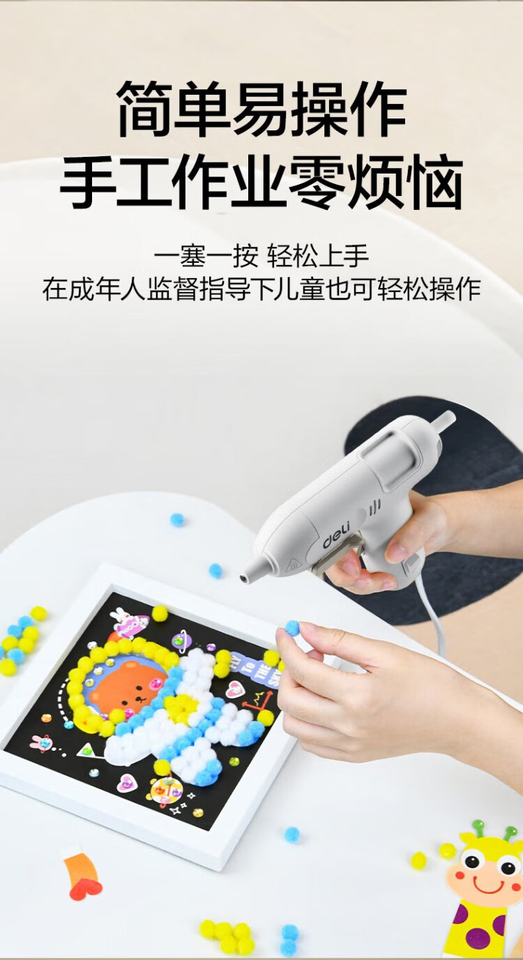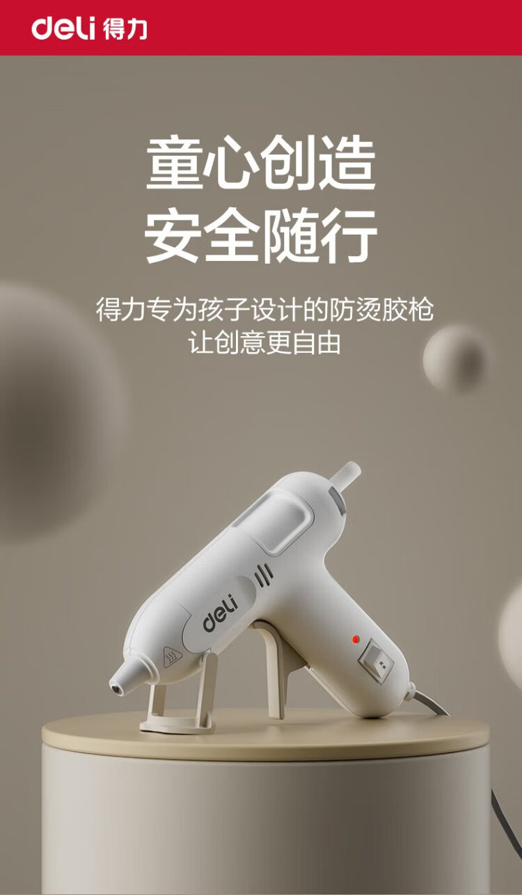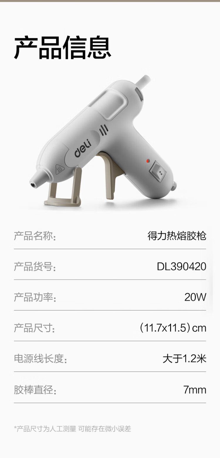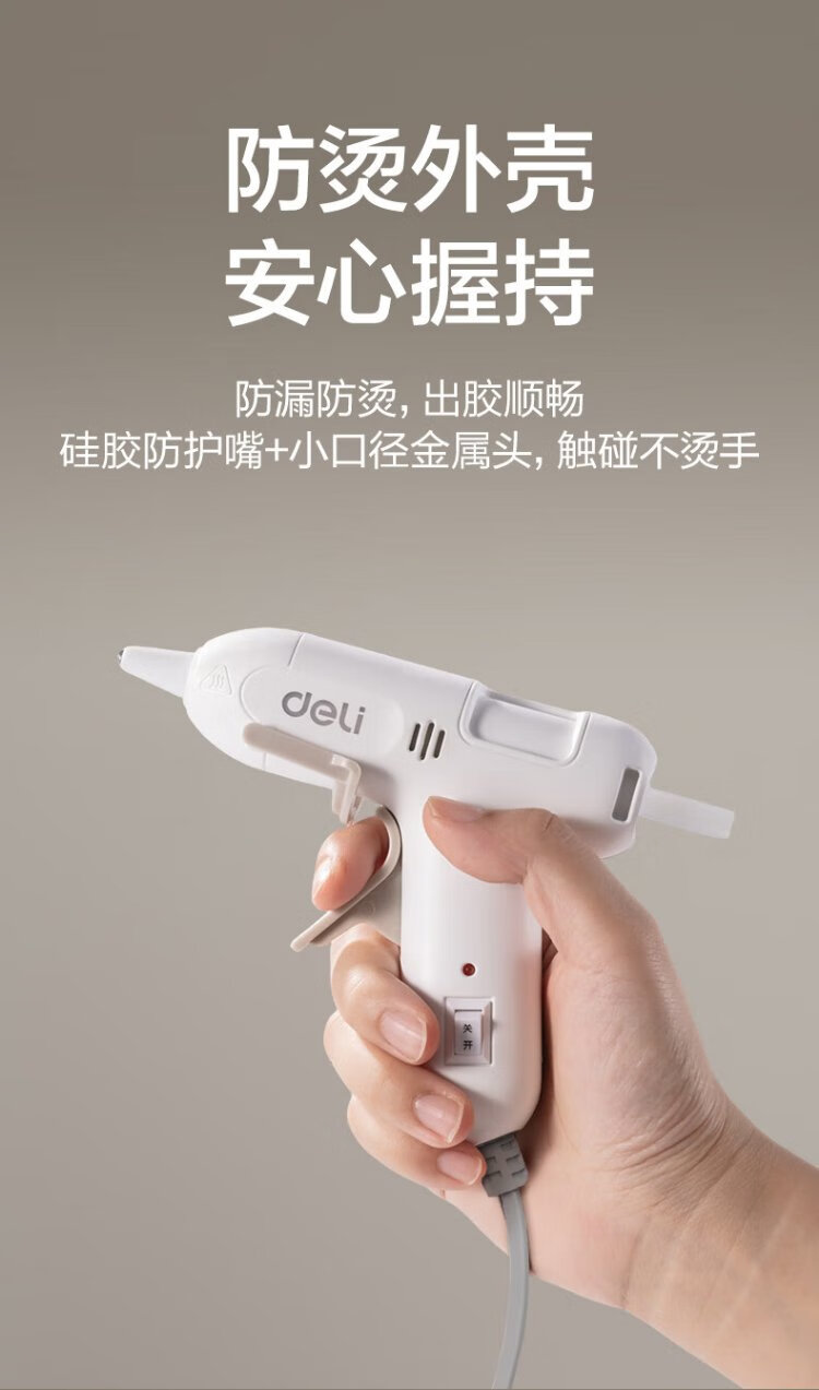 得力(deli)热熔胶枪家用热熔胶加热高粘7MM胶棒20W儿童手工制作DIY胶枪