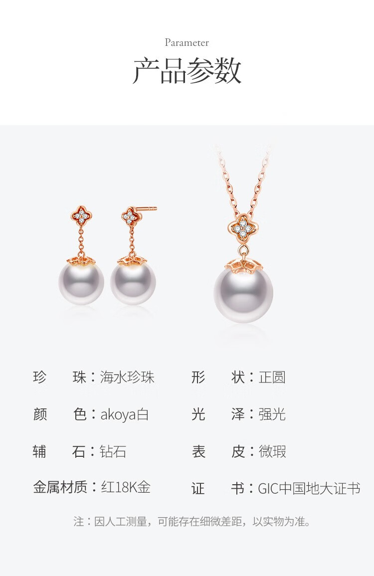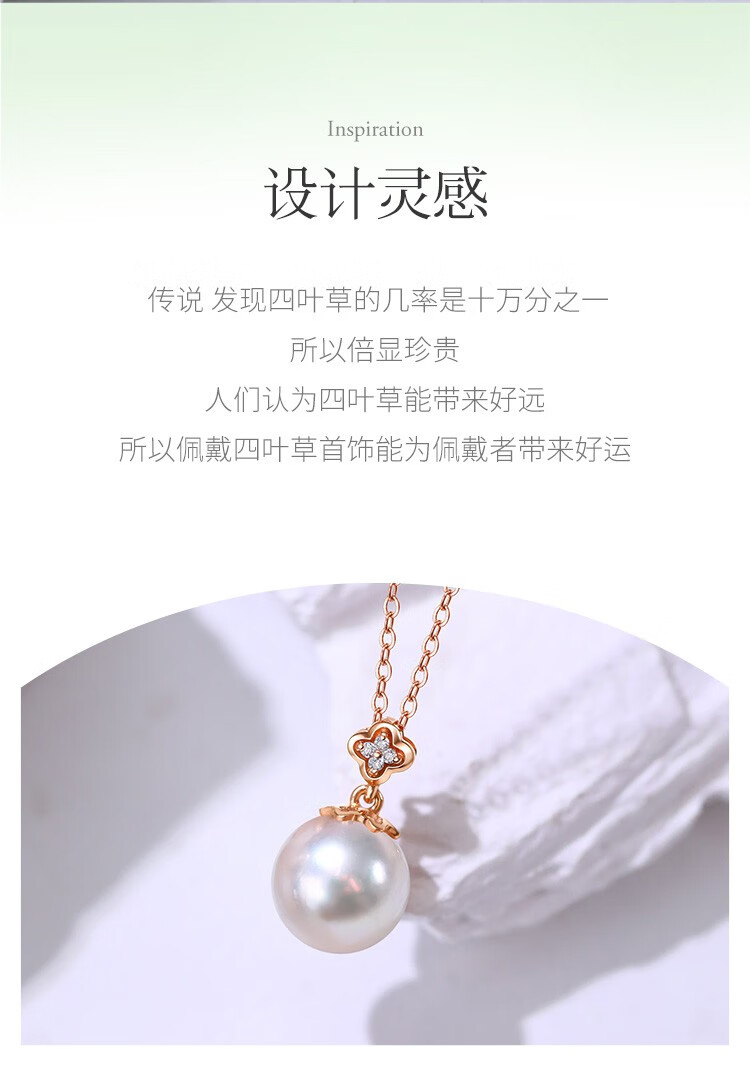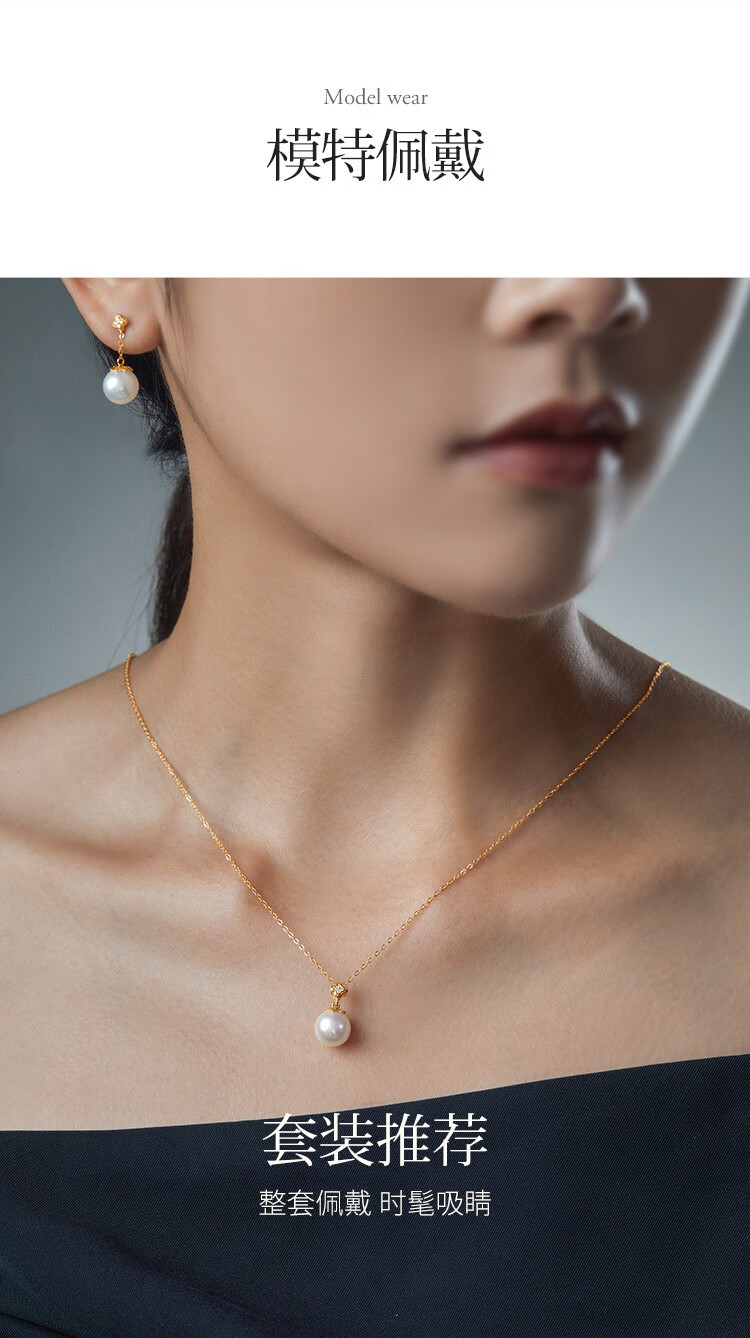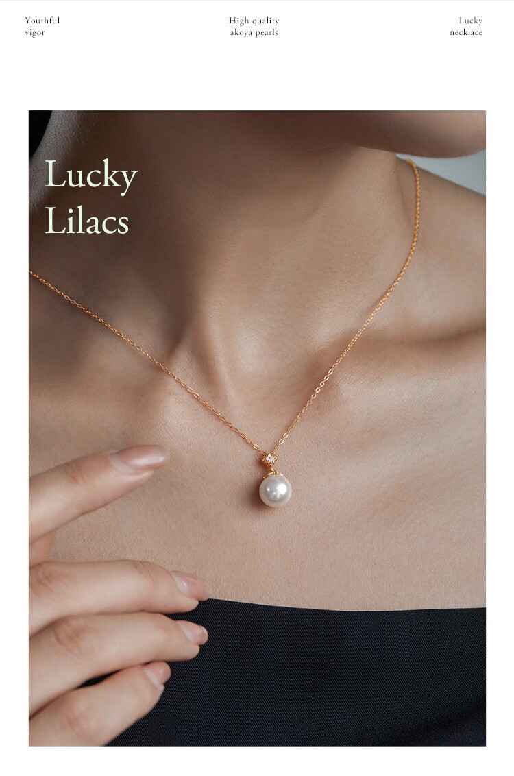 Meluxe akoya seawater pearl necklace round pearl pendant single 18K gold clavicle chain birthday gift 8-8.5mm (with silver chain)