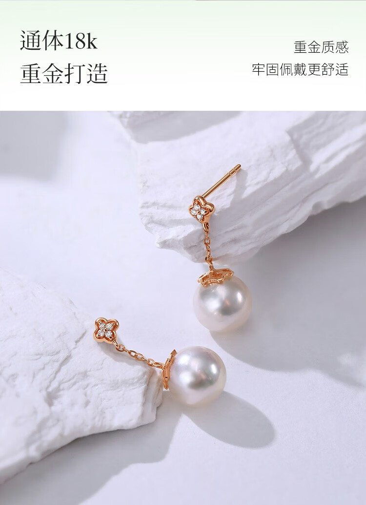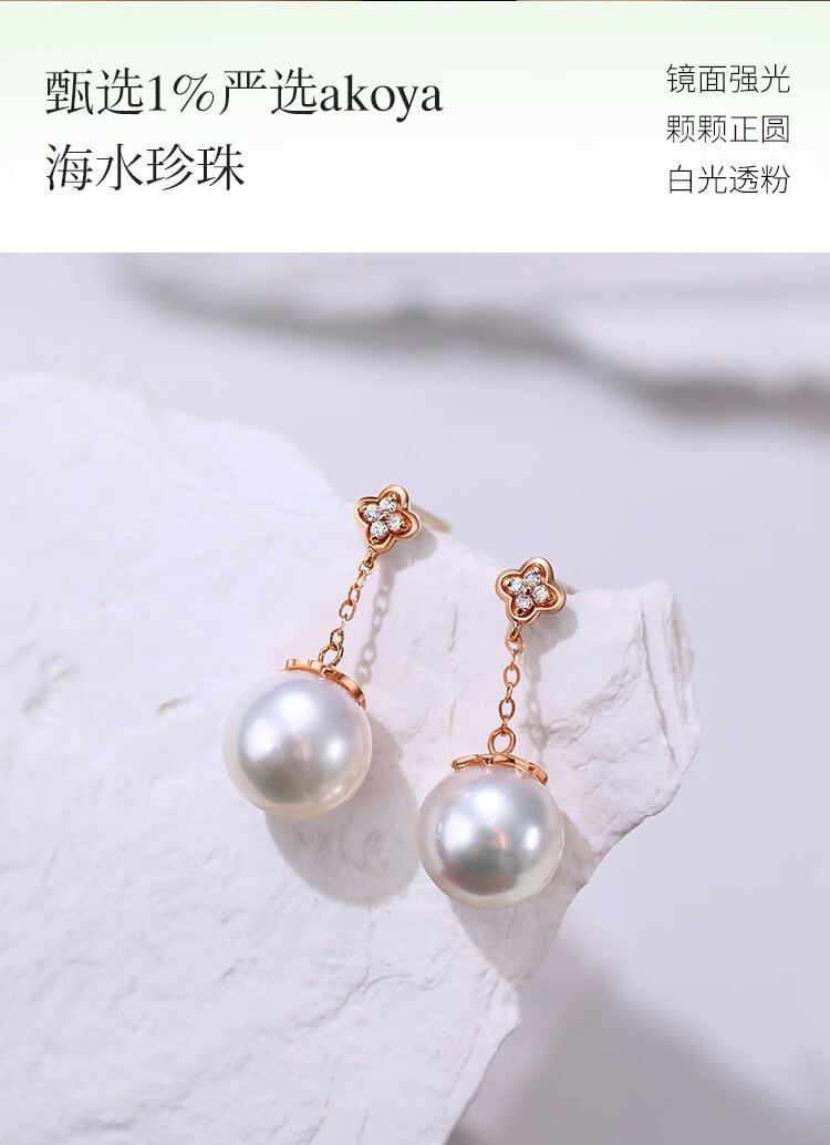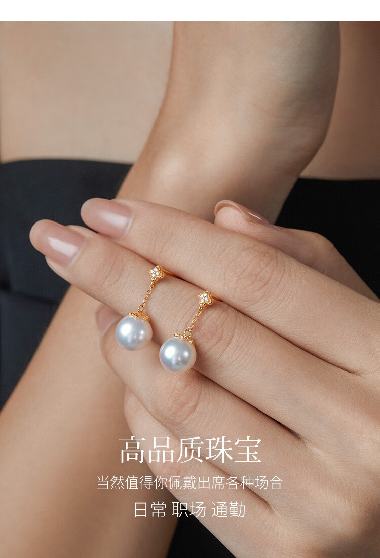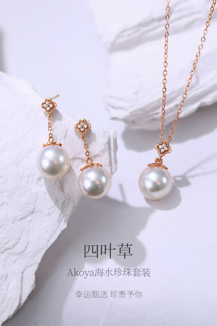 Meluxe akoya seawater pearl necklace round pearl pendant single 18K gold clavicle chain birthday gift 8-8.5mm (with silver chain)