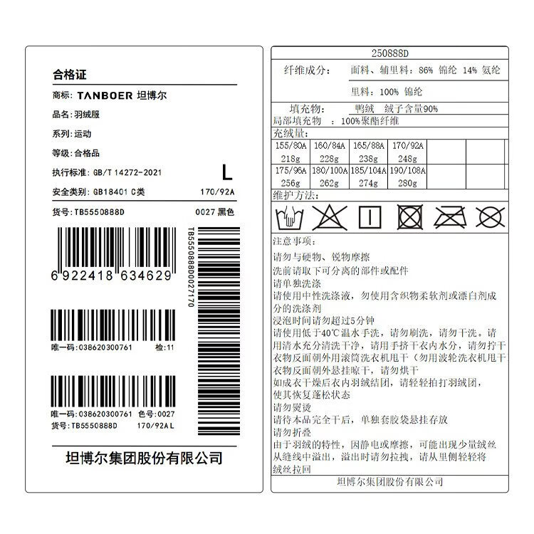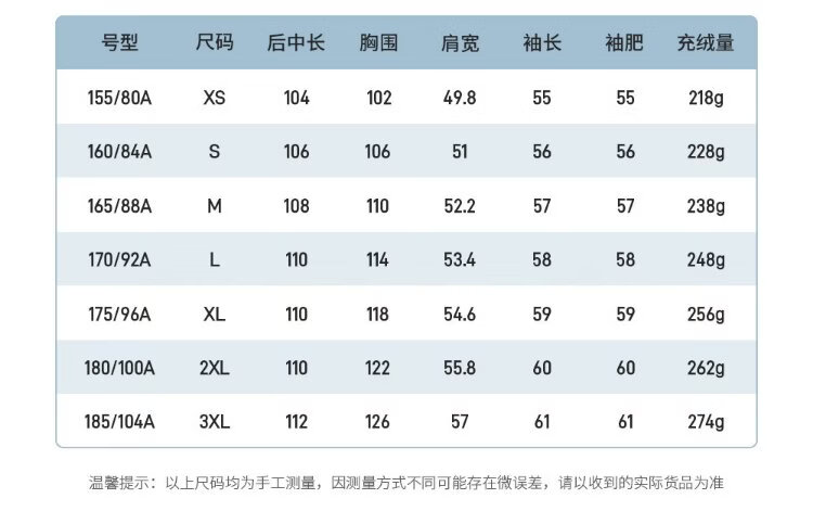 China (cm) 165 / 88-90 170 / 96-98 175 / 108-110 180 / 118-122 185 / 126-130