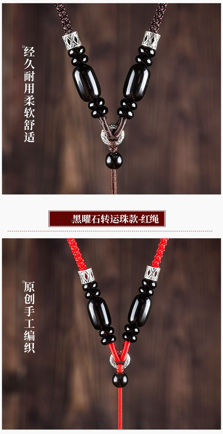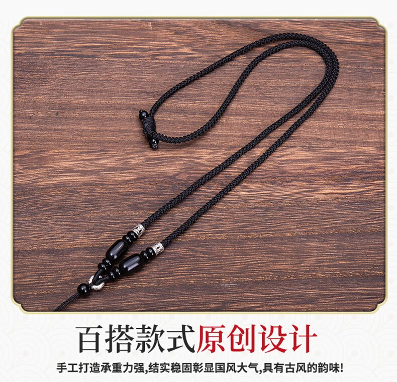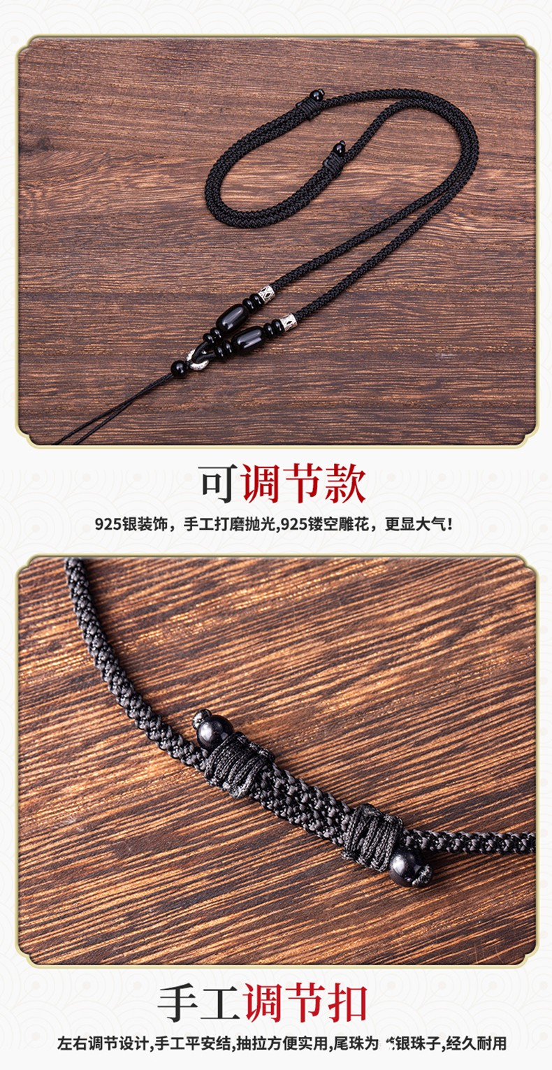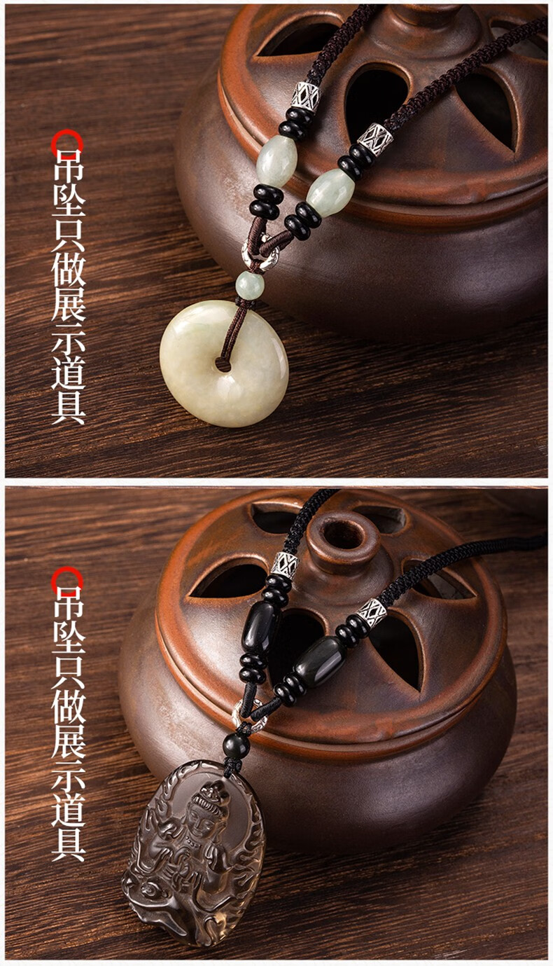 Su Shengfang high-end hand-woven obsidian tiger eye stone jade jade transfer bead necklace pendant pendant rope for men and women Obsidian transfer beads black rope adjustment