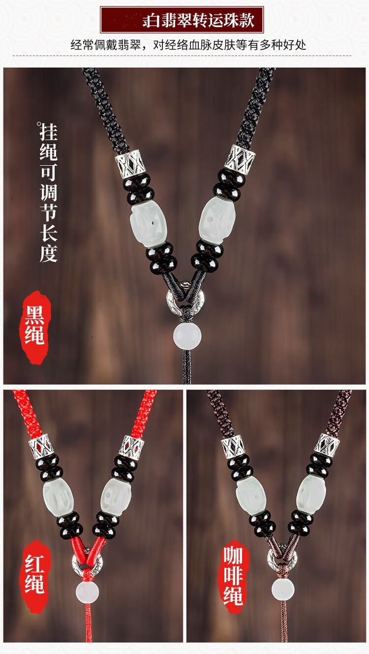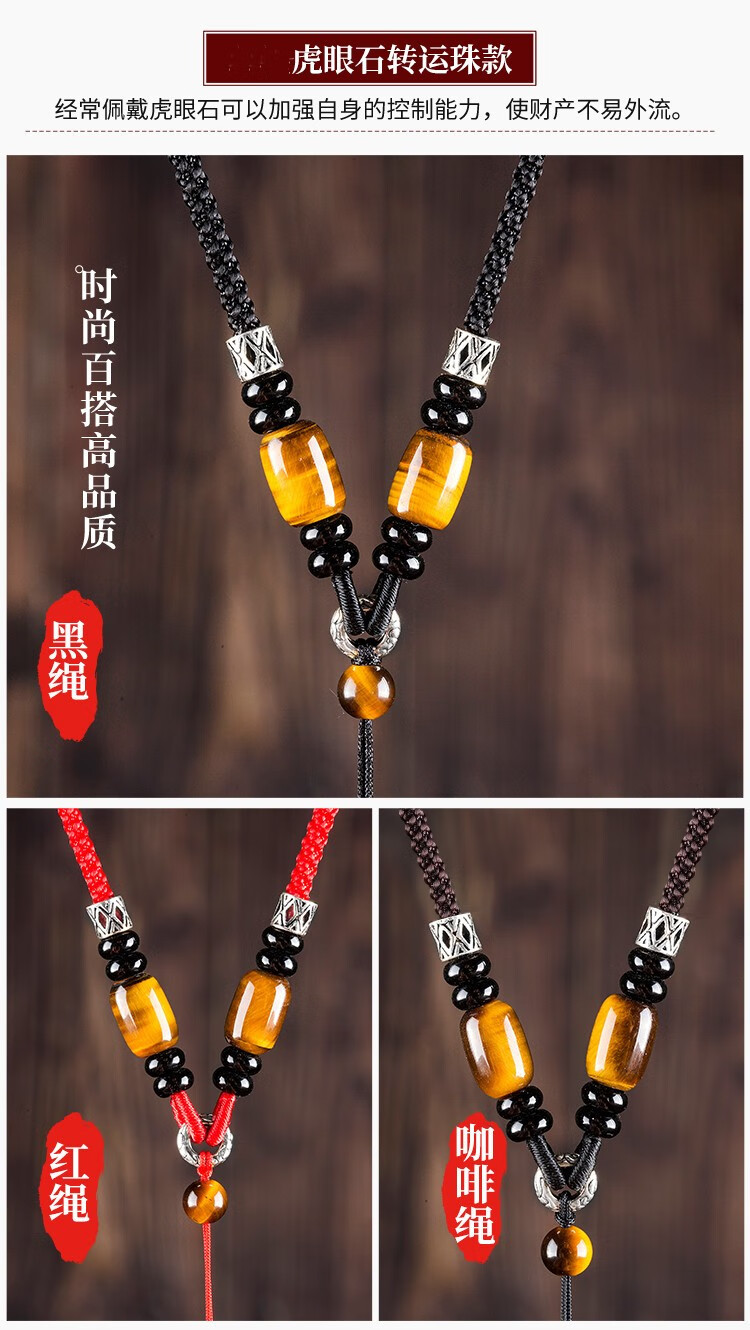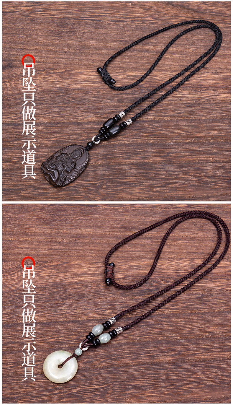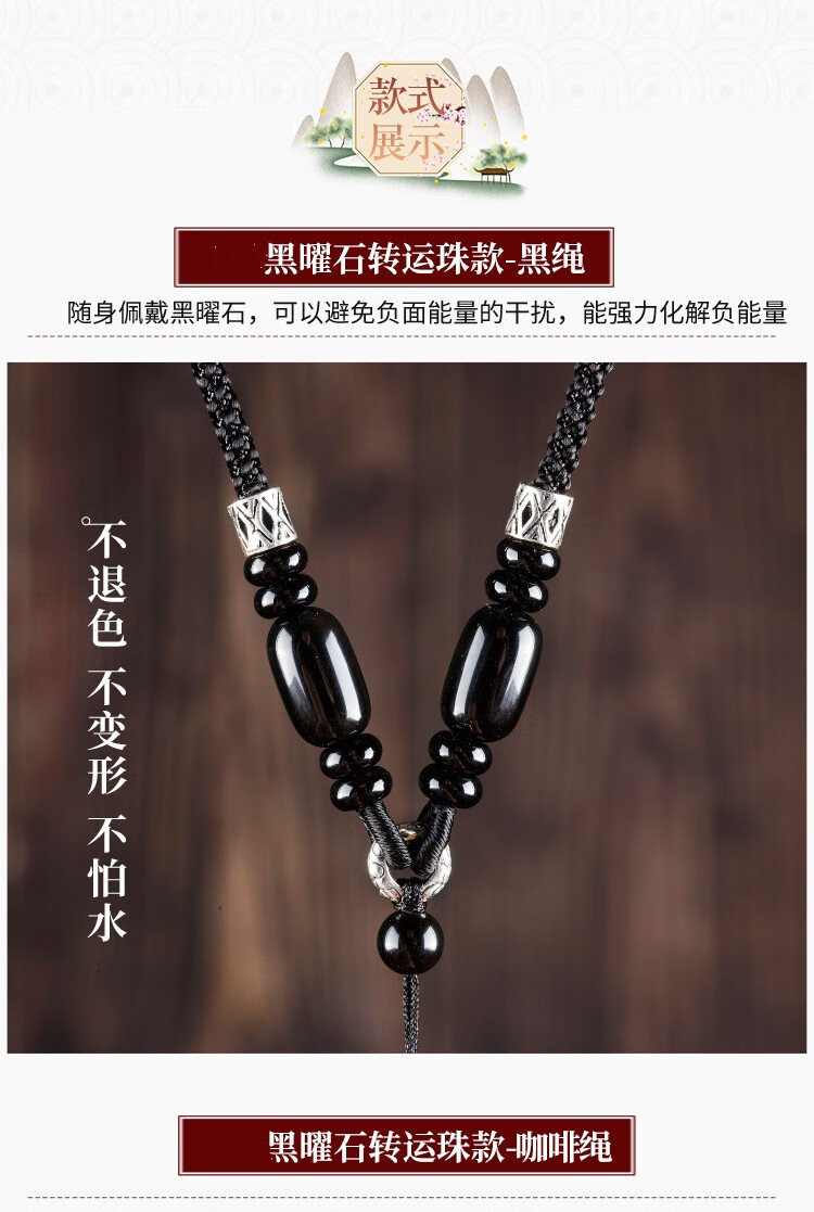 Su Shengfang high-end hand-woven obsidian tiger eye stone jade jade transfer bead necklace pendant pendant rope for men and women Obsidian transfer beads black rope adjustment