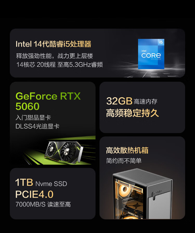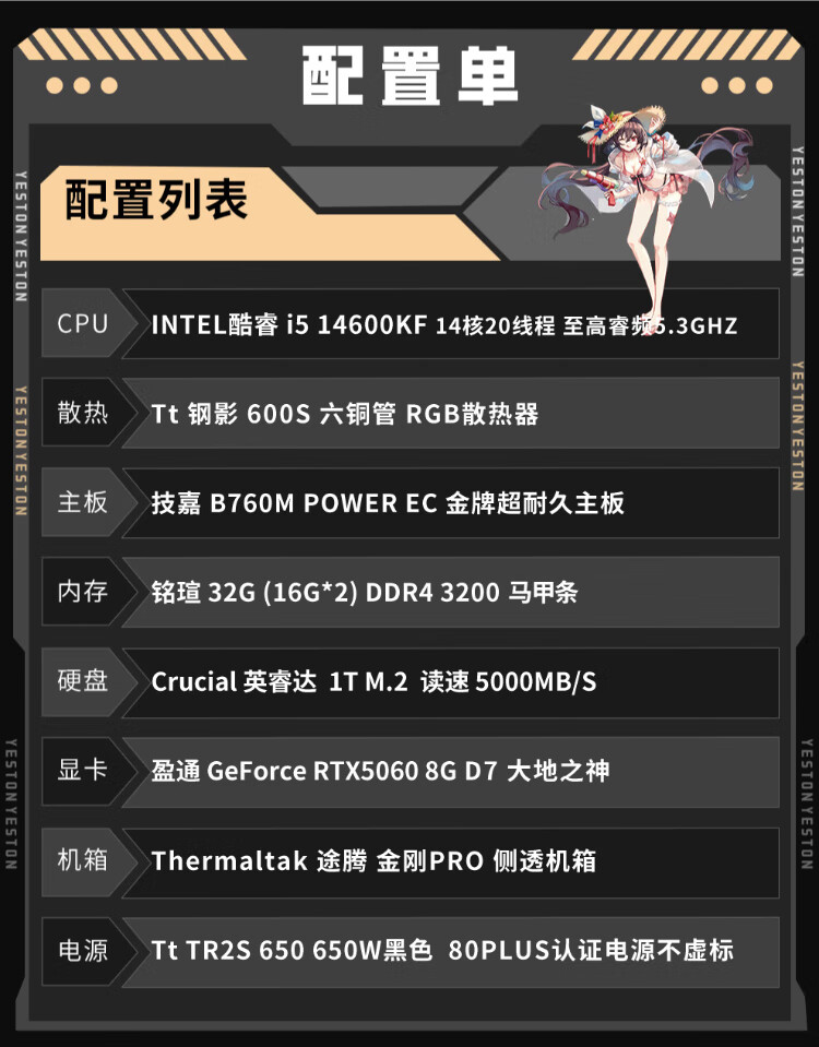 Yeston dawn warblade 14th generation i5-14600KF/RTX5060/32G/1TB e-sports game designer desktop computer host