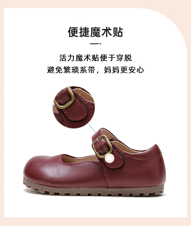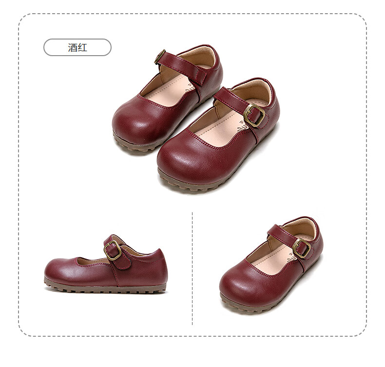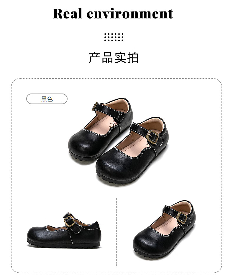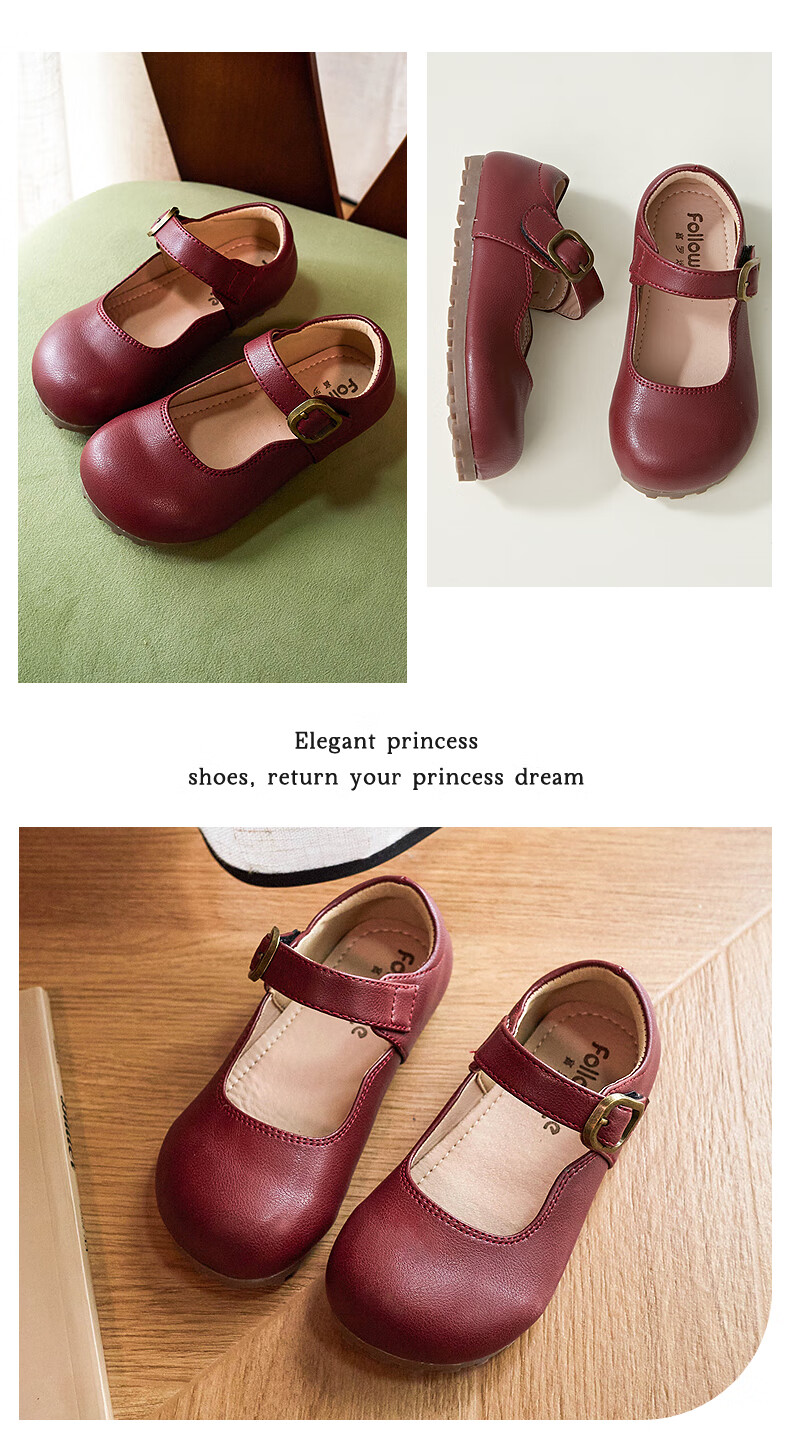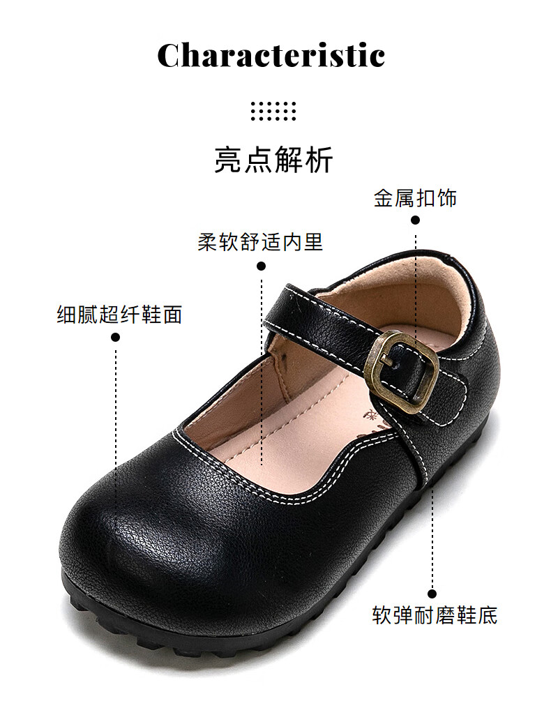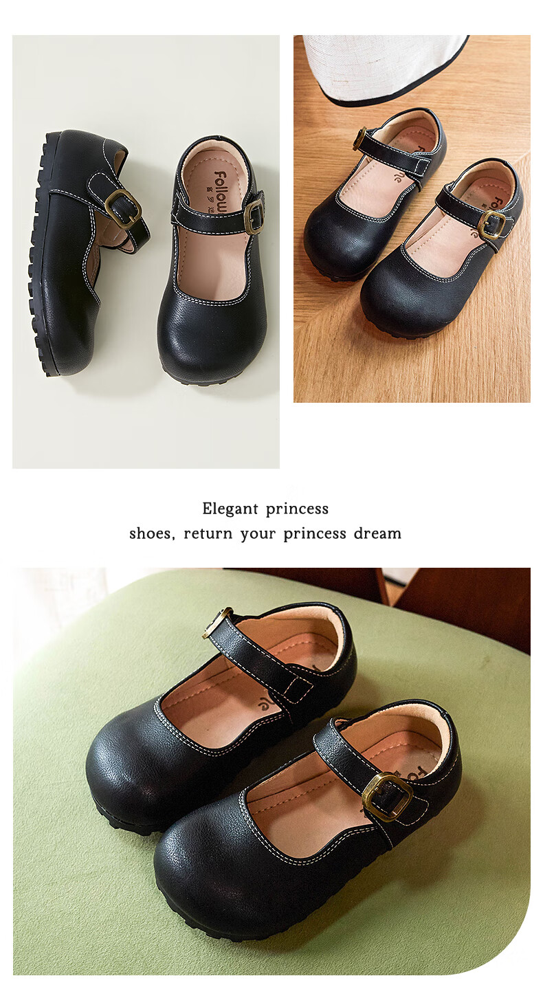 Fuluo Mi Girls' Leather Shoes Spring and Autumn Soft Sole Breathable Children's Shoes Little Girls Fashionable Beanie Shoes Children's Shoes Black 34