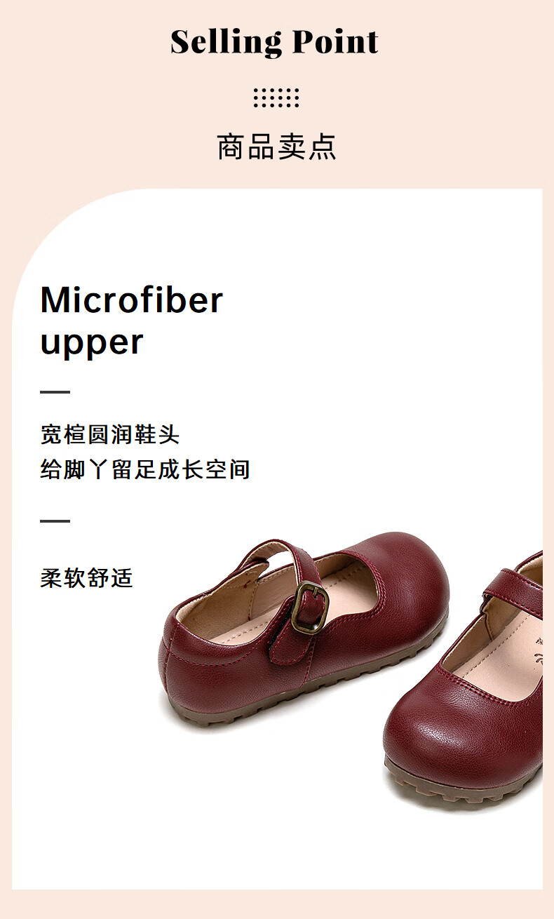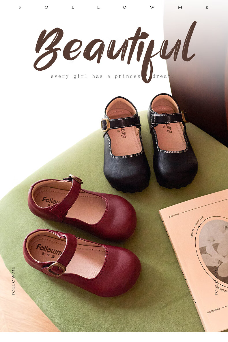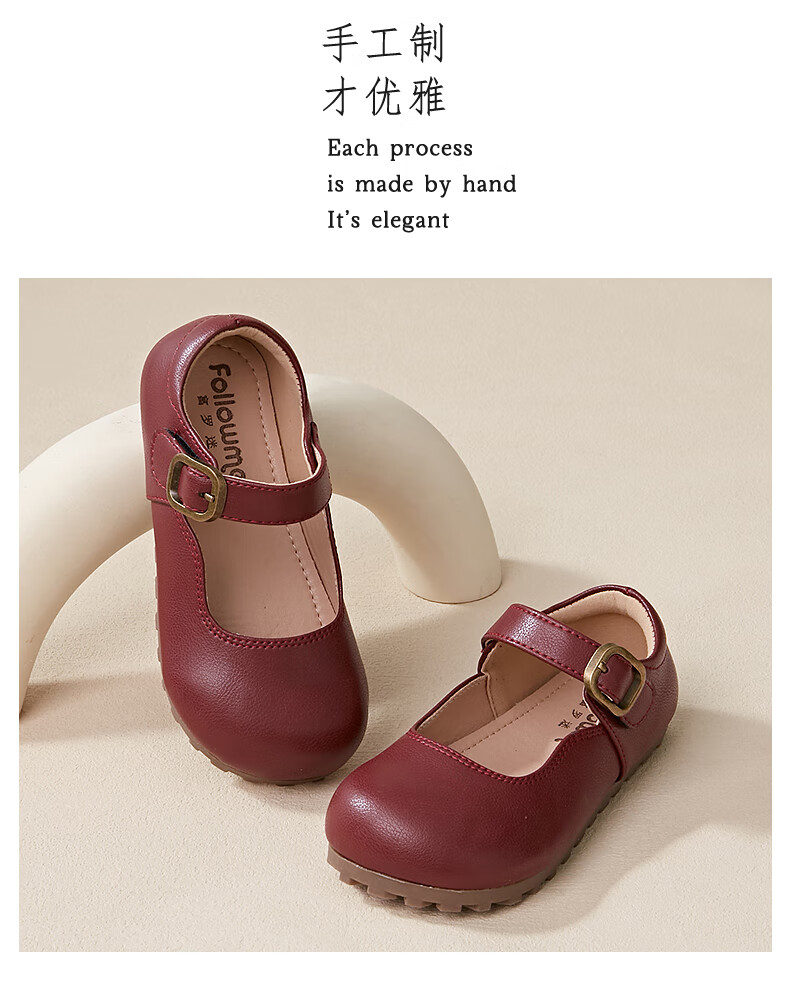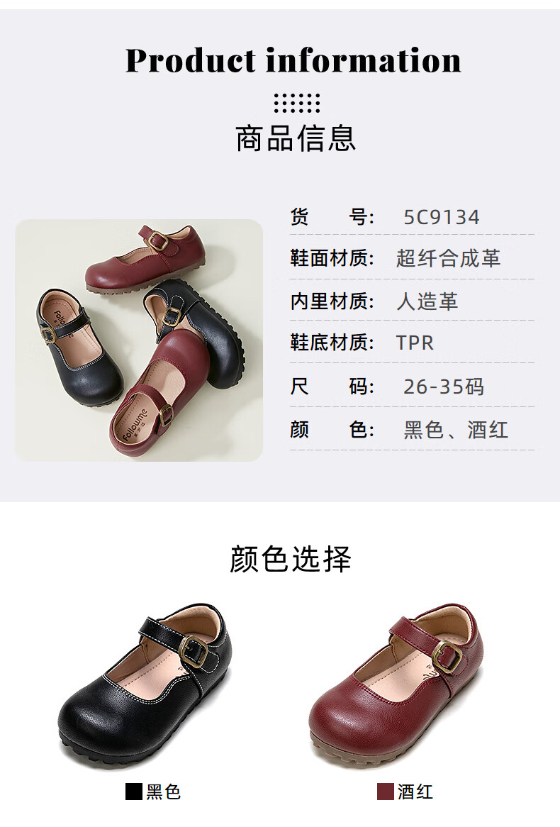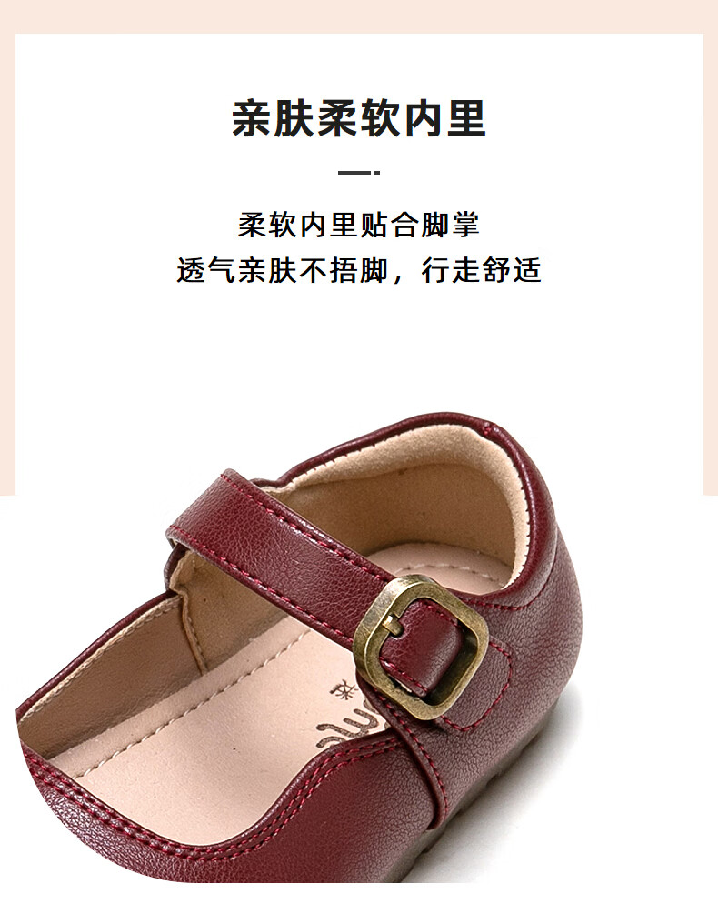 Fuluo Mi Girls' Leather Shoes Spring and Autumn Soft Sole Breathable Children's Shoes Little Girls Fashionable Beanie Shoes Children's Shoes Black 34