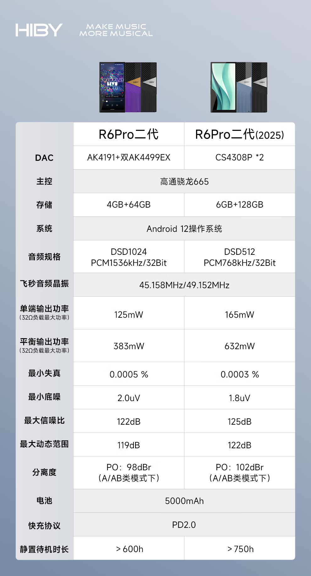 HiBy R6Pro second generation 2025 version music player Android lossless HiFi Walkman DSD hard decoding MP3 dual CS4308P flagship chip Qualcomm 665 blue