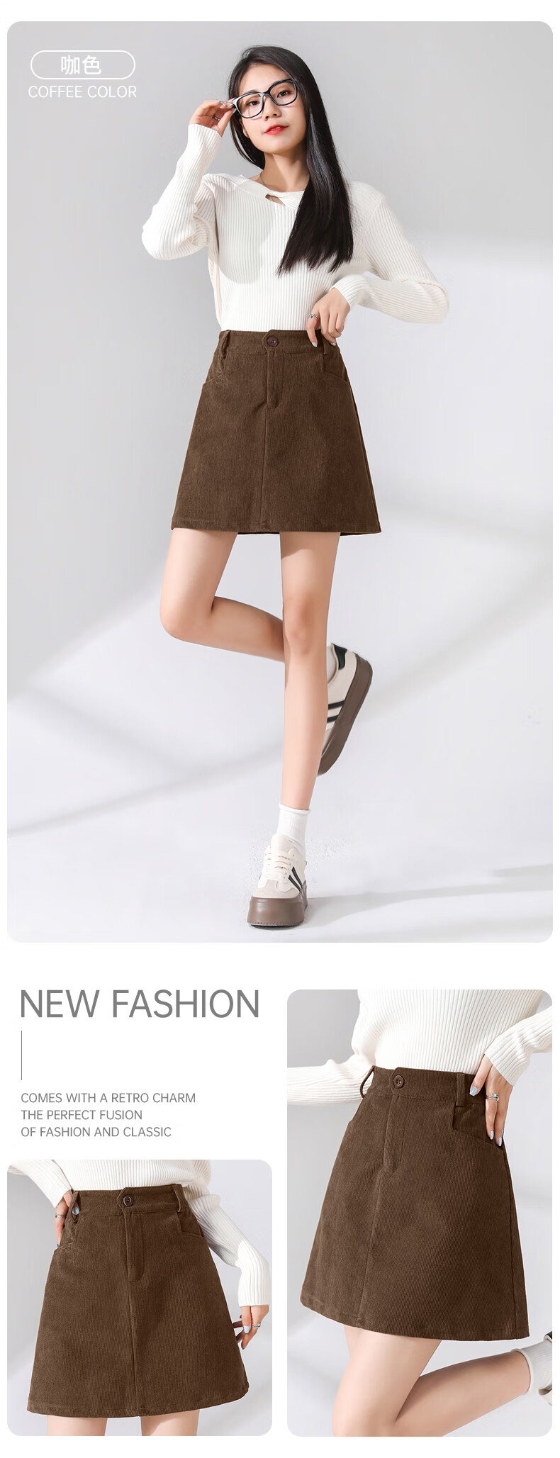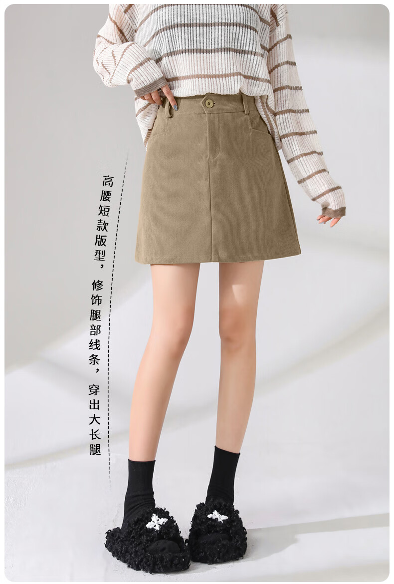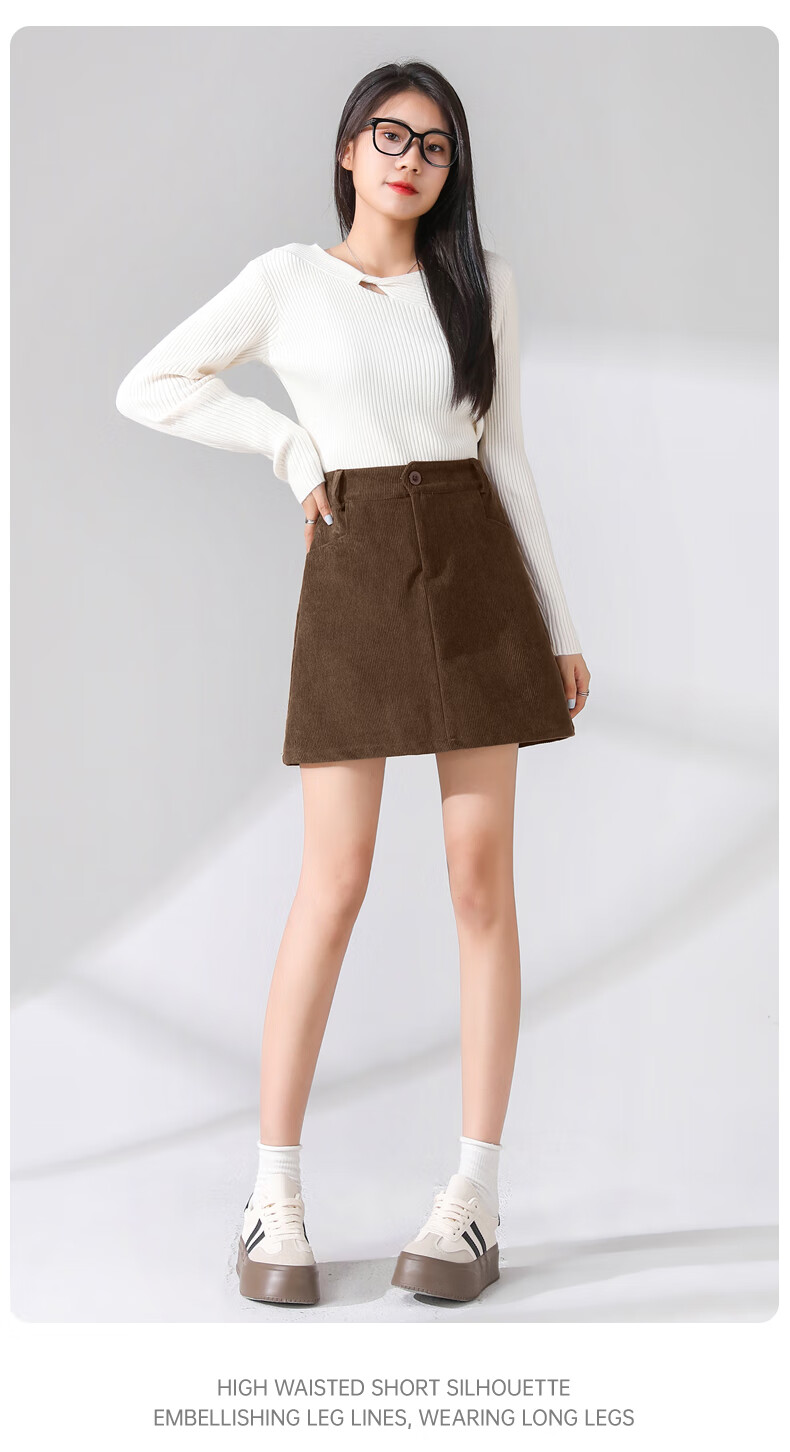 MJ STYLE Corduroy Short Skirt Women's 2025 Autumn New Korean A-line High Waist Slim Small College Style Skirt