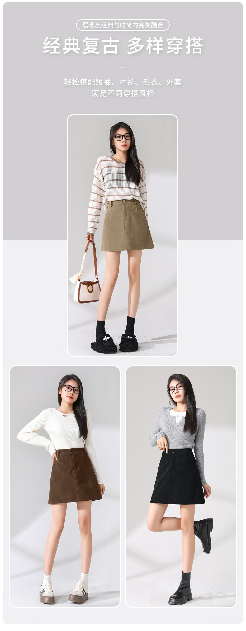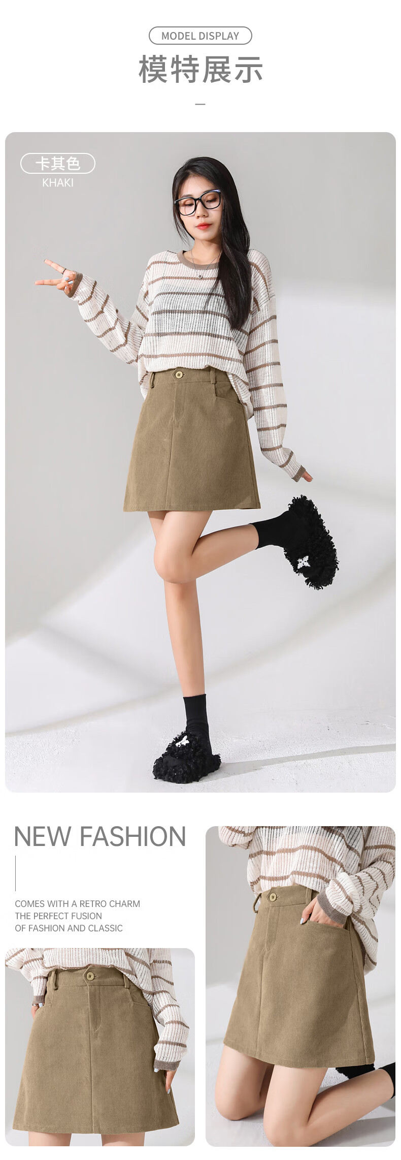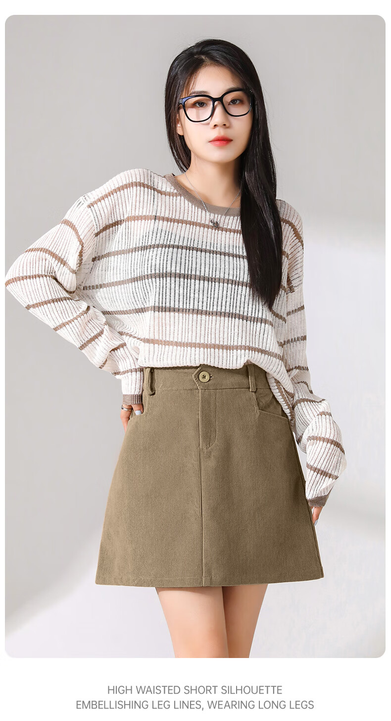 MJ STYLE Corduroy Short Skirt Women's 2025 Autumn New Korean A-line High Waist Slim Small College Style Skirt