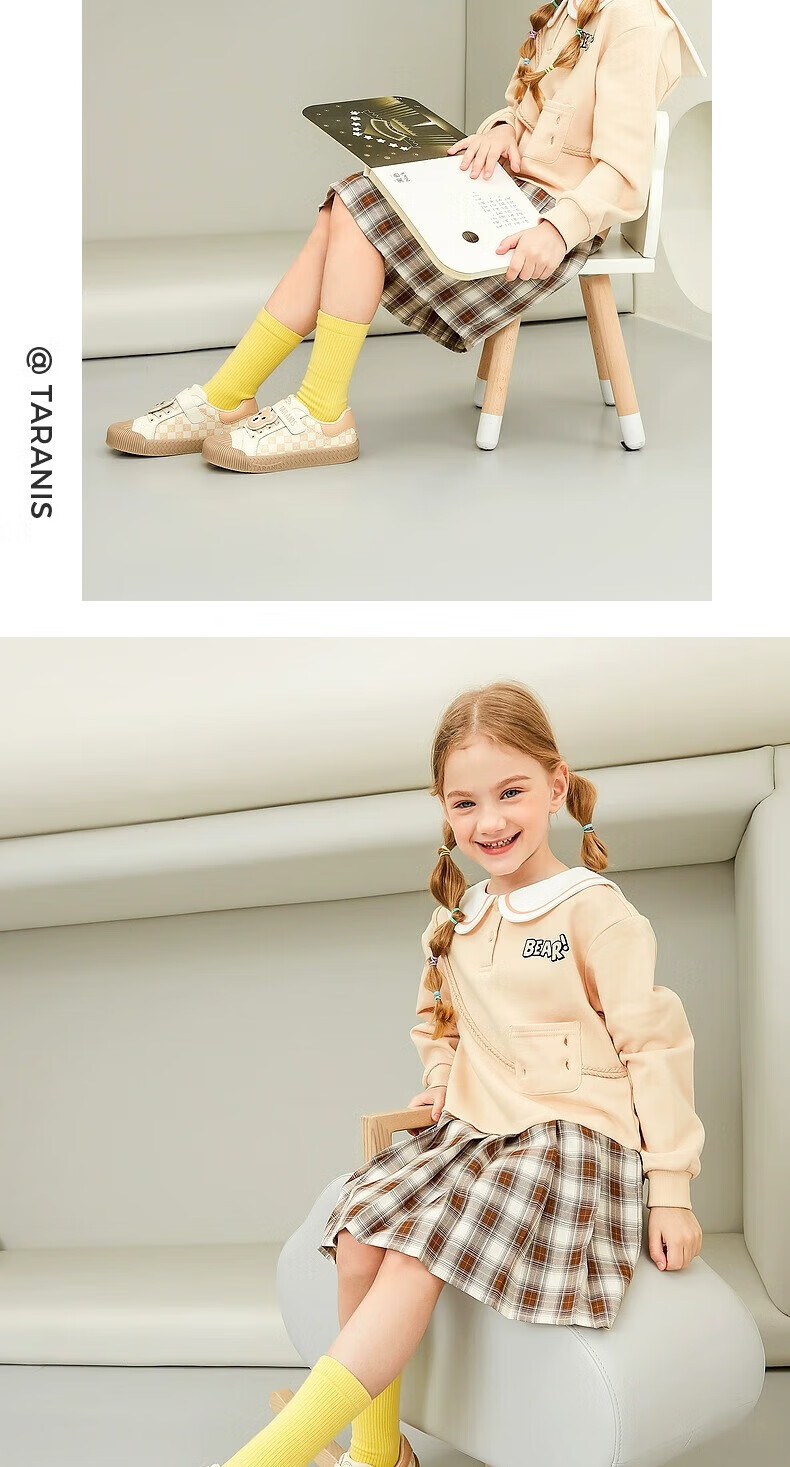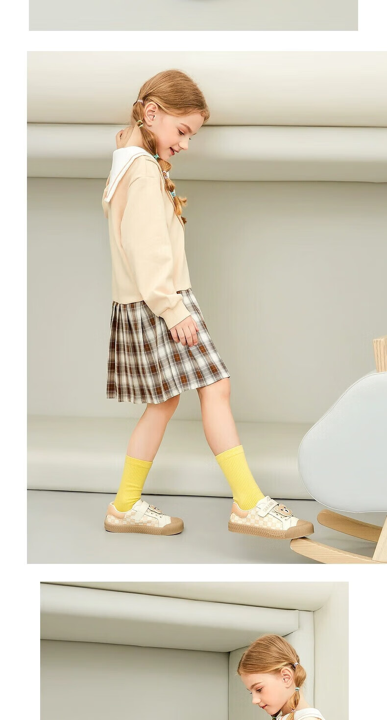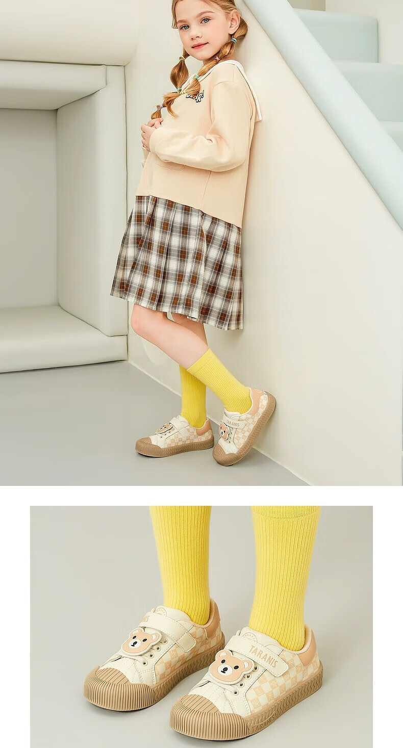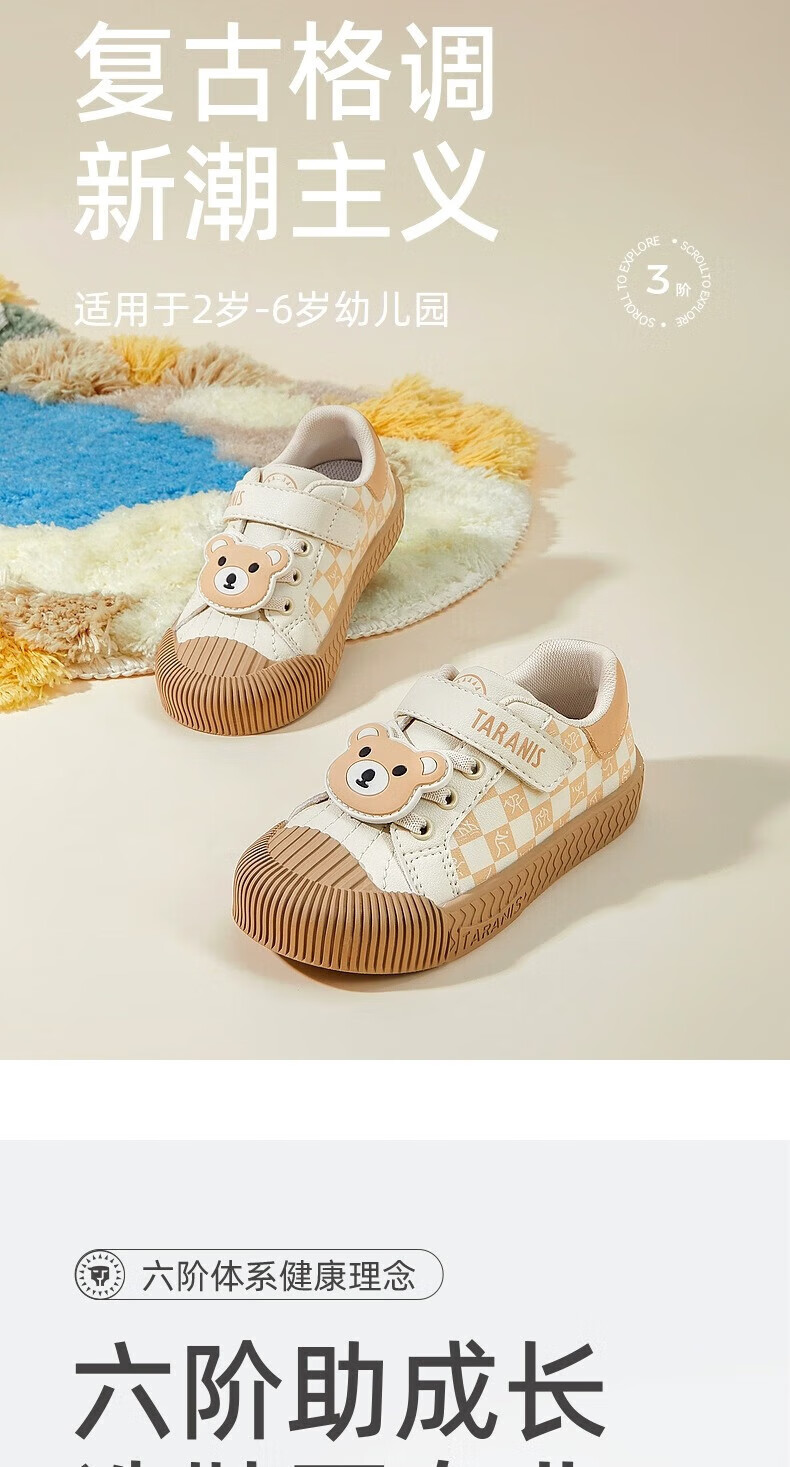 Terranis Children's Shoes Autumn Kindergarten Indoor Shoes for Men and Women Baby Non-Slip Soft Soled Children's Shoes White/Apricot 29