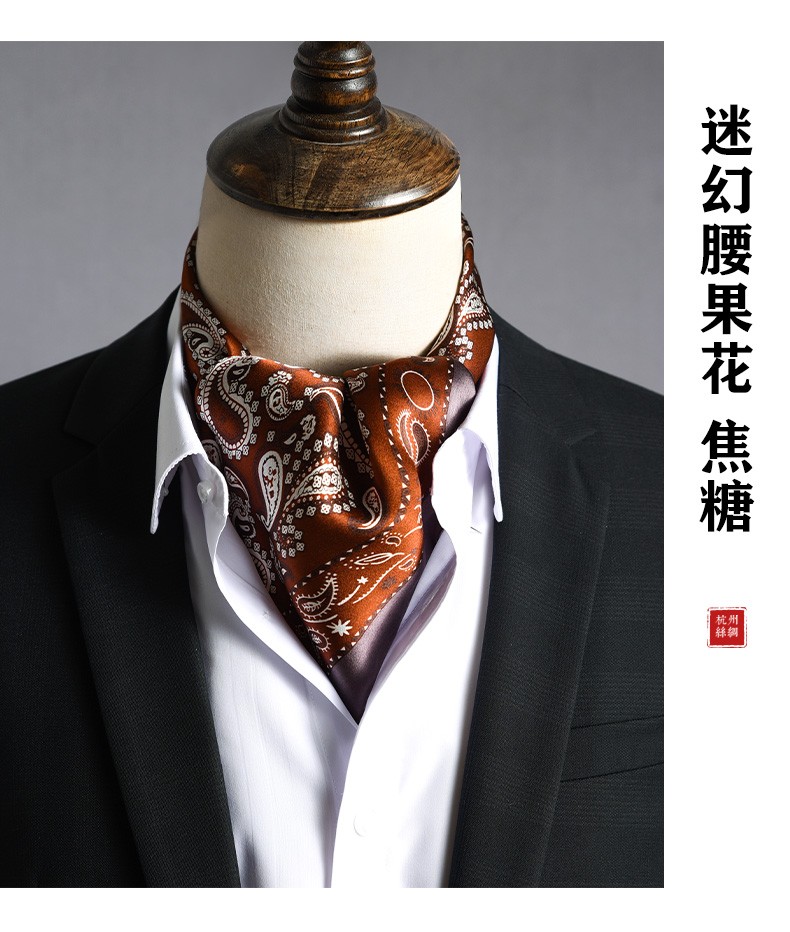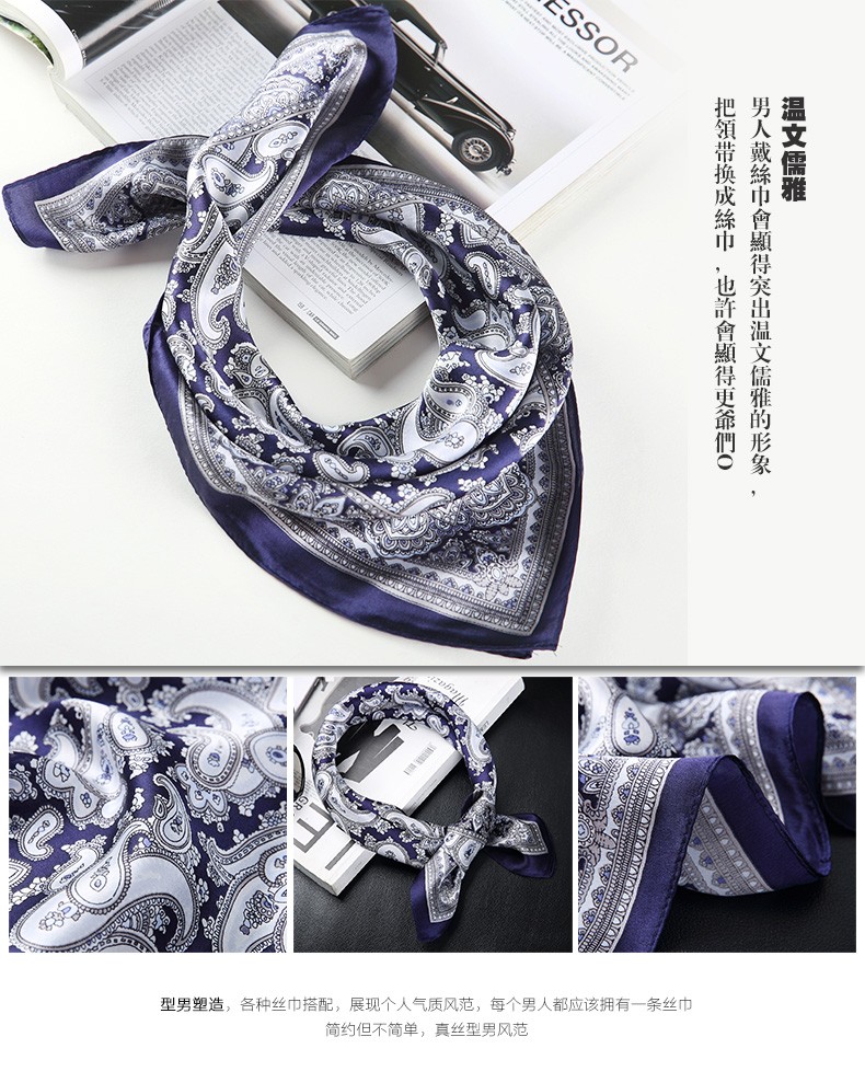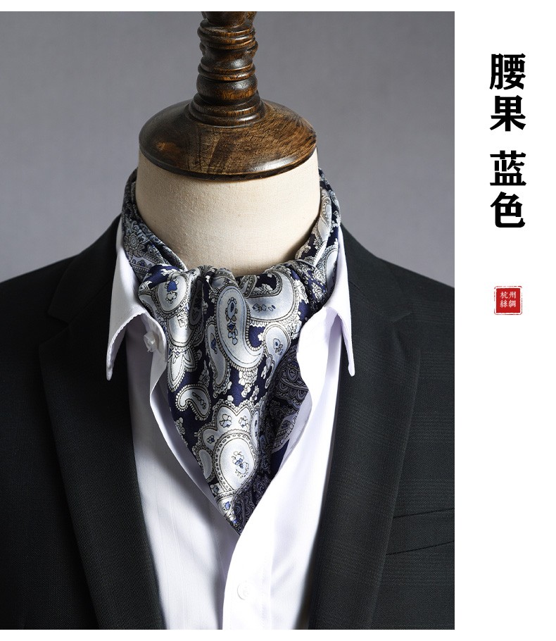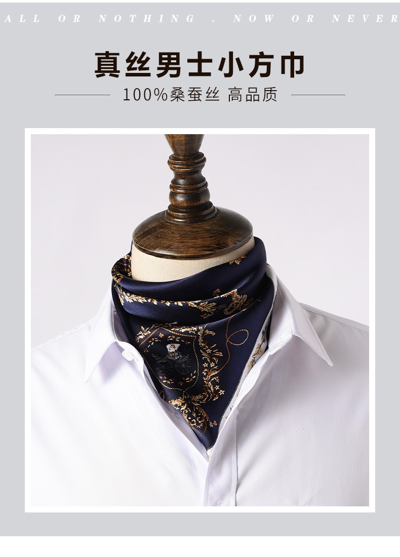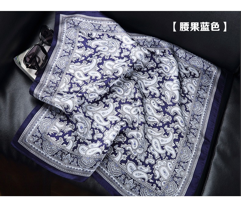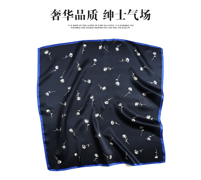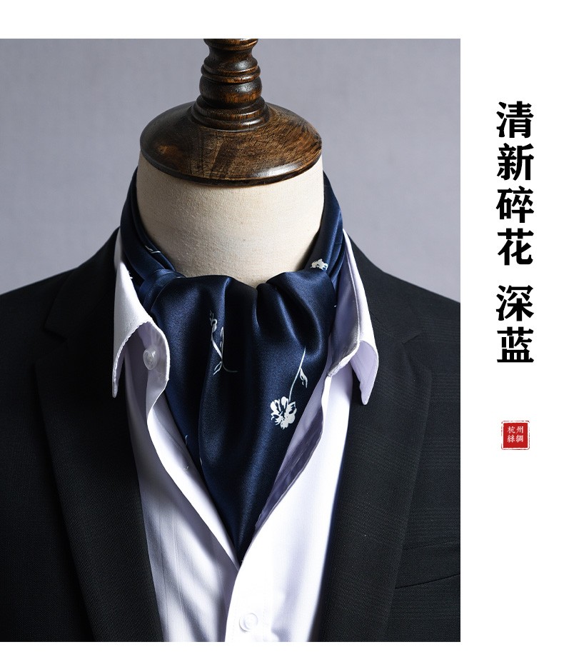 Hangsifu silk scarf men's neck scarf mulberry silk suit scarf father's birthday husband boyfriend gift Flowers in the Mirror-Tibetan Blue