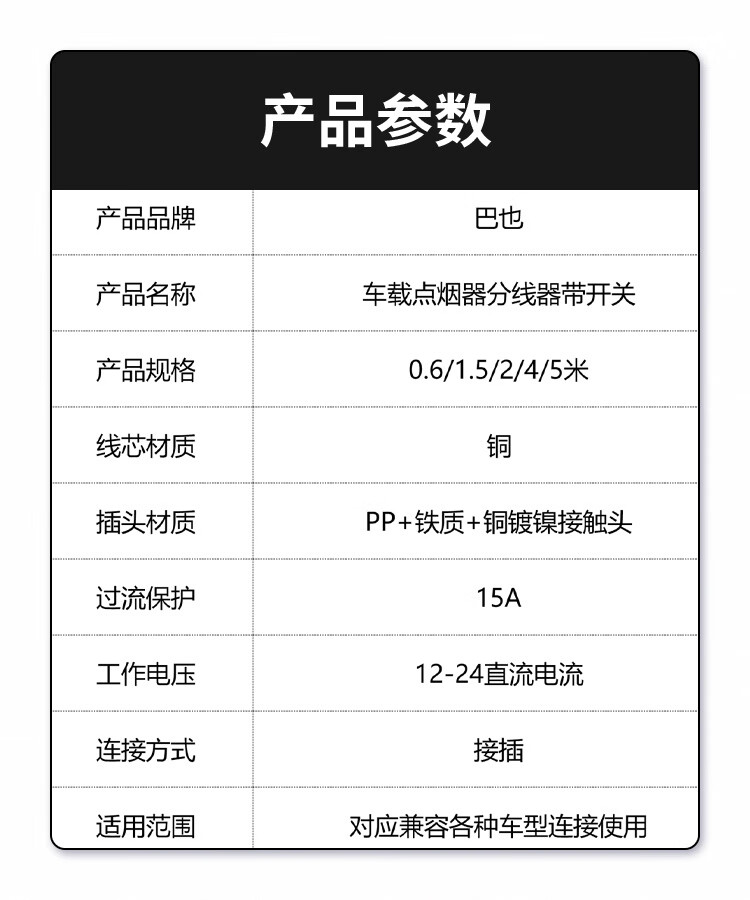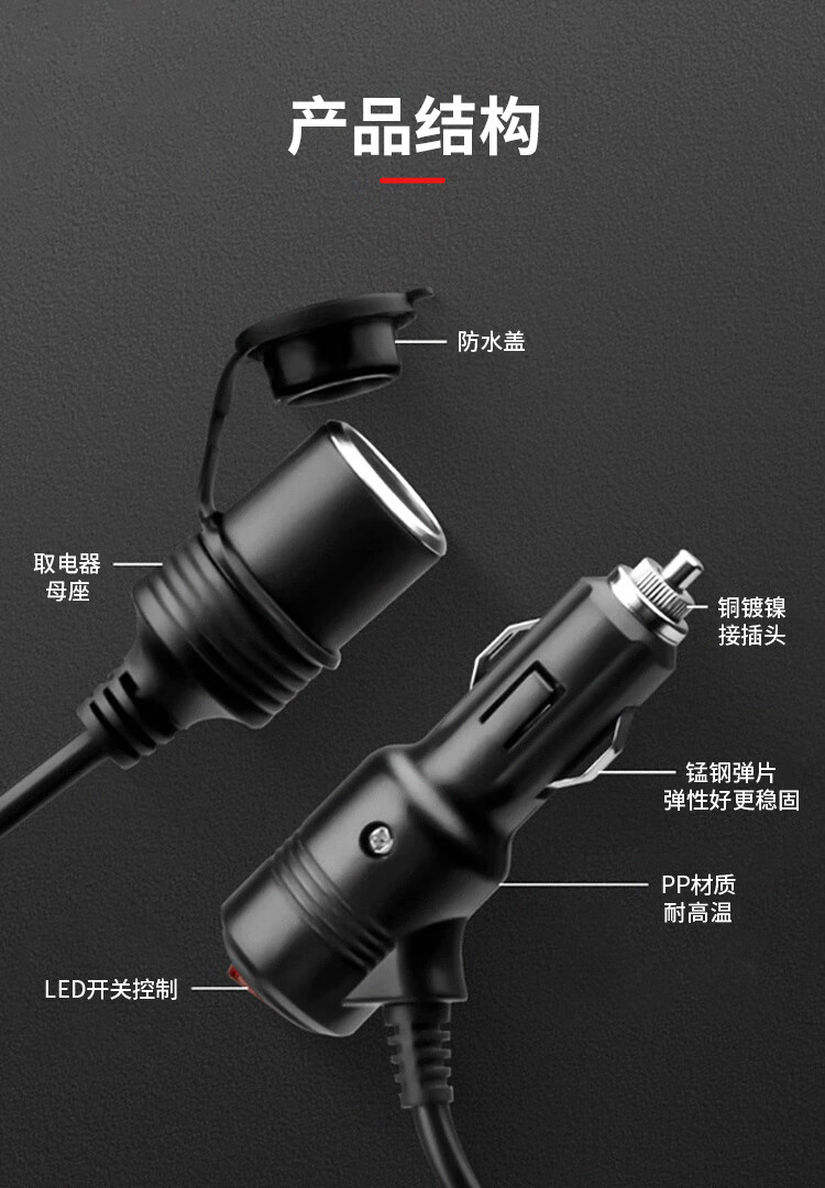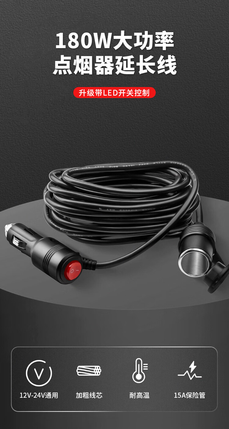 Baye car cigarette lighter 12v24v male to female extension cord with switch 0.6 meters/1 BY-DYQM0.6FG