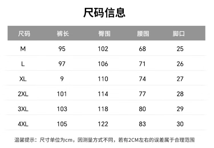 Outseam (cm) 99 cm 101.5 cm 104 cm 106.5 cm 109 cm