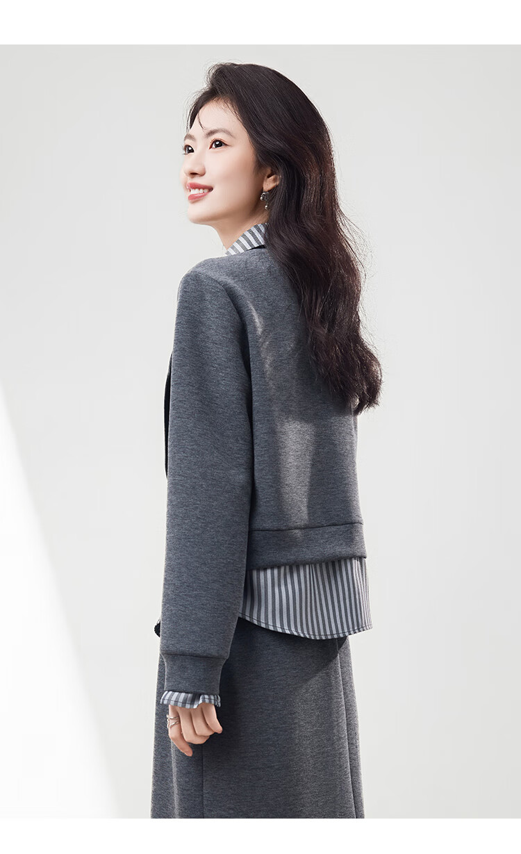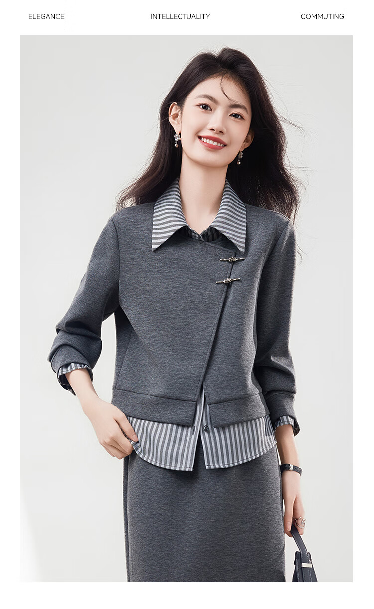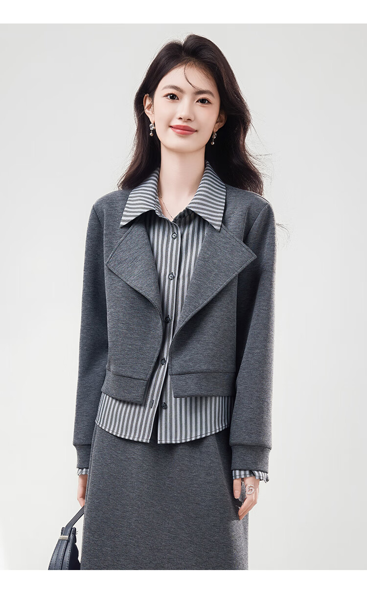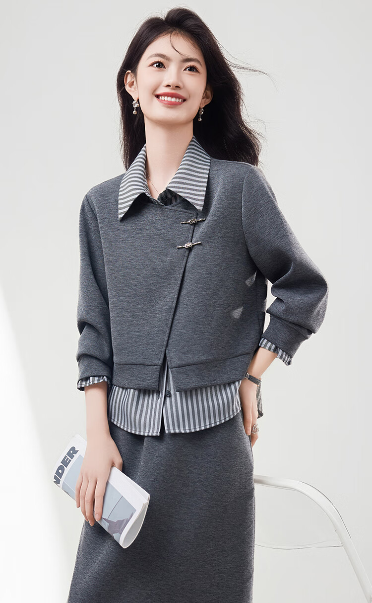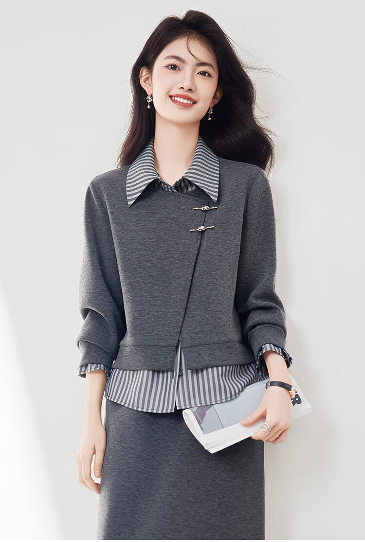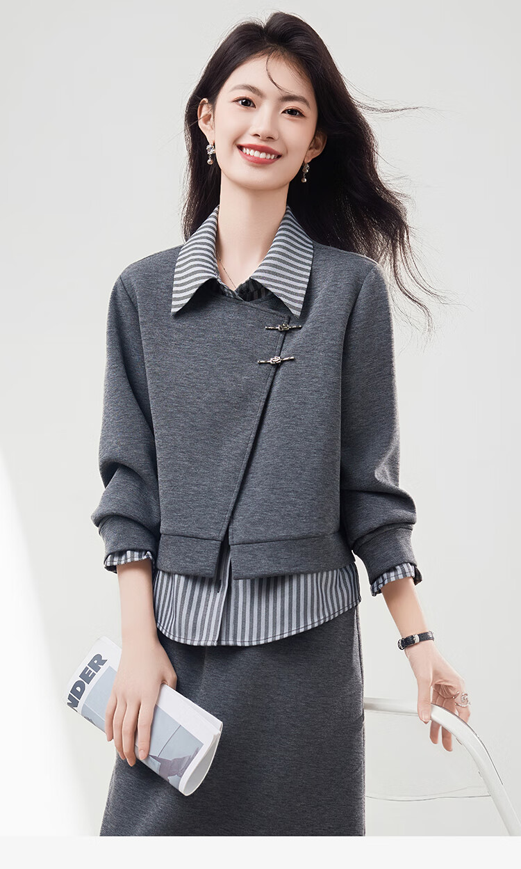 Xinfeiyu high-end spliced fake two-piece long-sleeved sweatshirt for women in autumn 25 autumn and winter new style small loose slimming top