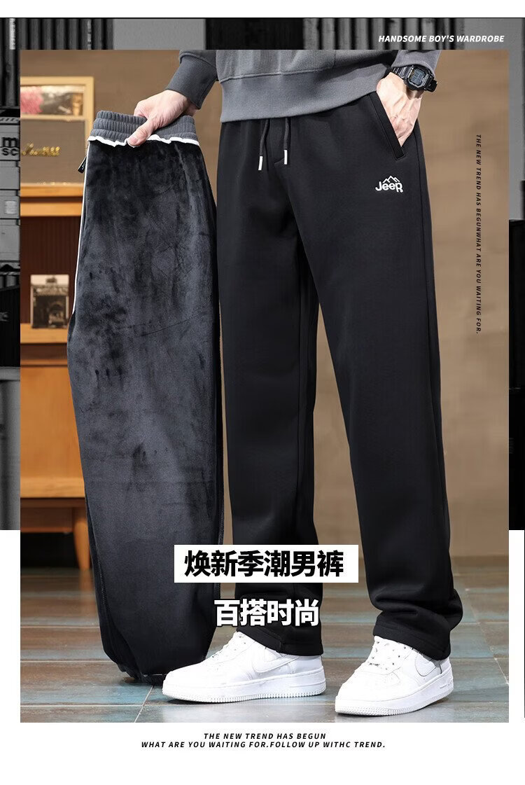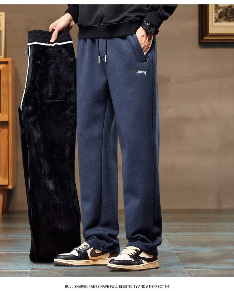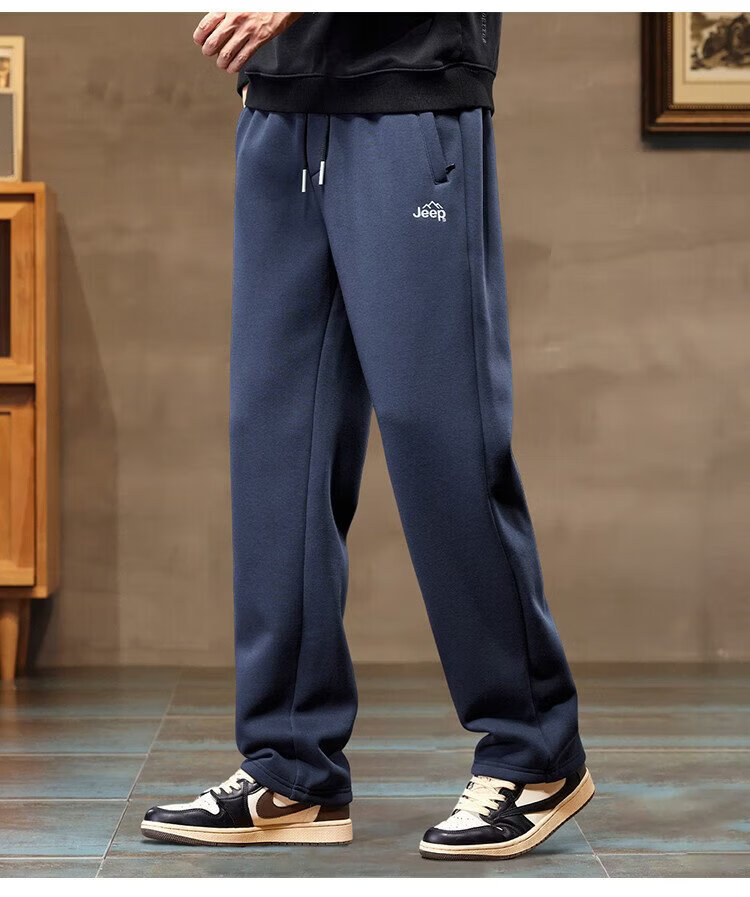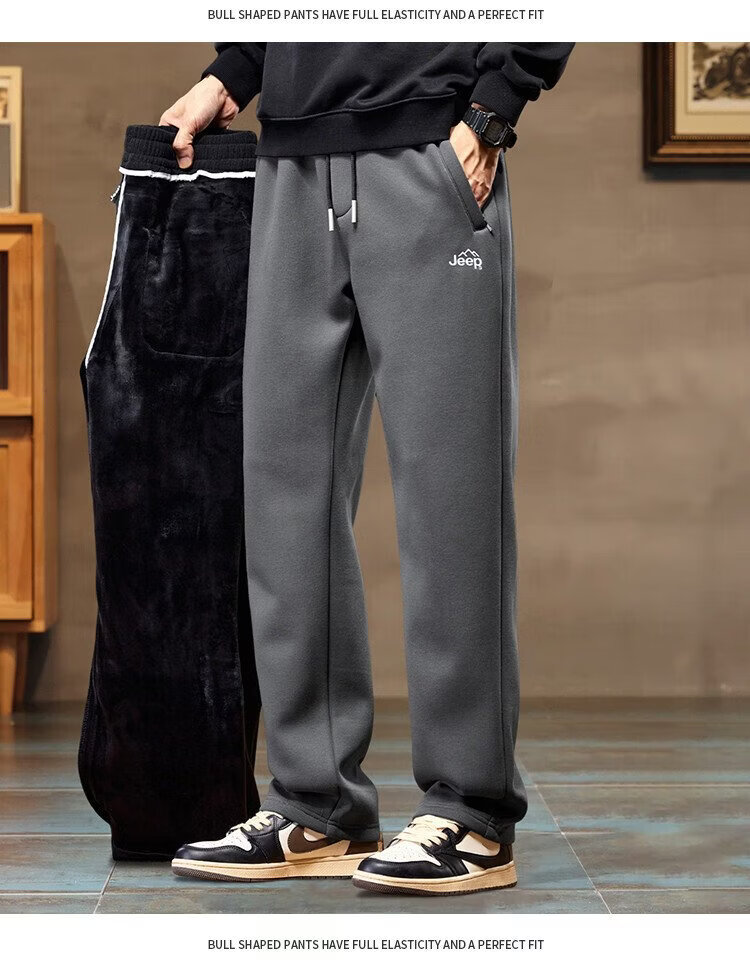 JEEP бархатные утепленные мужские спортивные штаны, мужские спортивные штаны осень-зима 2025, новые свободные прямые высококачественные повседневные брюки, мужские спортивные штаны, мужские