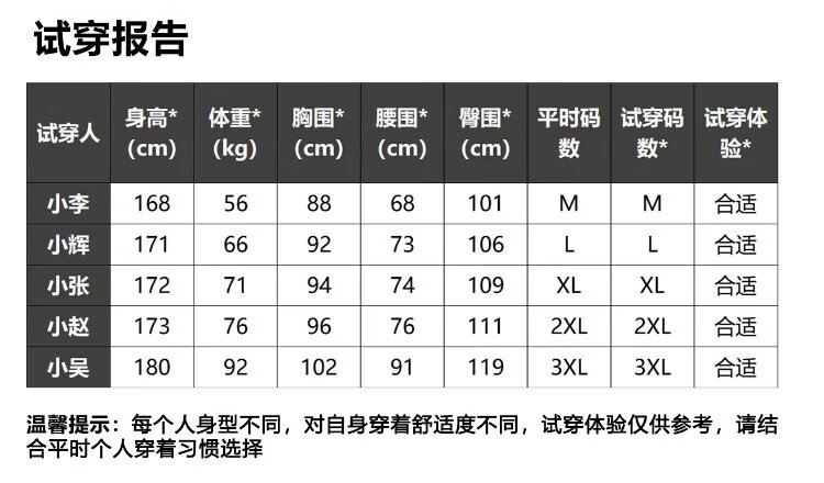 China (cm) 160-165/84-86 165-170 / 88-90 167-172 / 92-96 168-173 / 98-102 170-176 / 106-110