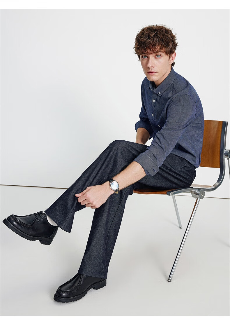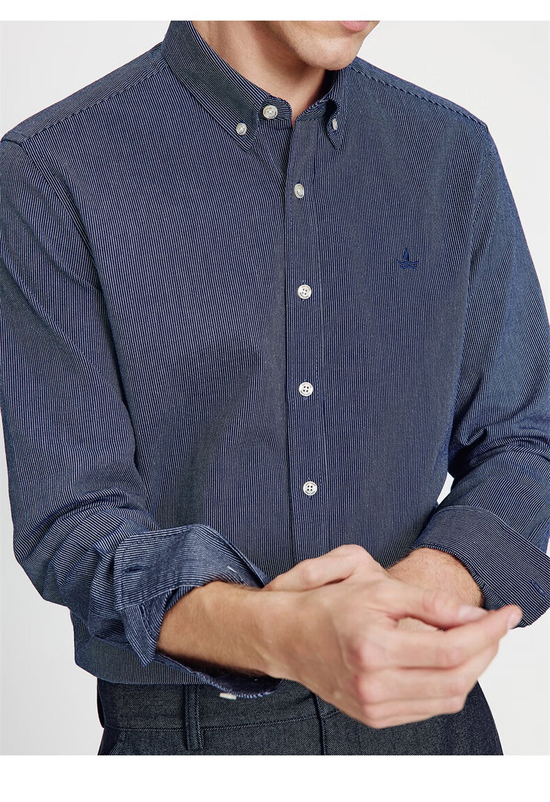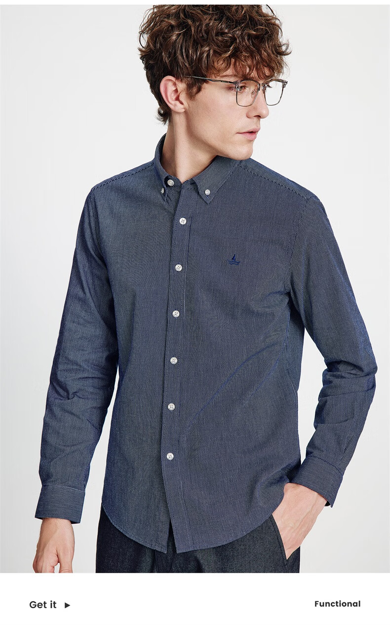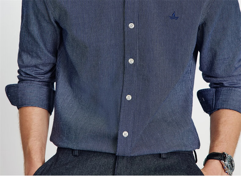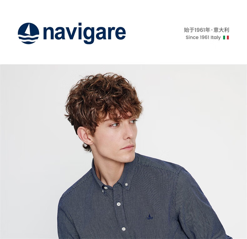 Navigare Italian small sailing ship men's 25 autumn new cotton long-sleeved shirt yarn-dyed striped shirt 1333045503 blue XL