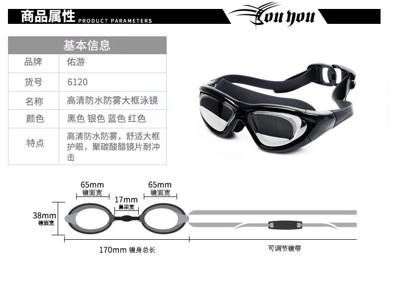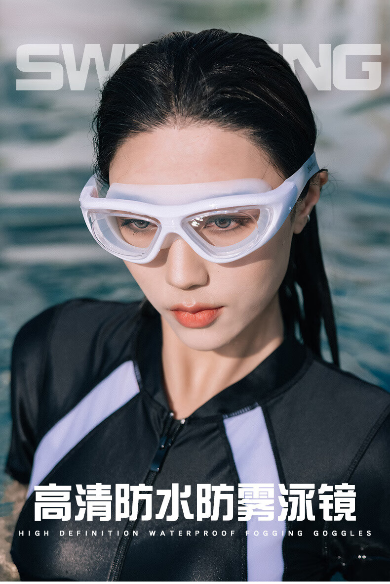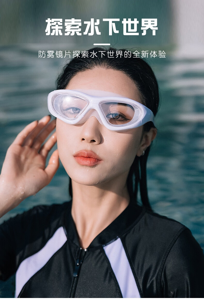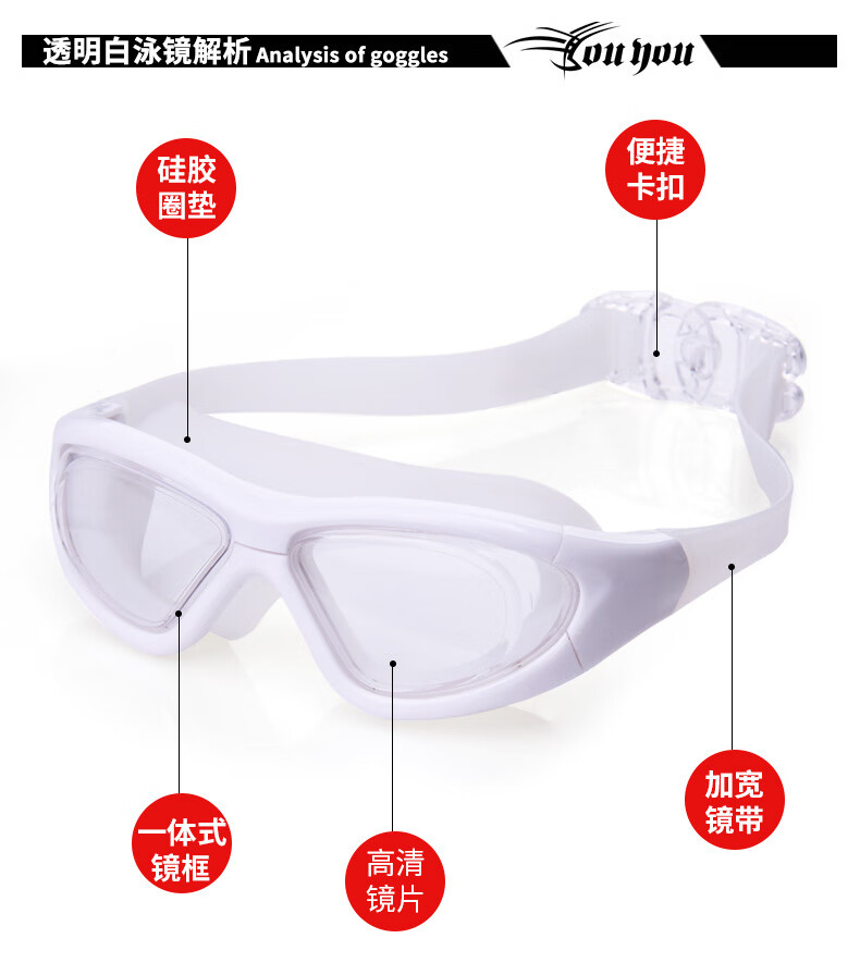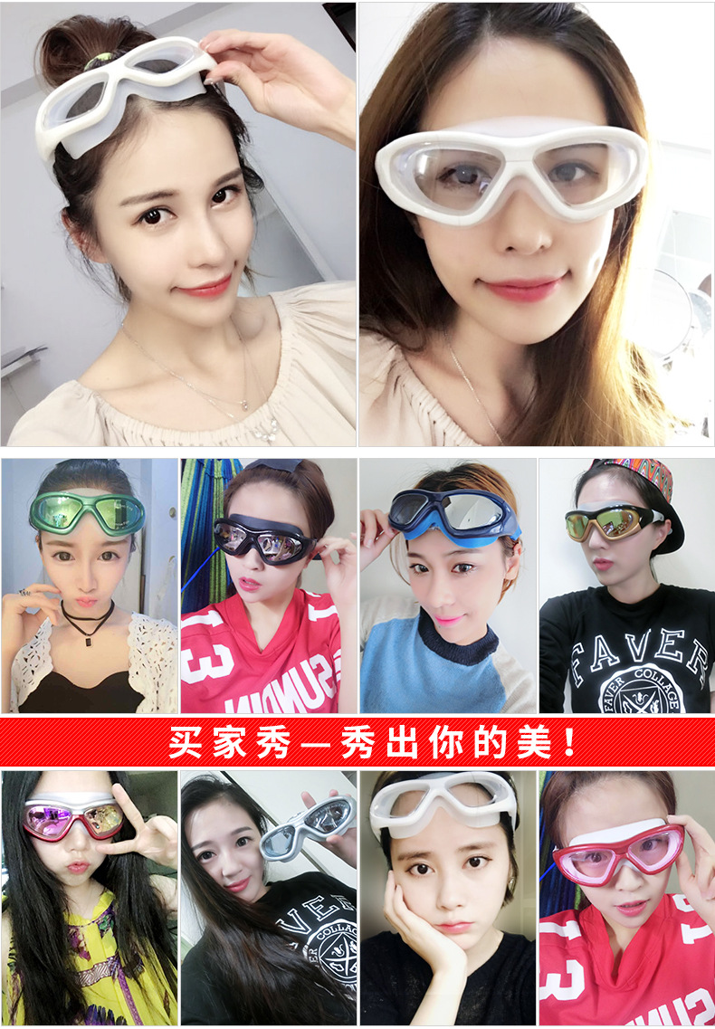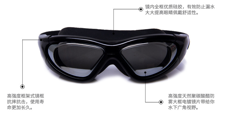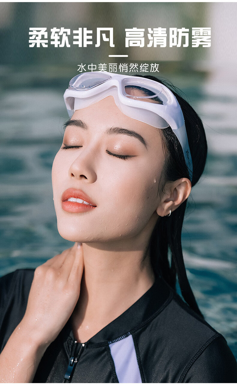 Youyou new swimming goggles for men and women, high definition large frame swimming goggles, electroplated flat light diving goggles, waterproof and anti-fog swimming goggles JD7050, electroplated black flat light