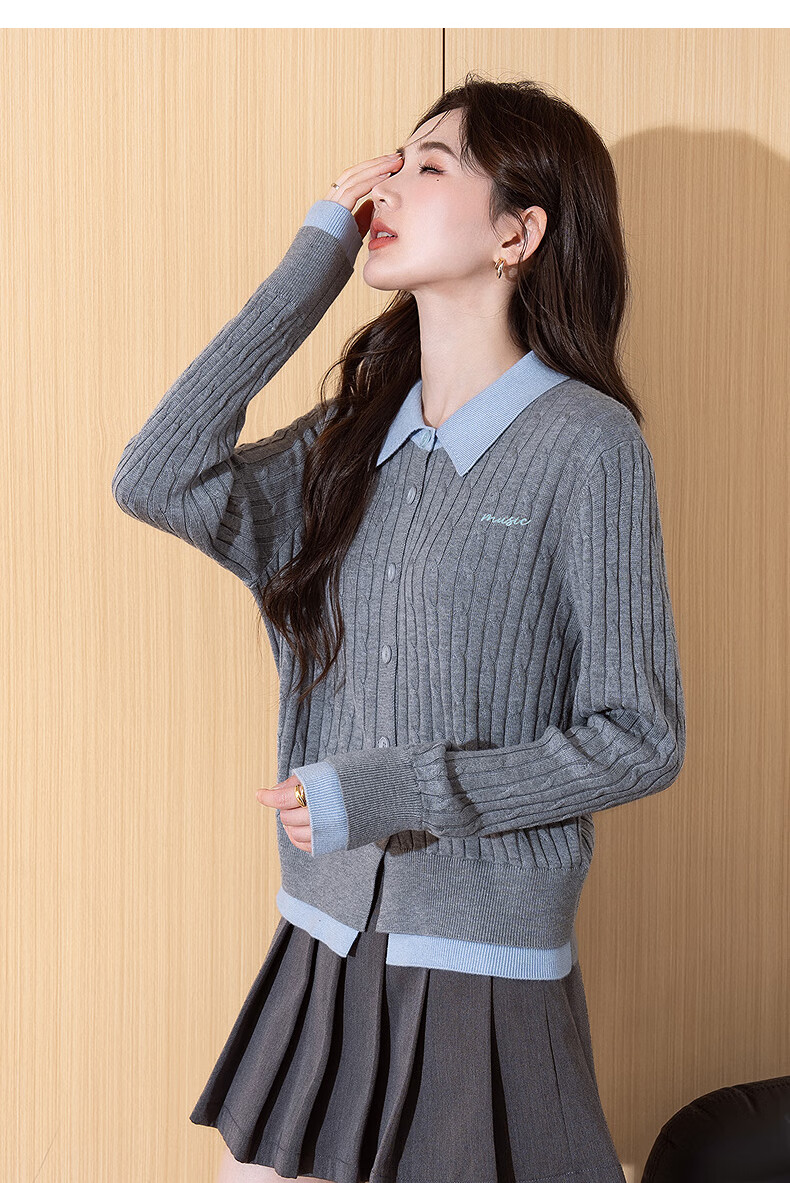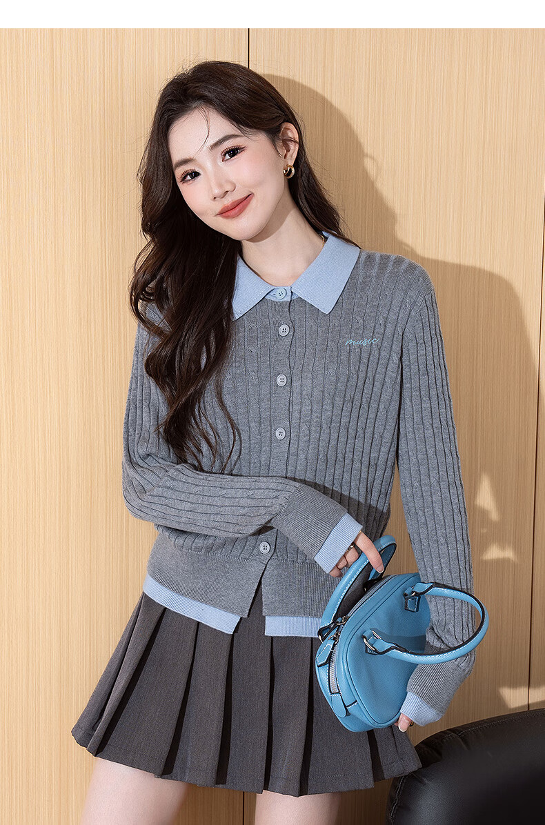 TonLion 2025 autumn and winter temperament style color matching design women's fake two-piece cardigan