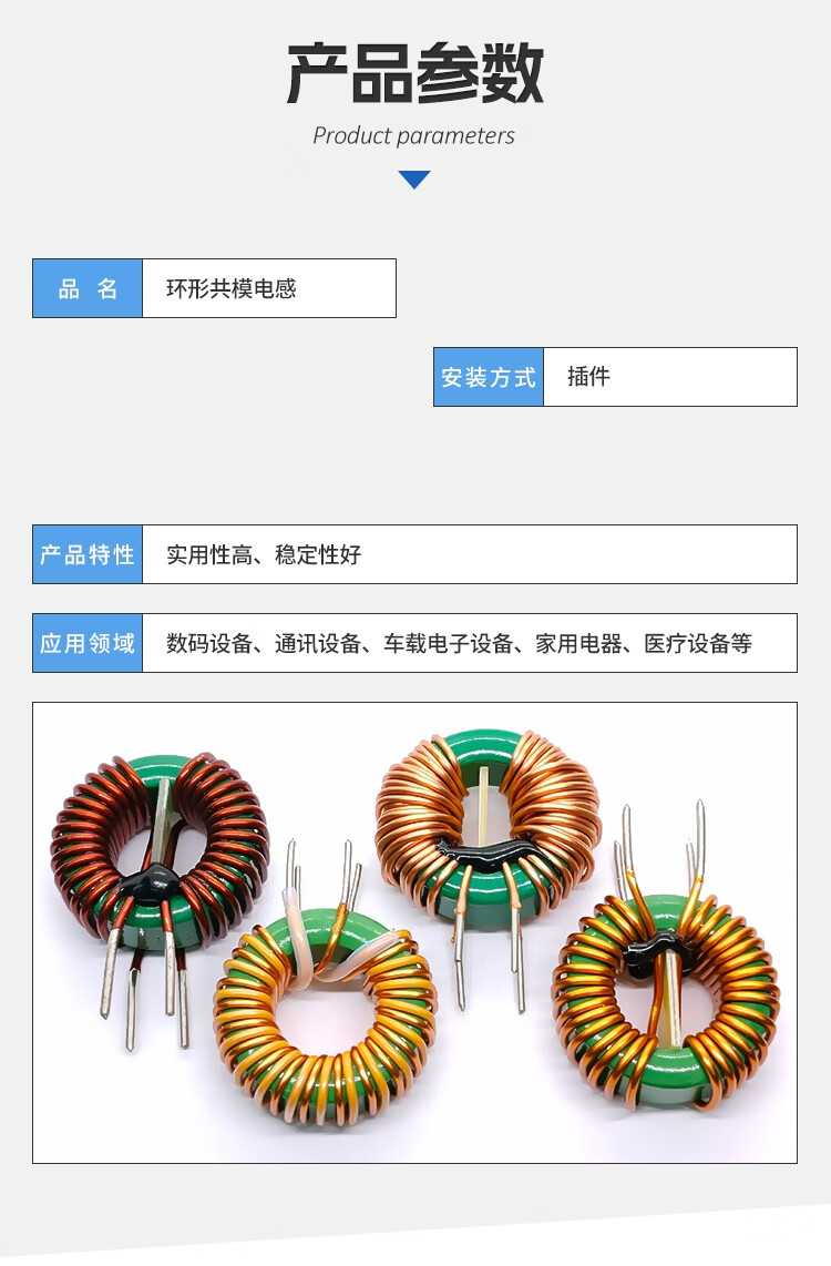 Hanshi Hengye base choke ring common mode inductor ferrite 10A high current 15mH-0.55 wire-vertical insulated wire (20 pieces)