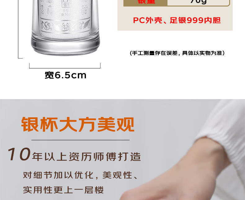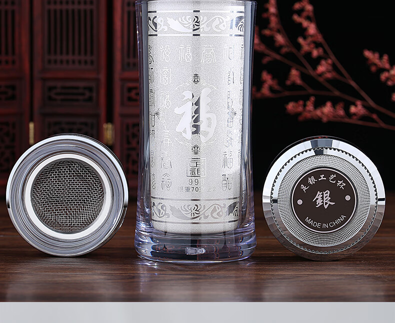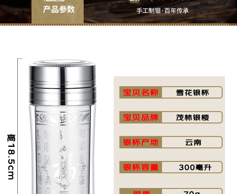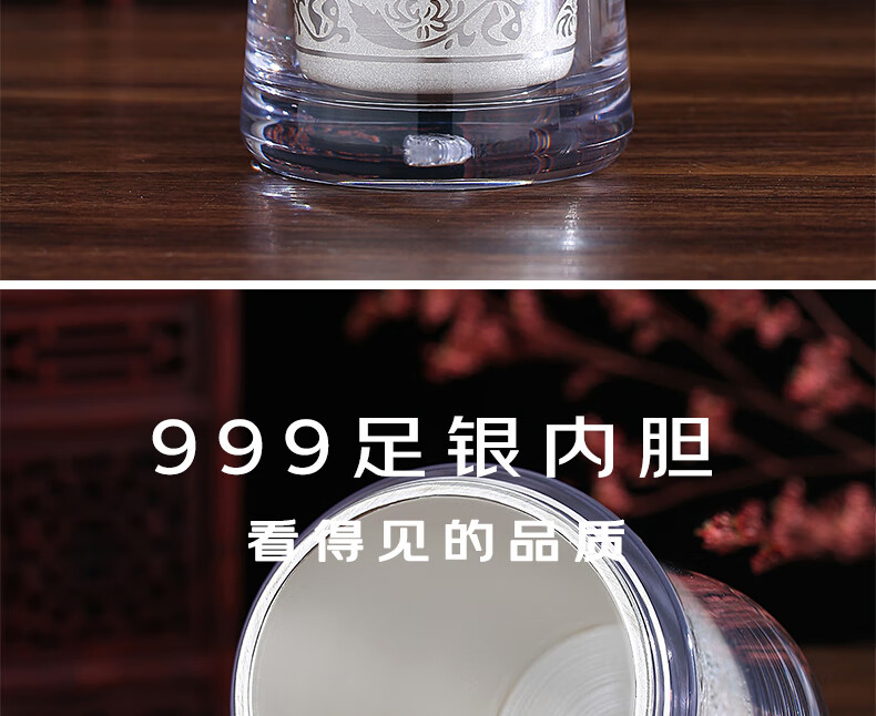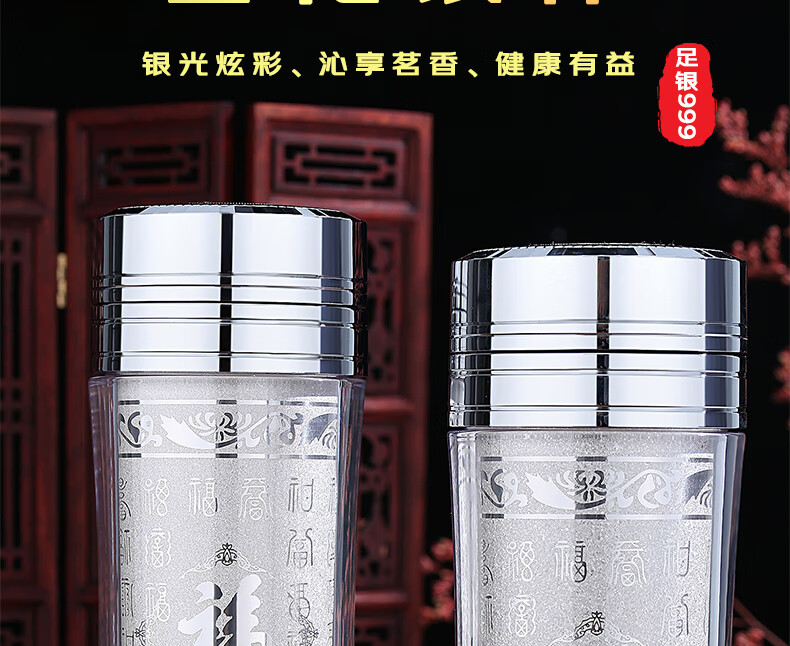 Maolin Silver Tower Silver Cup 999 Pure Silver Water Cup Yunnan Silver Tea Cup Snowflake Silver Liner Insulated Cup Health Care Cup Office Business Cup Snowflake Silver Cup + High-end Wooden Box + Certificate
