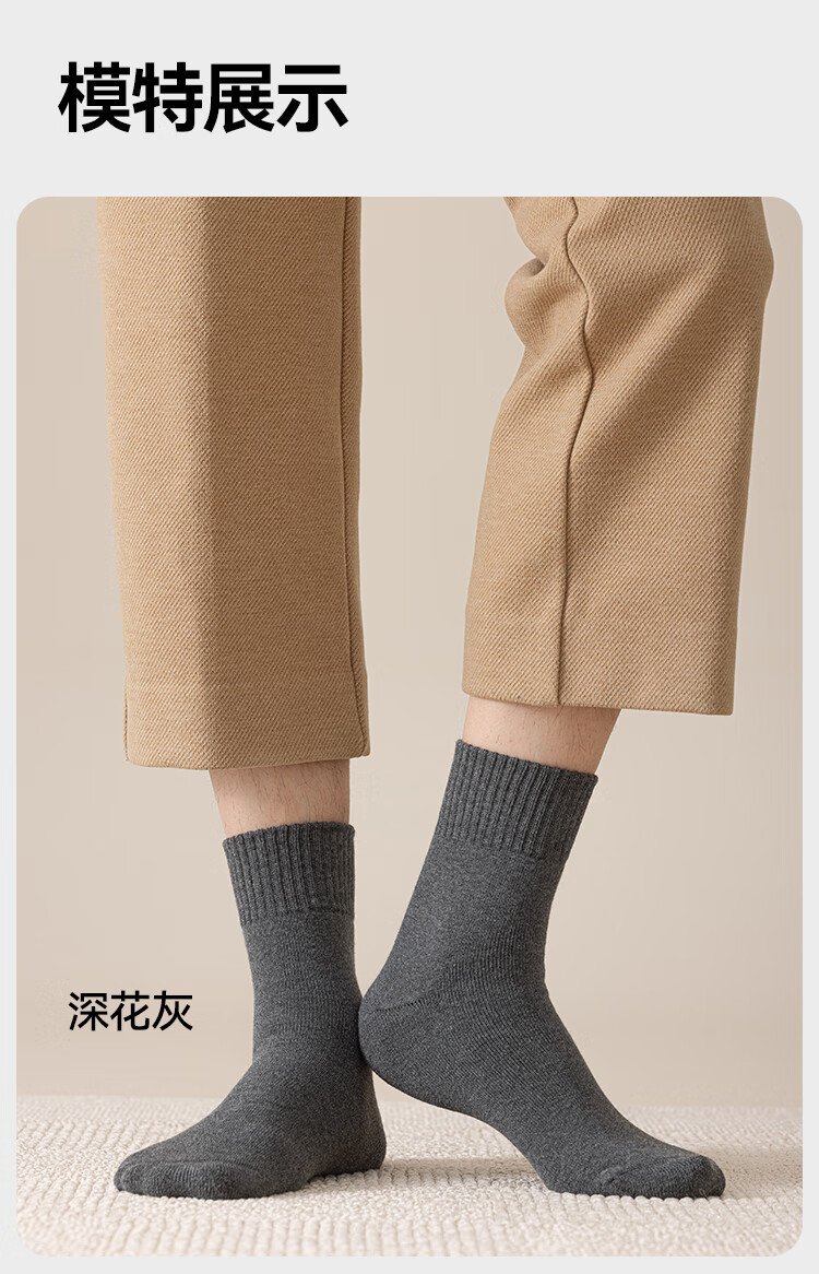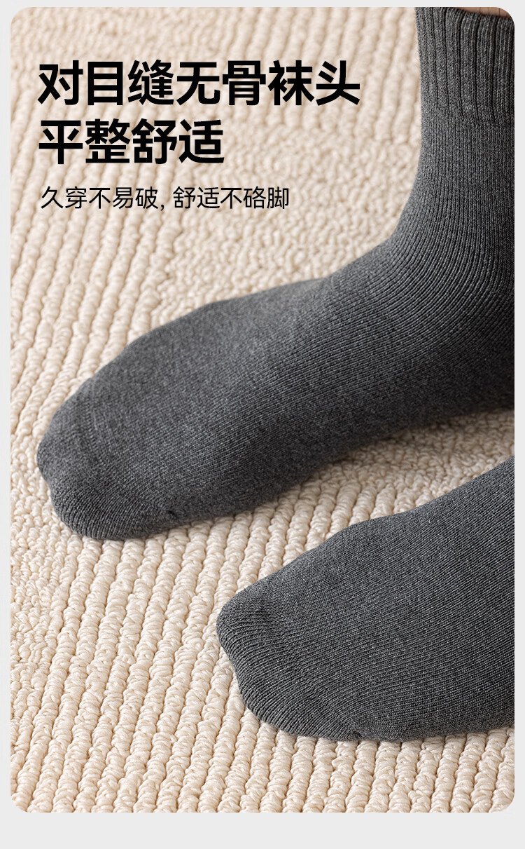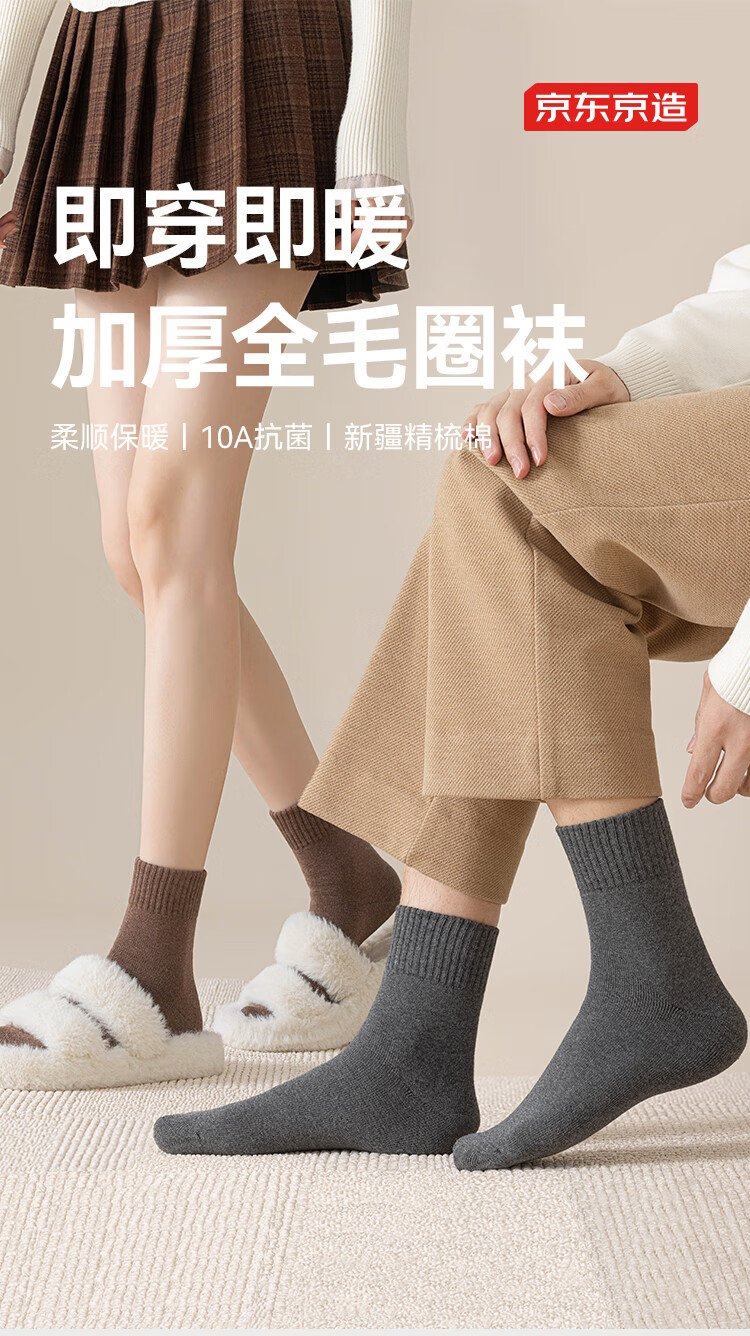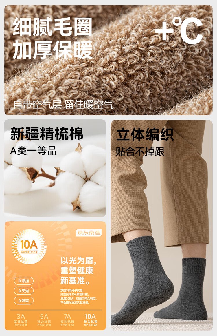 Jing Tokyo socks men's autumn and winter socks full terry thickened warm mid-length 10A antibacterial combed cotton socks
