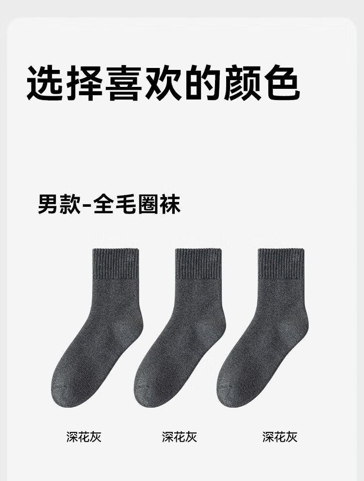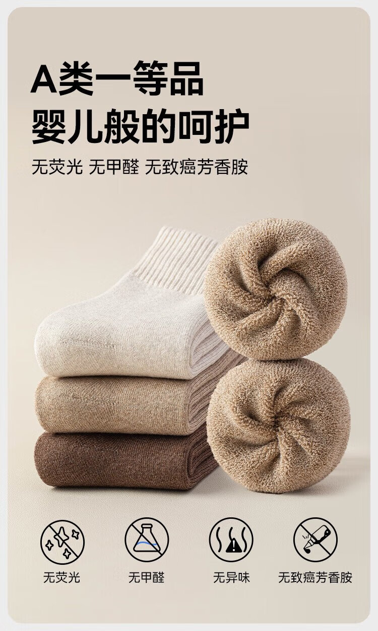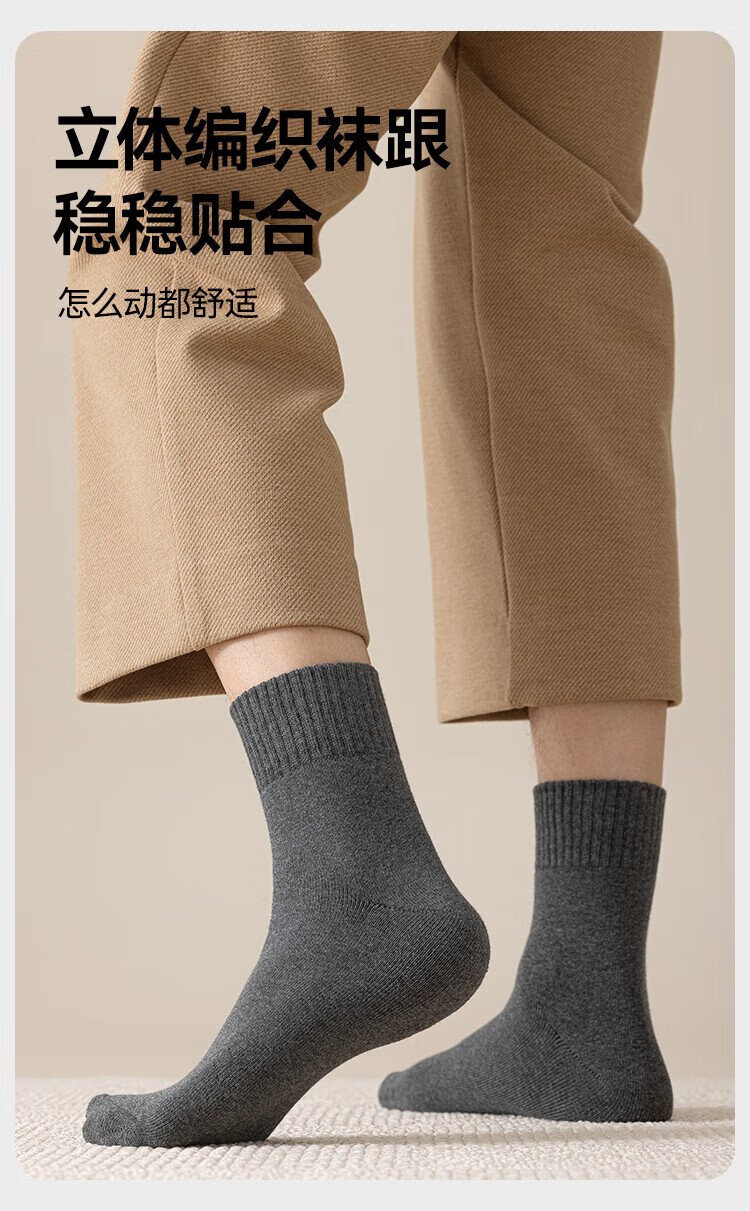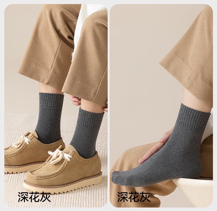 Jing Tokyo socks men's autumn and winter socks full terry thickened warm mid-length 10A antibacterial combed cotton socks