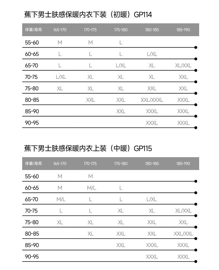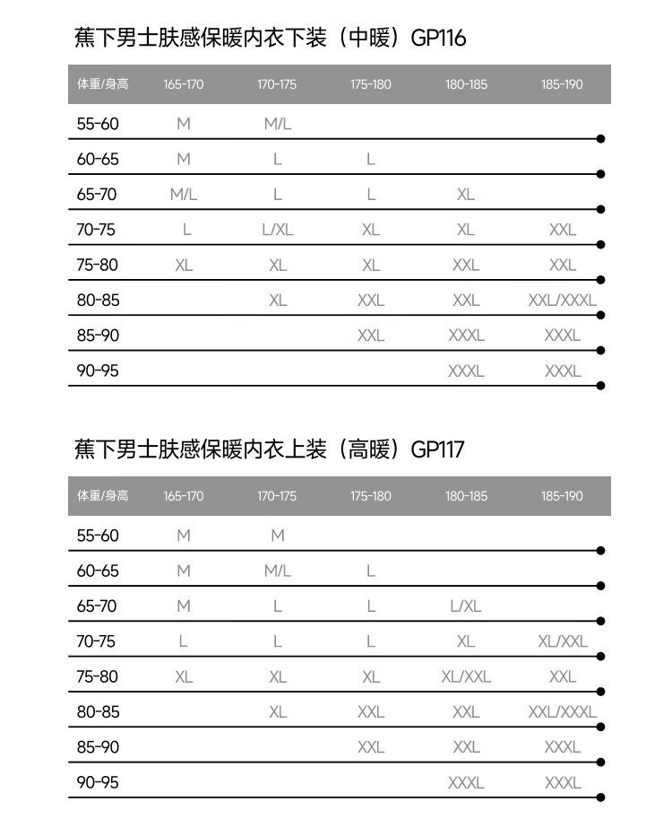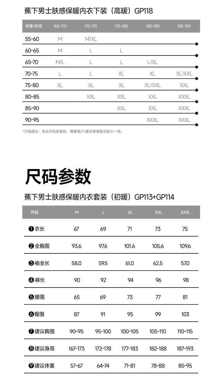China (cm) 160-165/84-86 165-170 / 88-90 167-172 / 92-96 168-173 / 98-102 170-176 / 106-110