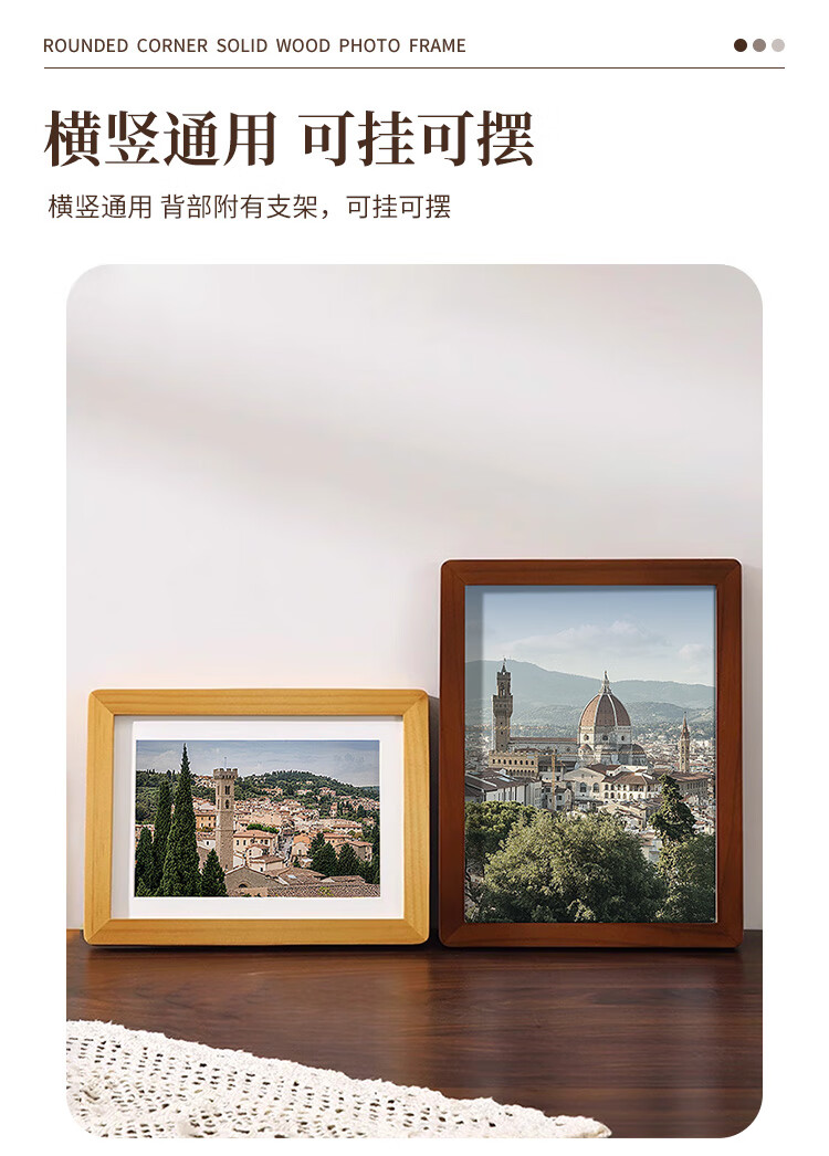 Aimo painted 6-inch solid wood photo frame table high-end empty frame creative rounded corner photo frame diy picture frame mounting wall walnut color