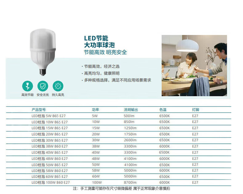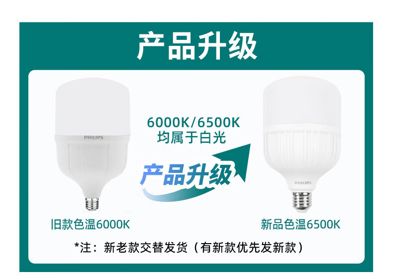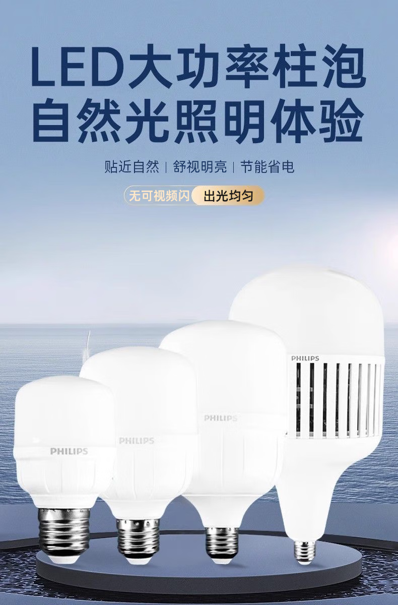 Philips (PHILIPS) LED bulb low-power cylindrical bulb high-brightness energy-saving e27 screw bulb 15w-white light 6000K one pack