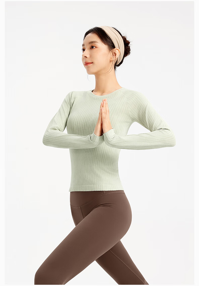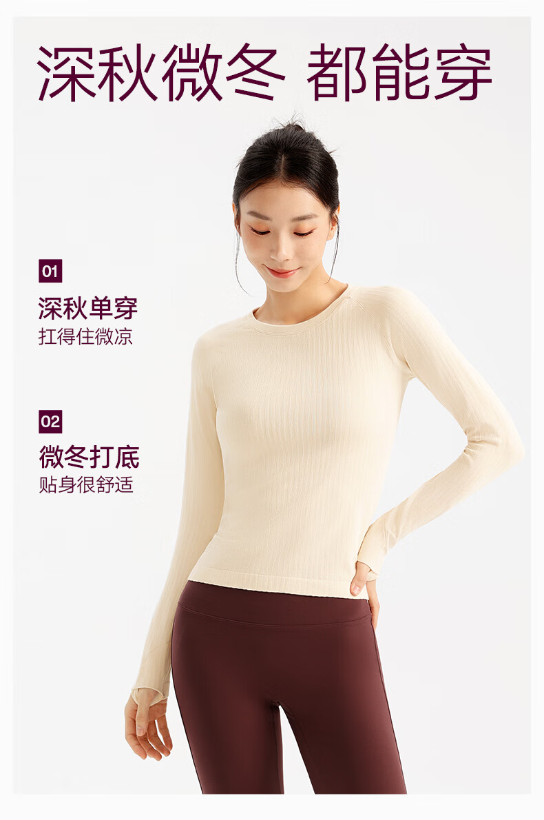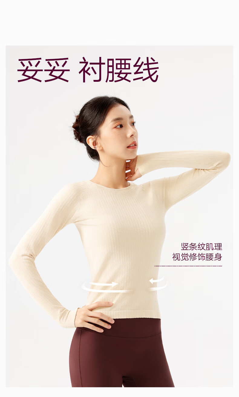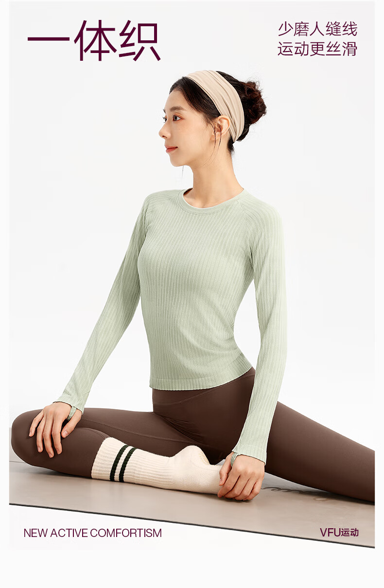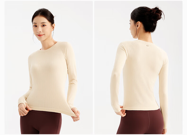VFU all-in-one woven sports top, skin-friendly and highly elastic women's autumn and winter bottoming Pilates yoga top, beige M