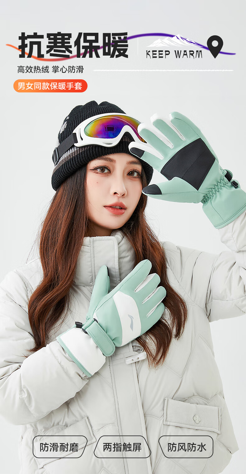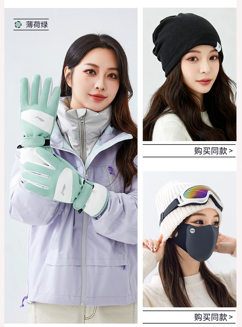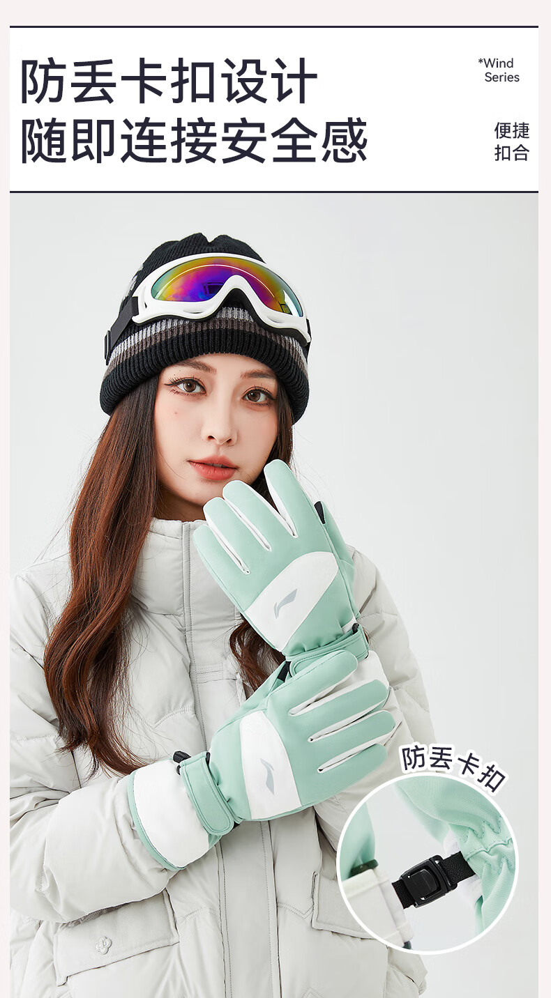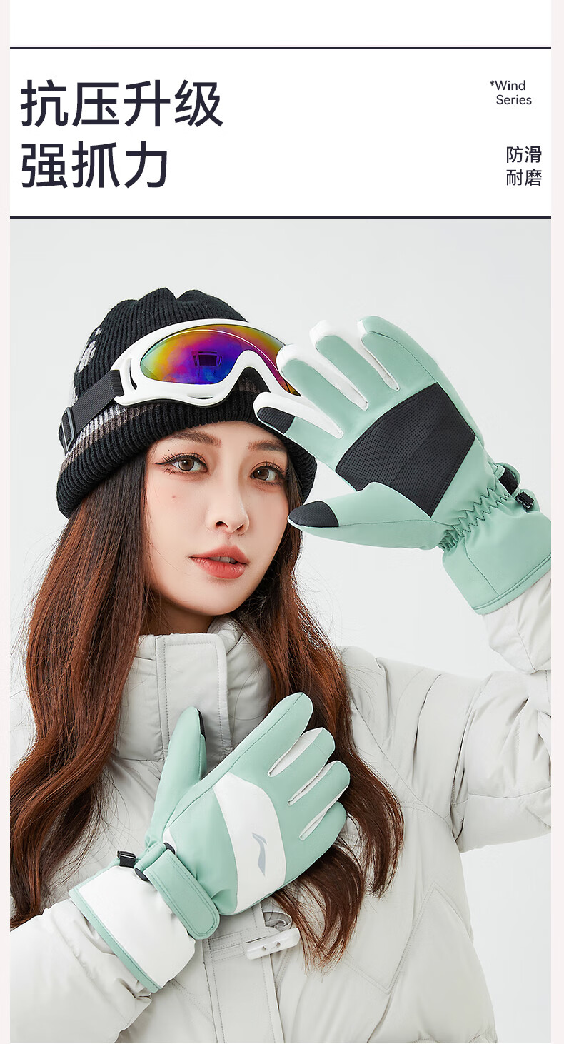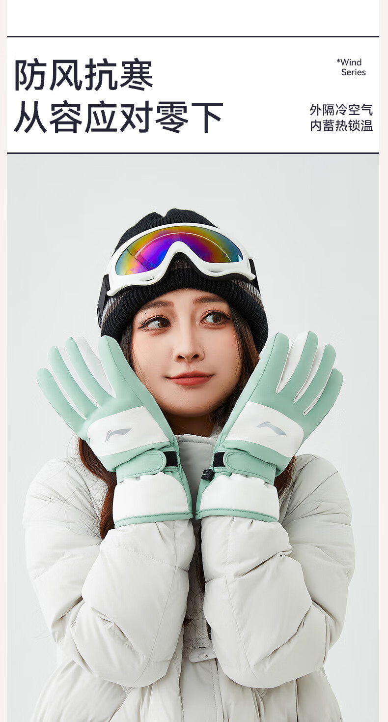 Li-ning (LI-NING) gloves women's 2025 new winter ski gloves warm thick velvet outdoor riding cold wind electric bicycle gloves