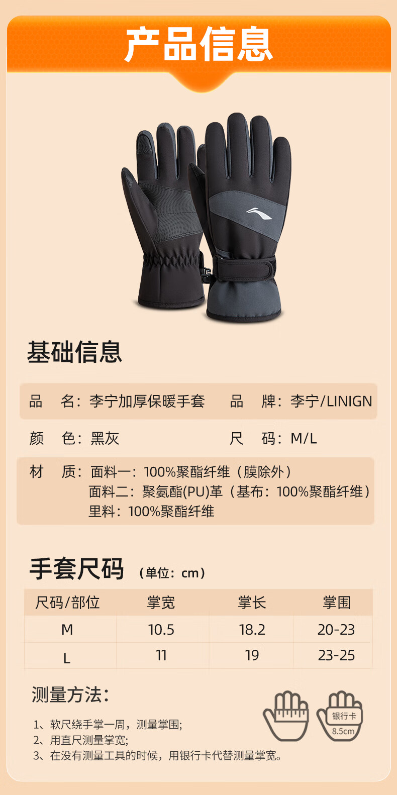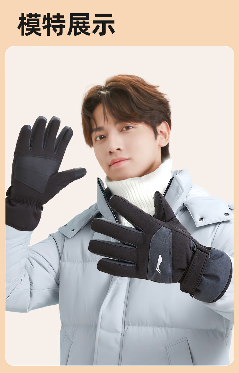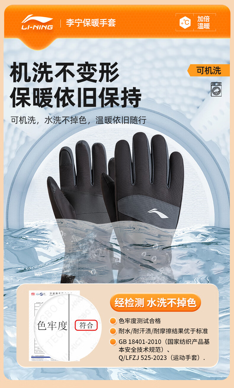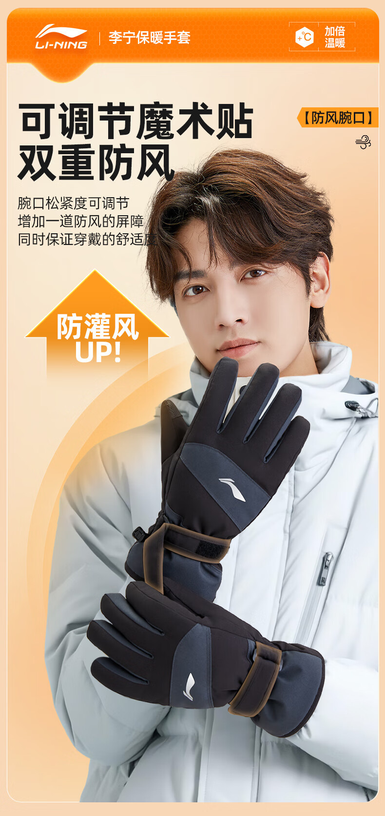 Li Ning (LI-NING) winter men's cycling gloves, skiing, cold wind protection, extra thick, warm, touch screen, waterproof, electric vehicle, motorcycle, mountaineering