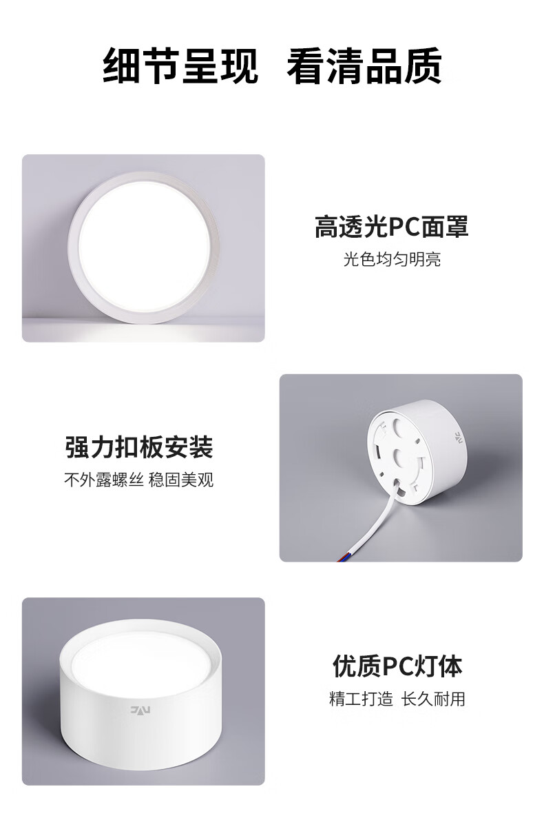 NVC surface-mounted downlight LED downlight round downlight anti-glare anti-fog corridor ceiling spotlight surface-mounted Lingmeng downlight-white-15W pure white