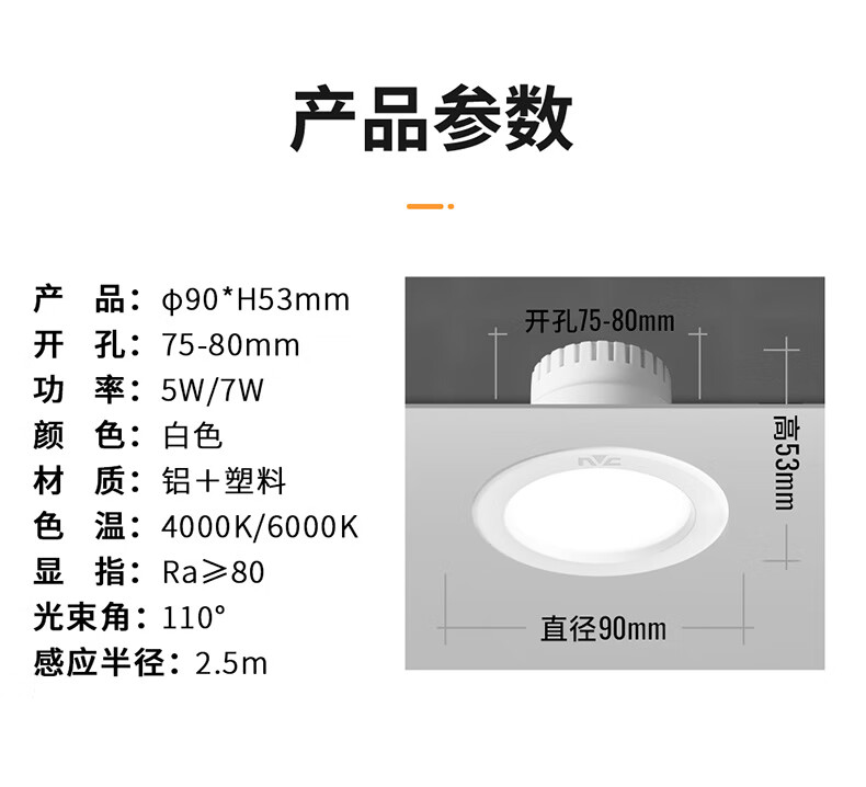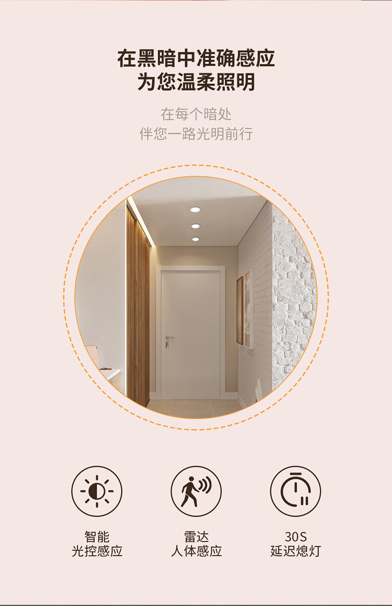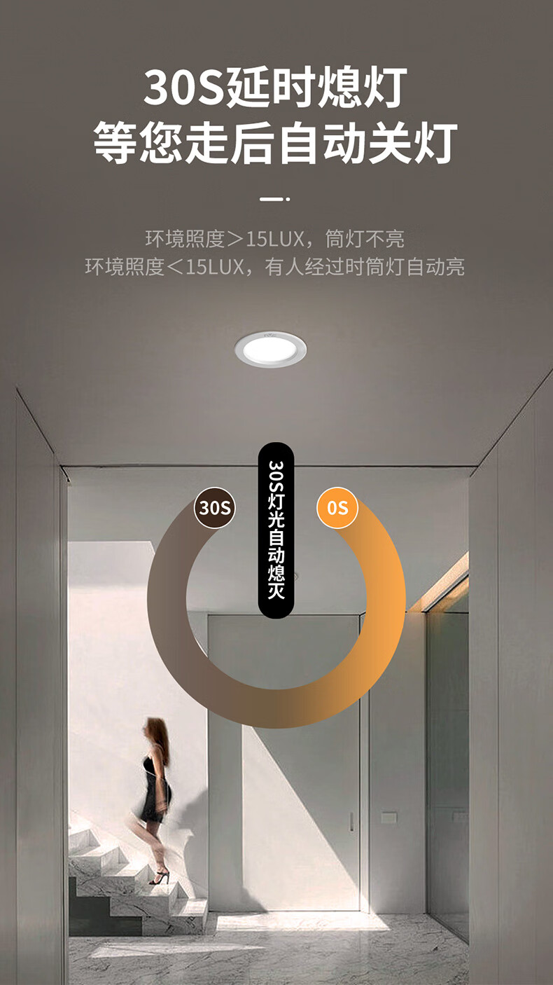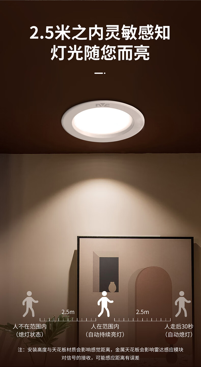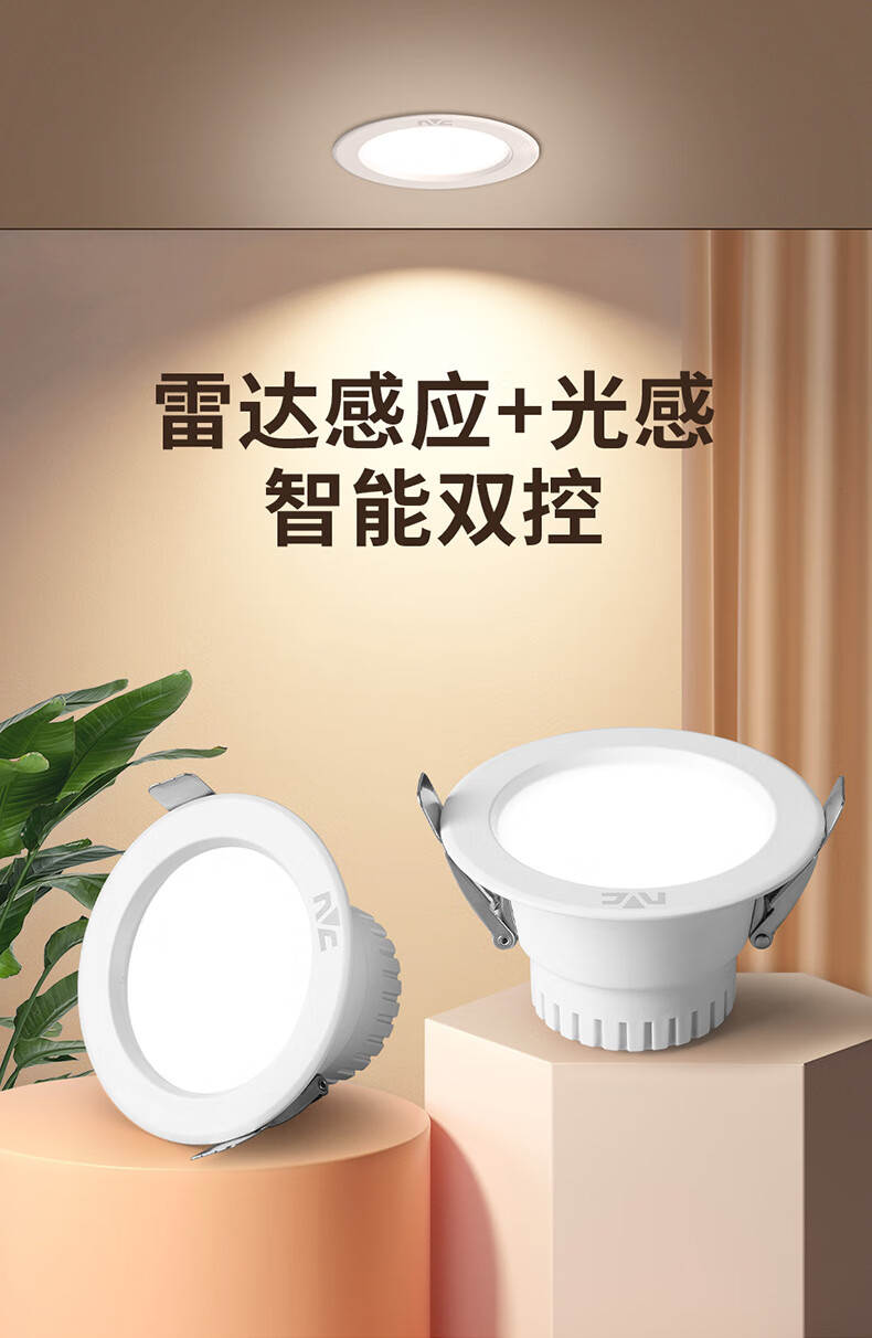 NVC LED downlight embedded radar human body induction home smart corridor aisle ceiling light entrance light 7W white