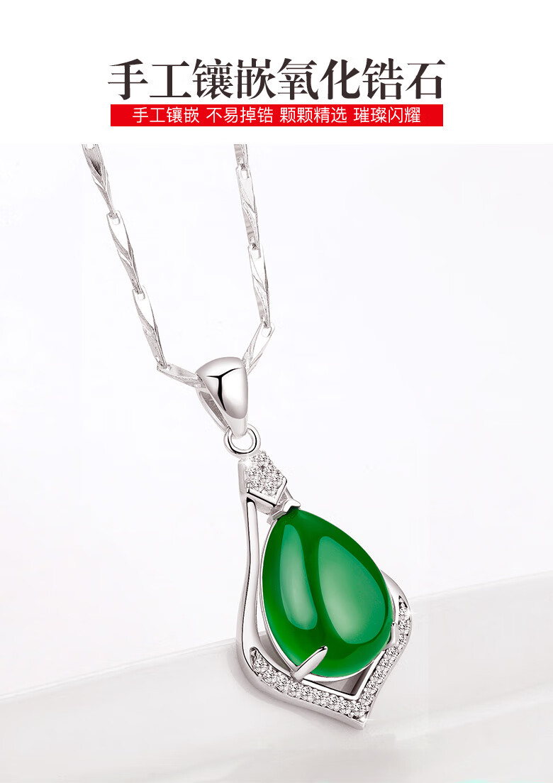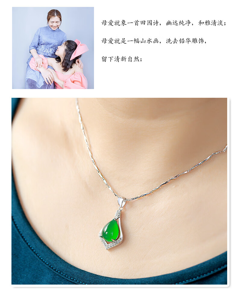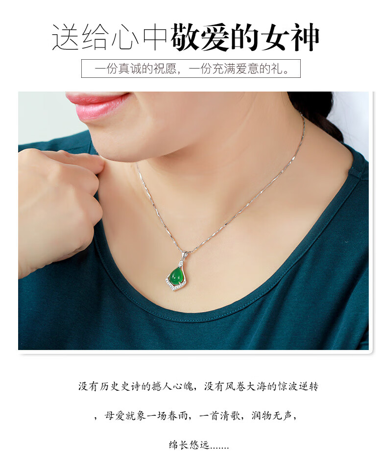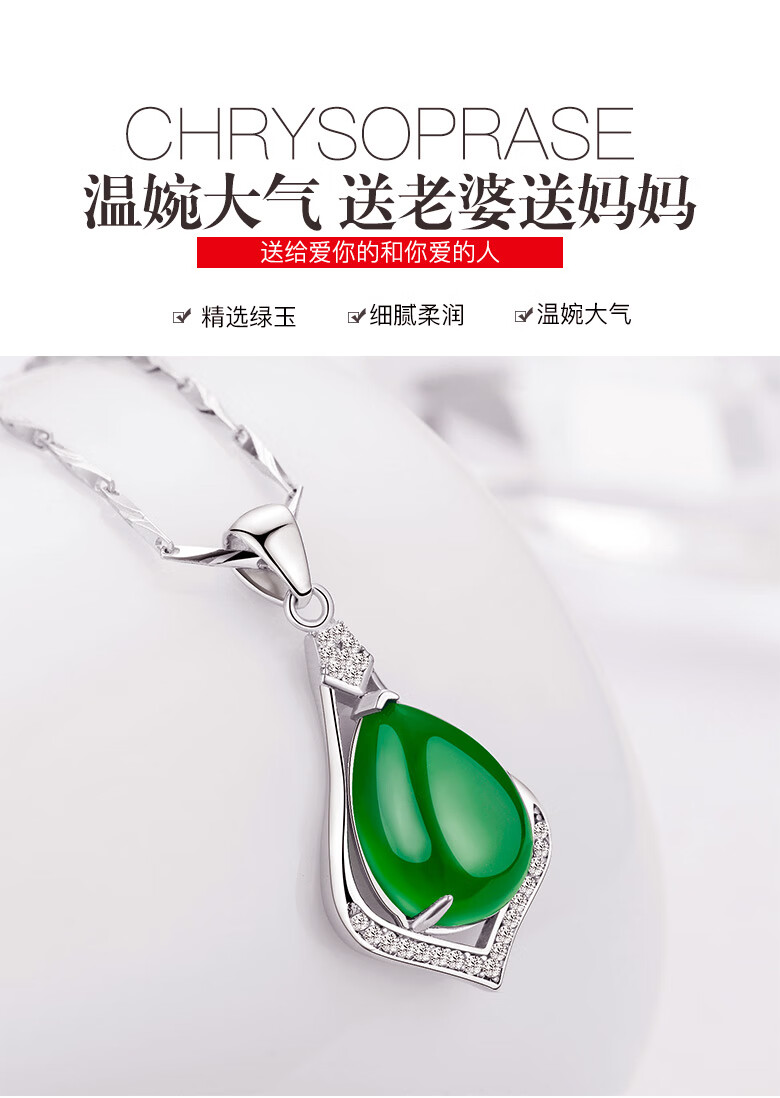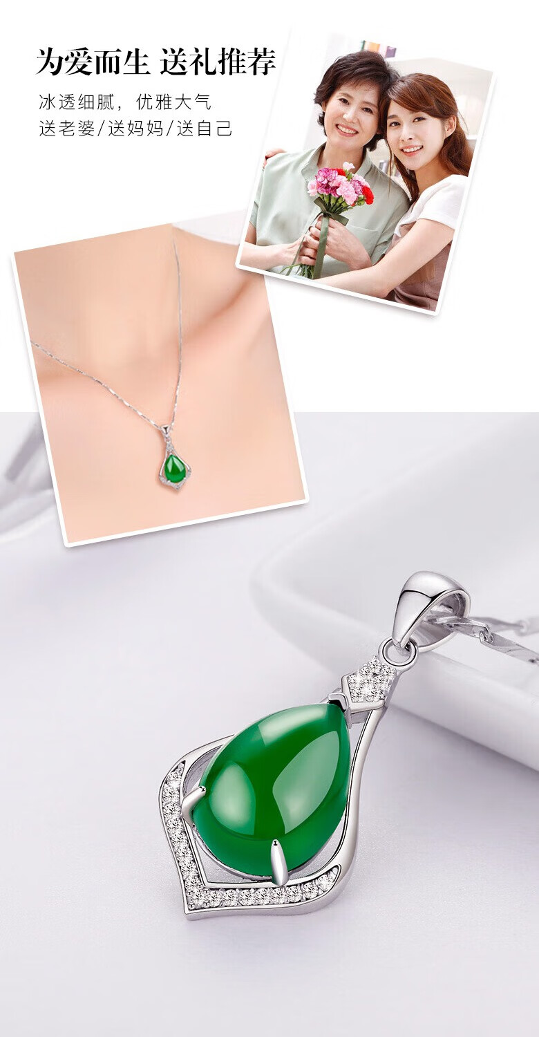 Love 925 sterling silver necklace for mothers, clavicle chain, green chalcedony silver pendant, agate pendant, birthday gift for wife