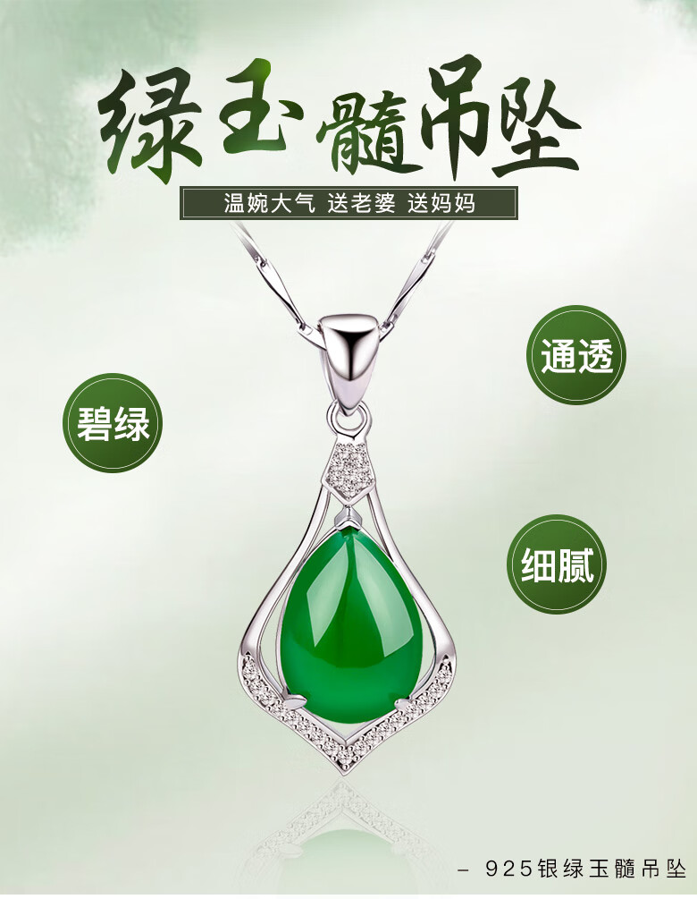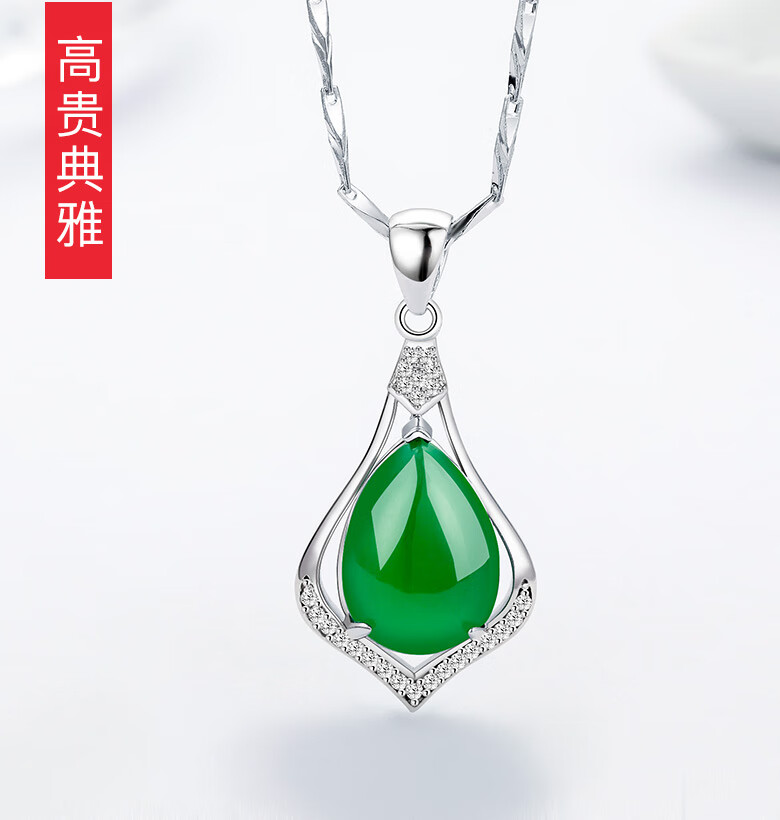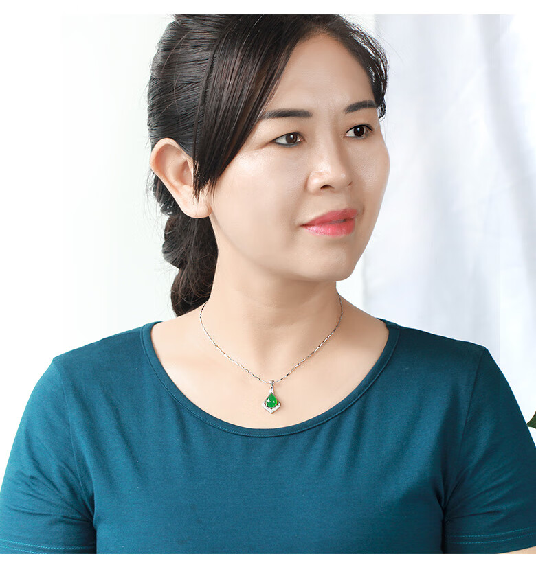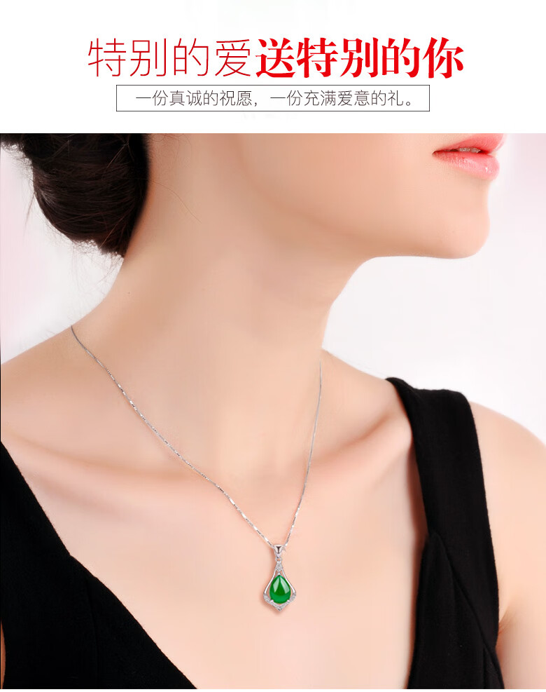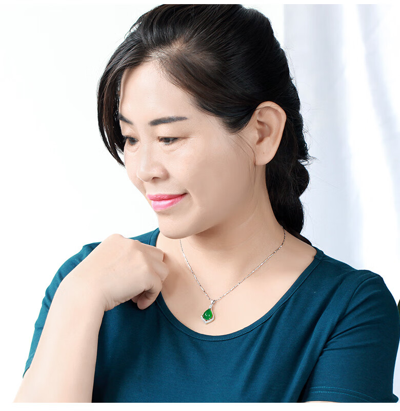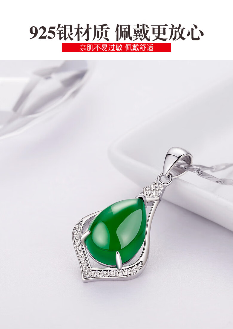 Love 925 sterling silver necklace for mothers, clavicle chain, green chalcedony silver pendant, agate pendant, birthday gift for wife