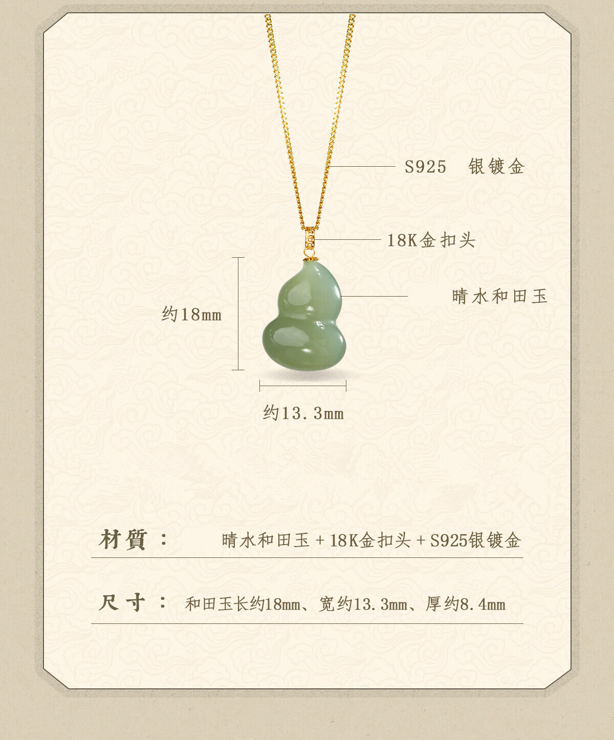 Love 925 sterling silver necklace women's Hetian jade gourd pendant 18k gold jewelry birthday gift for girlfriend and wife