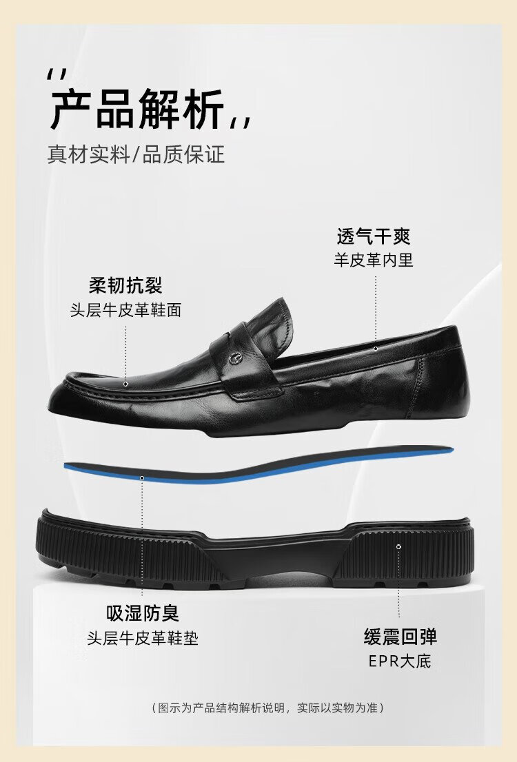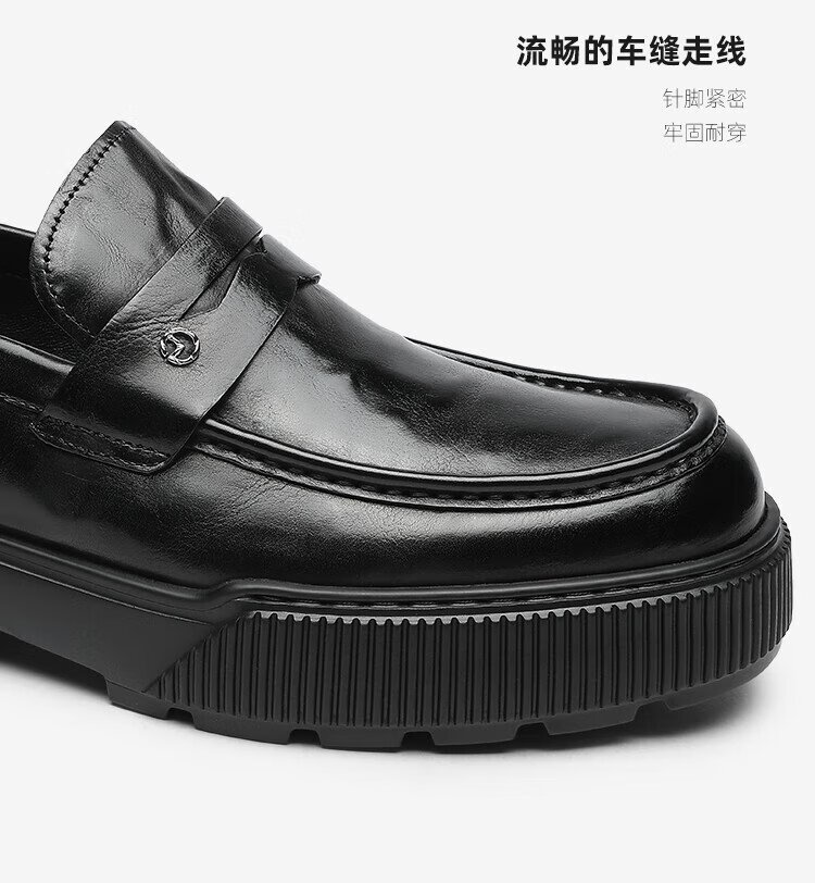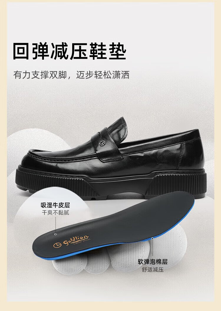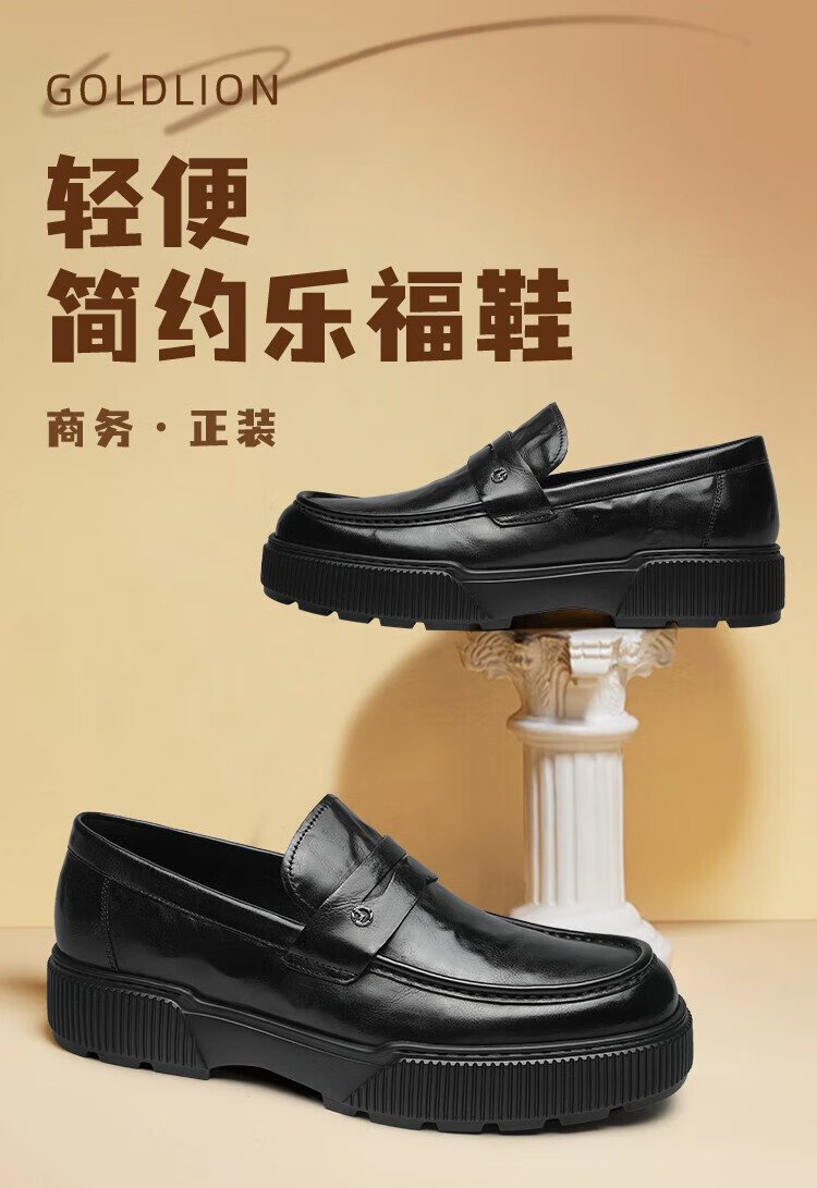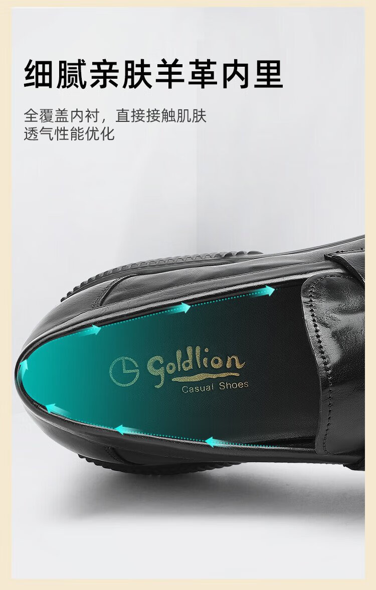 Goldlion men's shoes 25 new autumn genuine leather hand-scratch pattern business casual shoes slip-on loafers G567530744AAA
