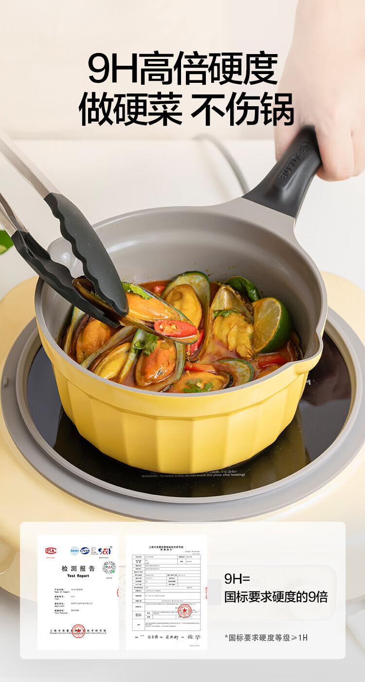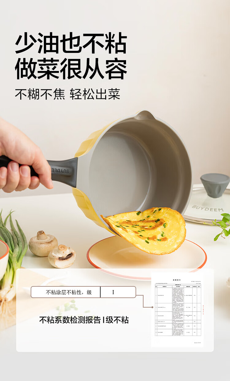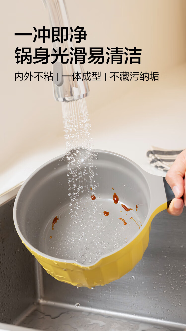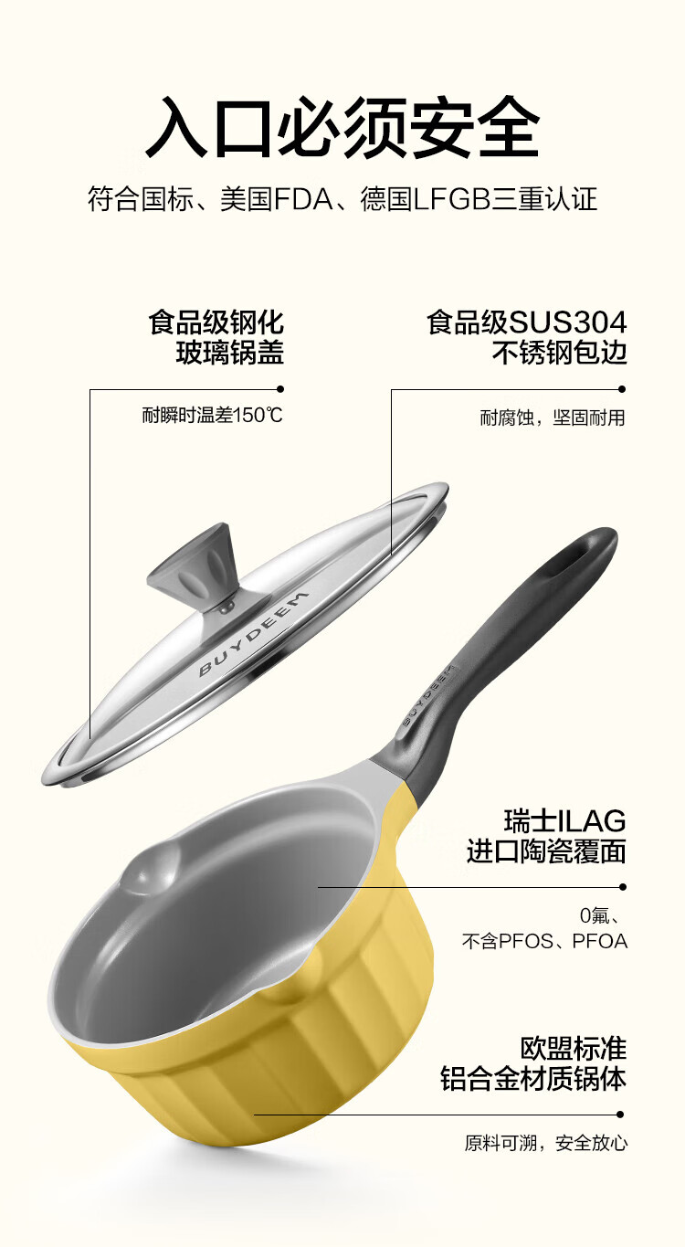 Beiding (Buydeem) milk pot soup pot baby food supplement pot small cooking pot 0 fluorine ceramic oil moon porcelain non-stick milk pot 18cm goose yellow
