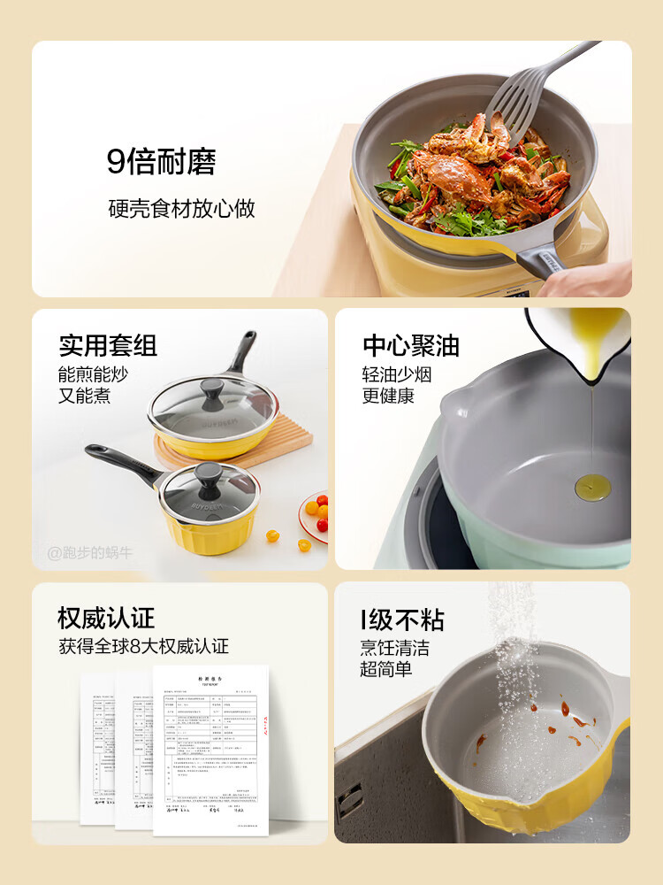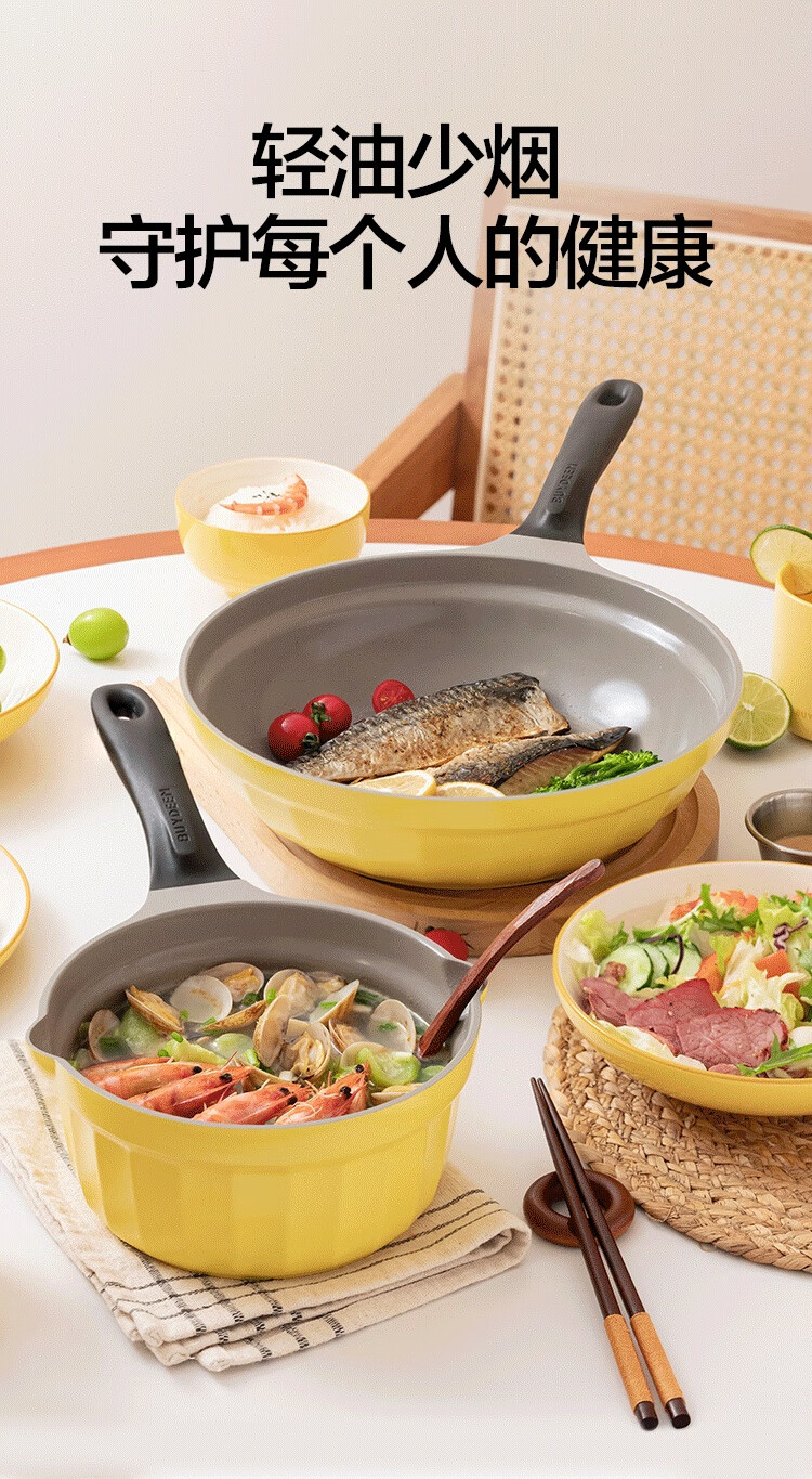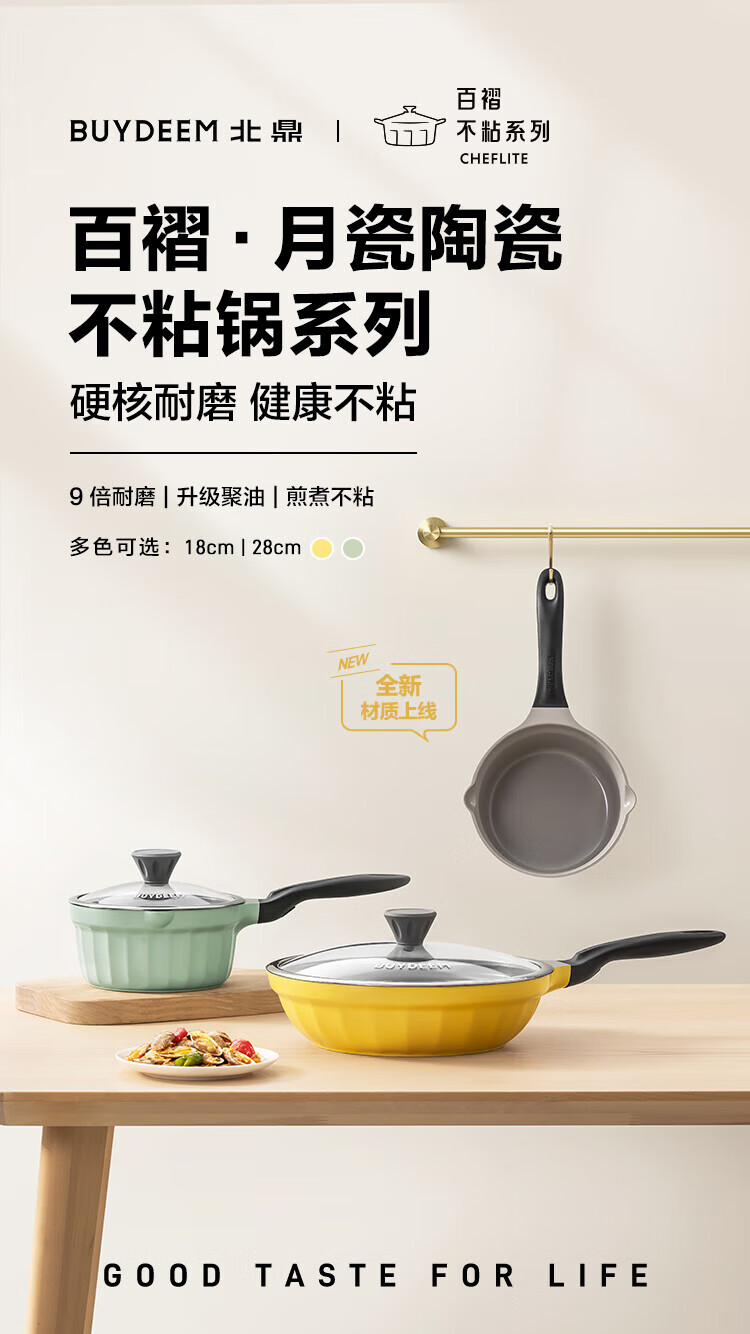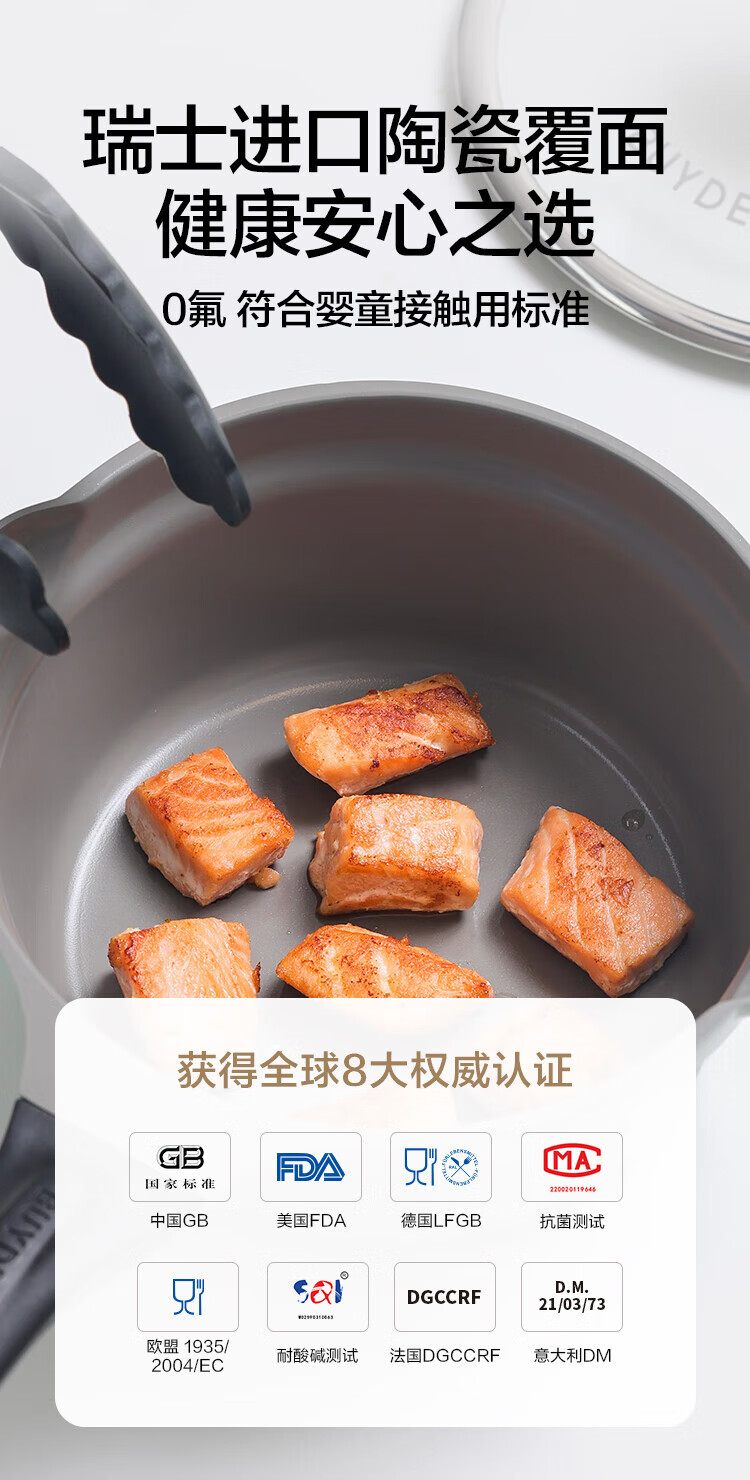 Beiding (Buydeem) milk pot soup pot baby food supplement pot small cooking pot 0 fluorine ceramic oil moon porcelain non-stick milk pot 18cm goose yellow
